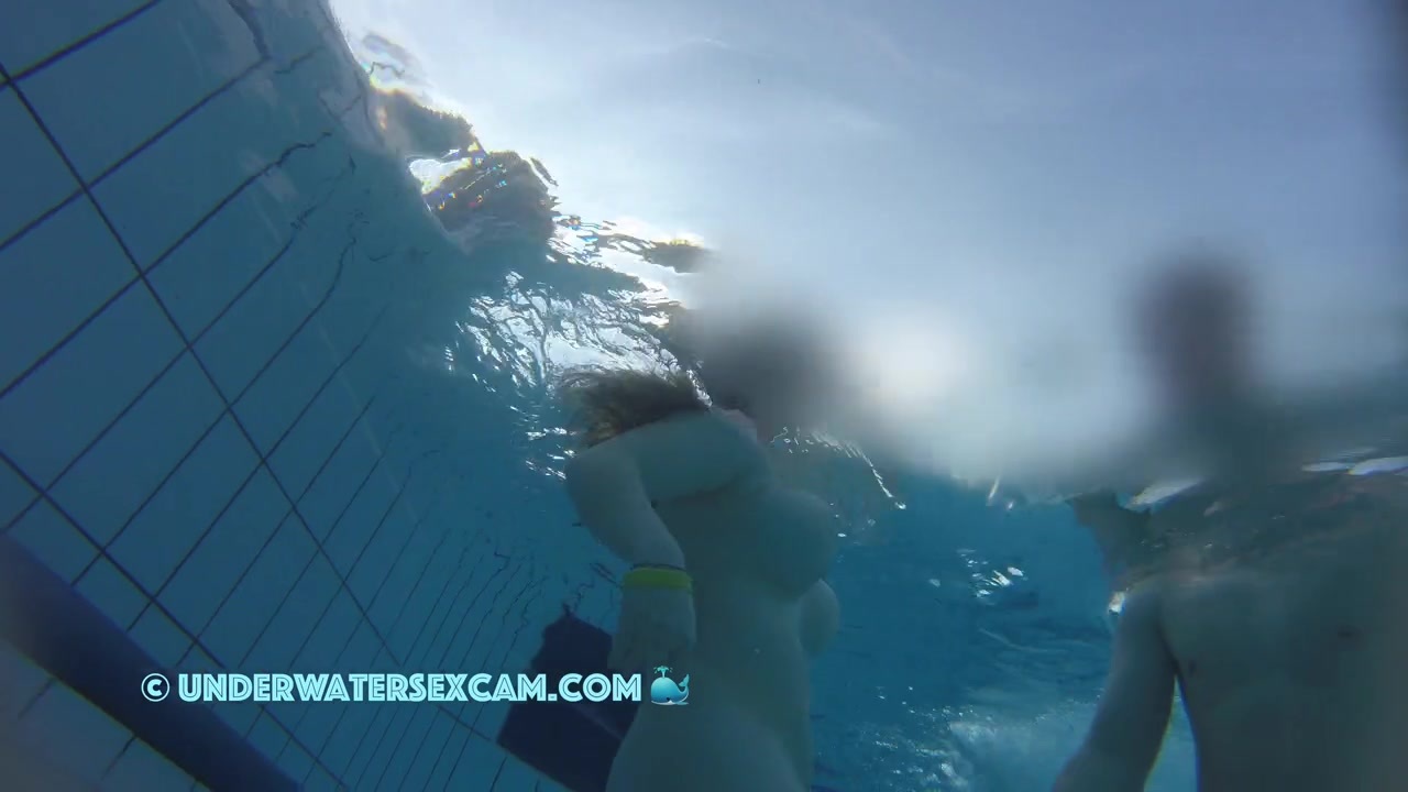 Fantastic big breasts make his dick hard underwater in a public pool while the voyeur is filming with his hidden underwater camera.