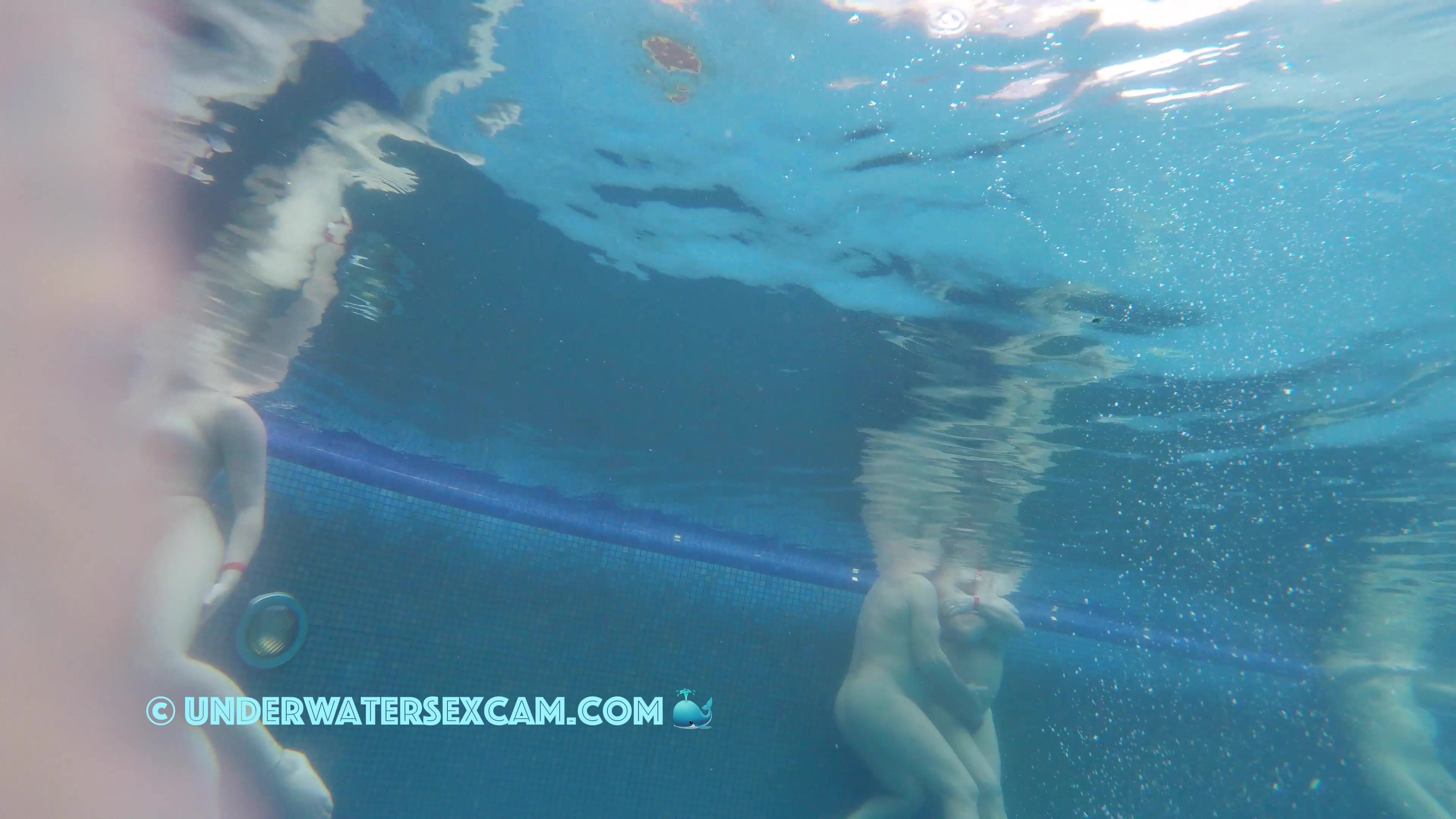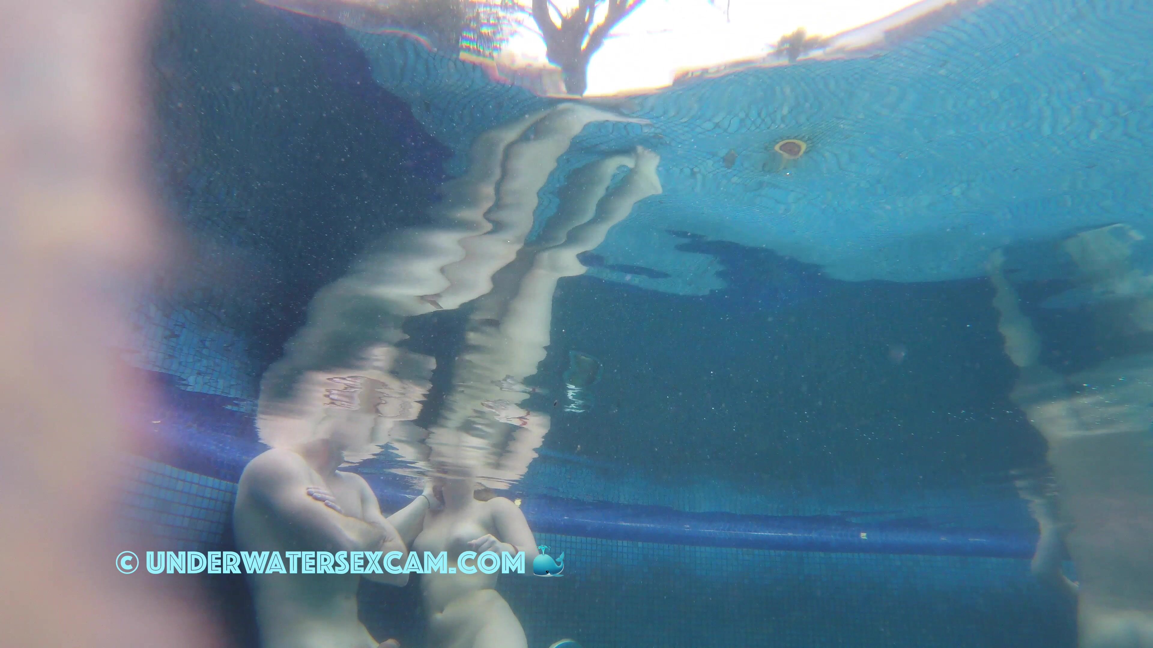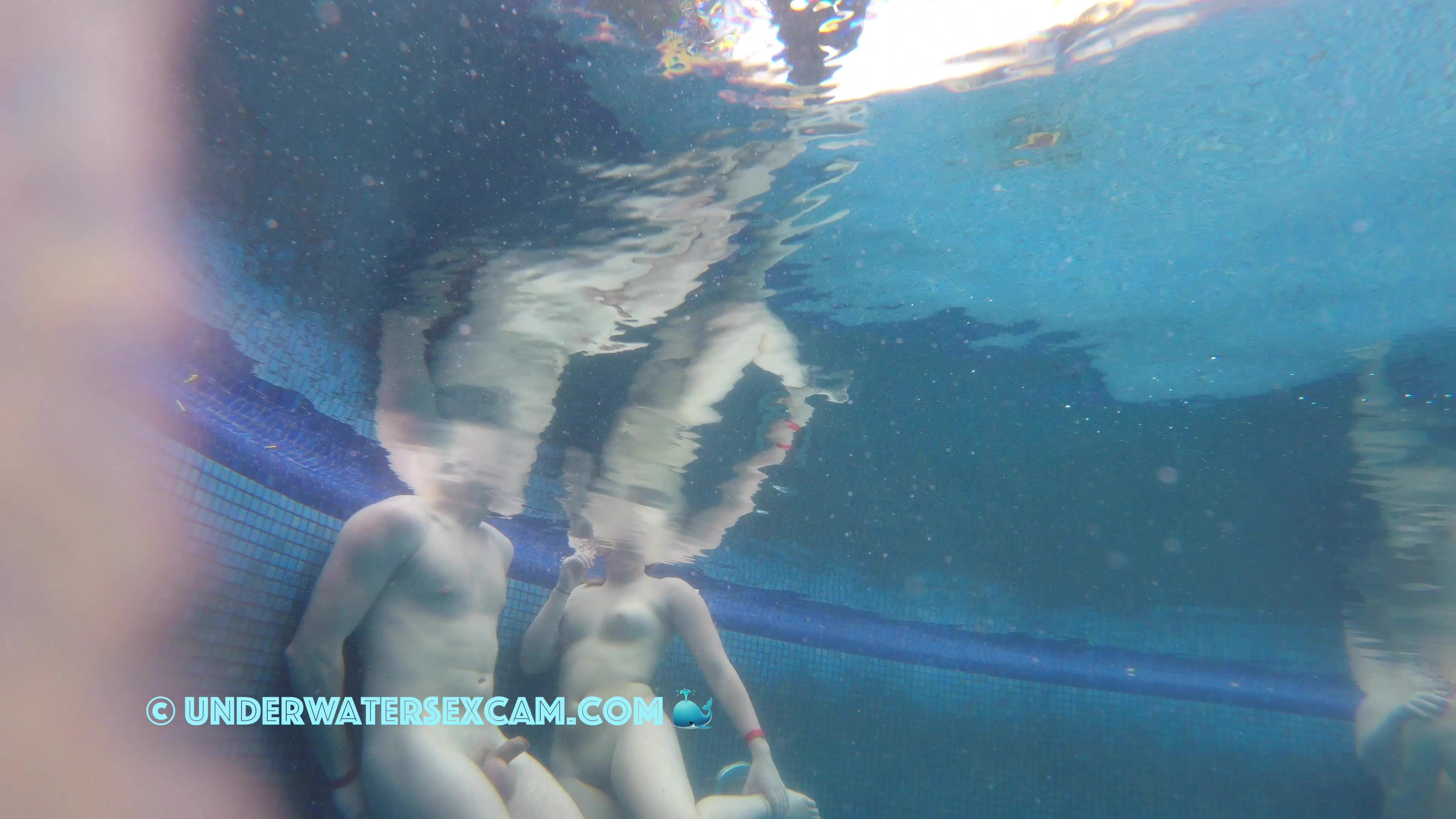 A pretty couple flirting underwater