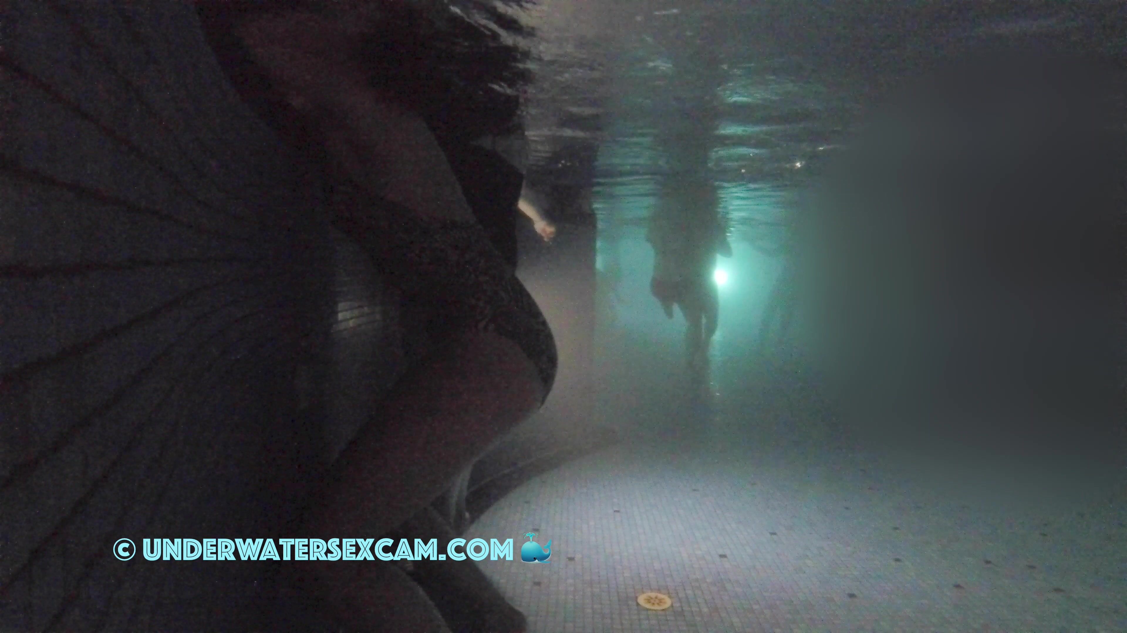 Black girl believes no one knows she is masturbating in a public pool with an underwater jet stream filmed by a horny voyeur with a hidden camera at night.