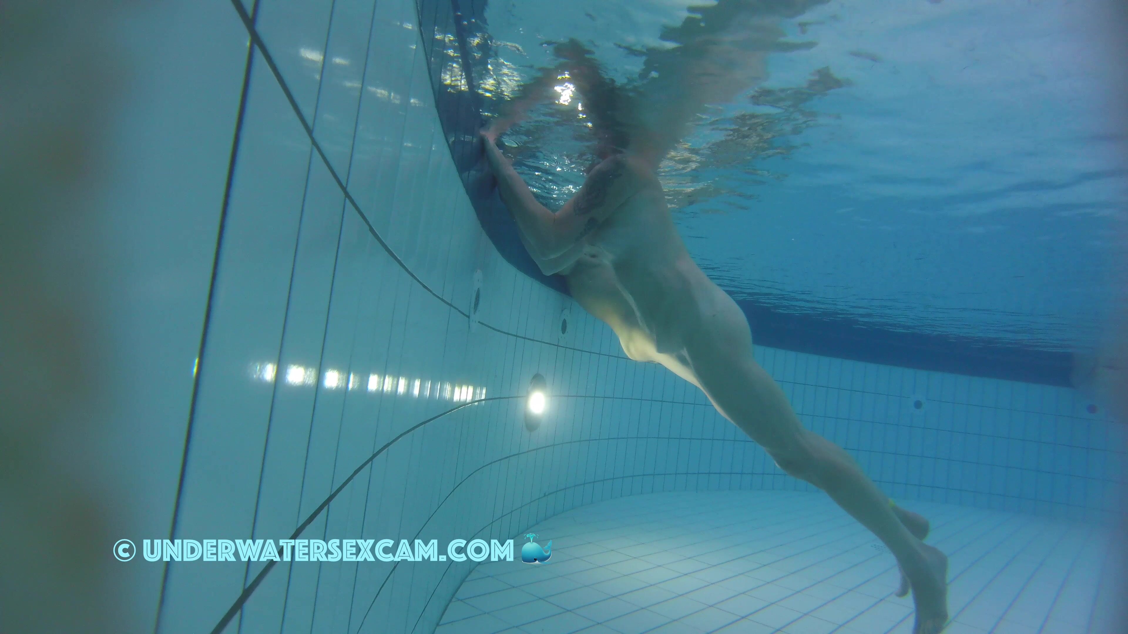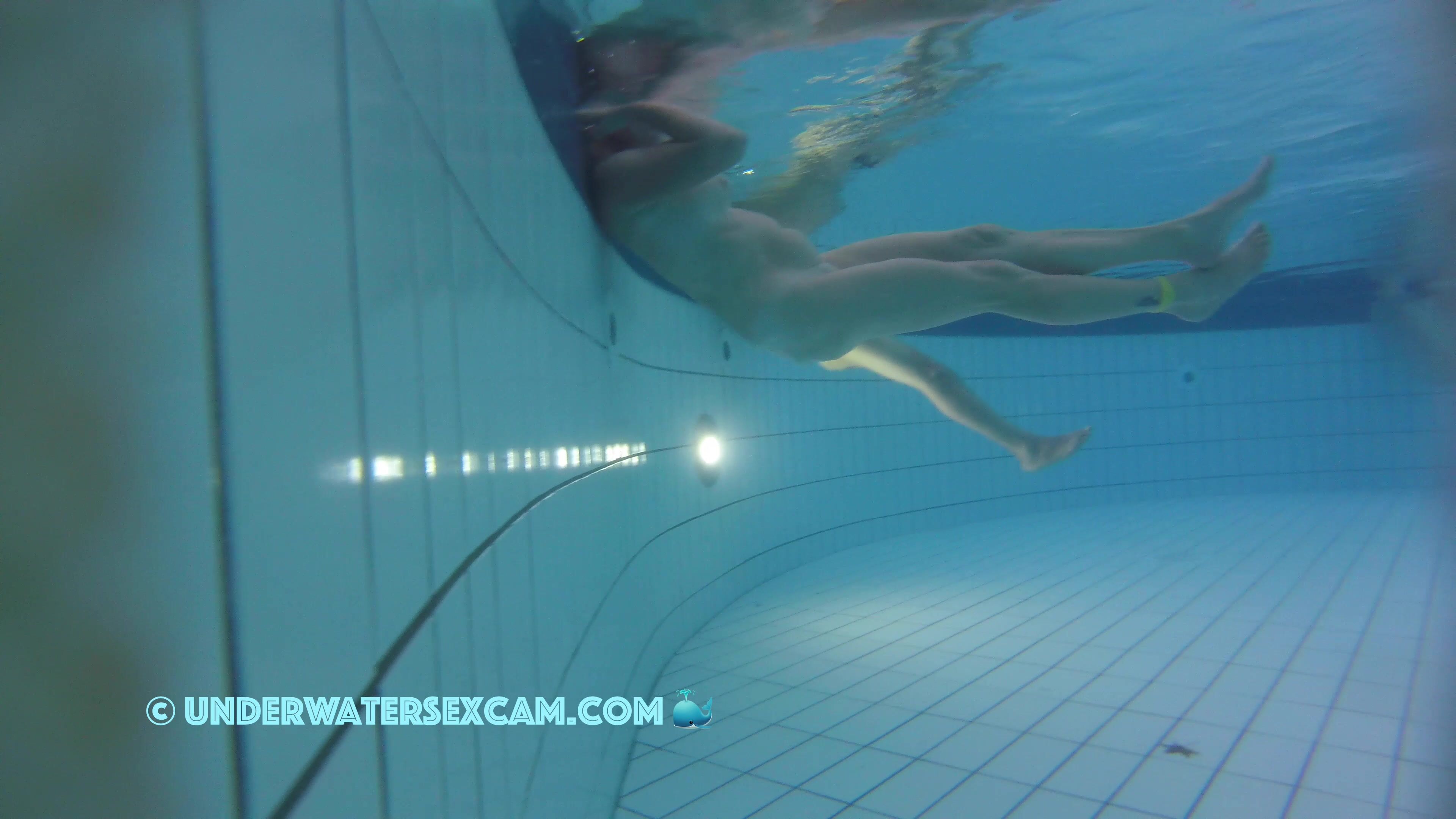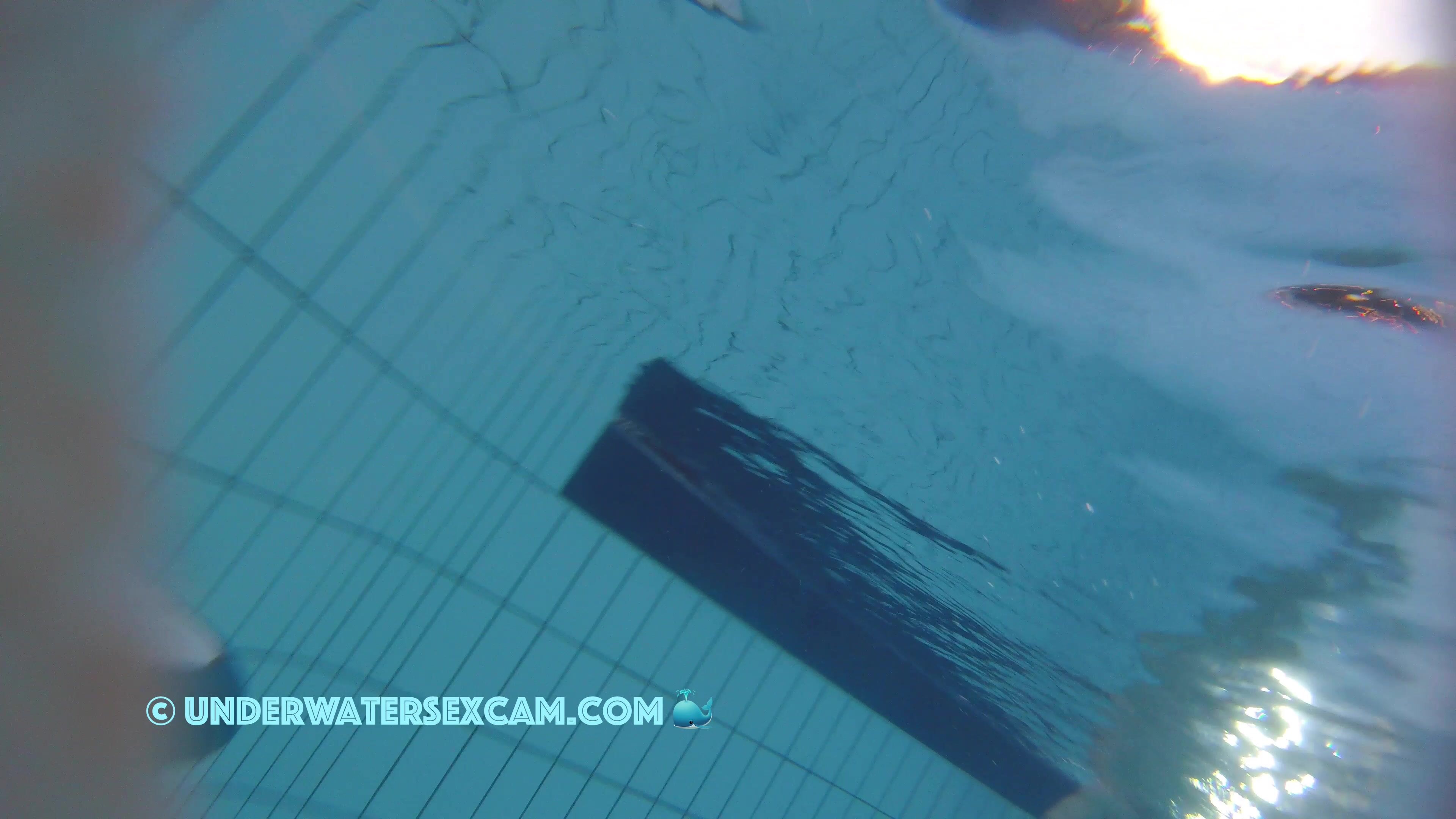 Milf tries out the jet stream underwater in the public pool while the hidden security camera is recording.