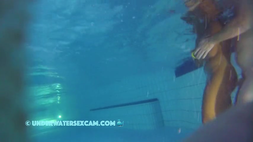 Exotic milf uses the jet stream intensively underwater in the public pool while the voyeur is filming her with his hidden cam.