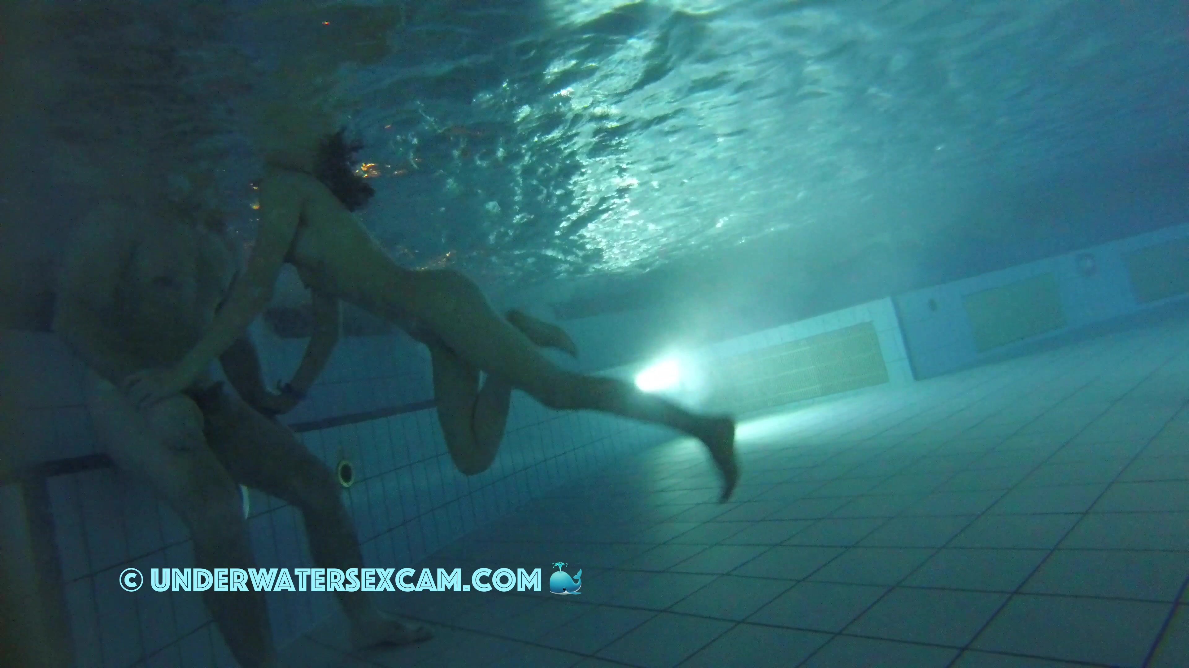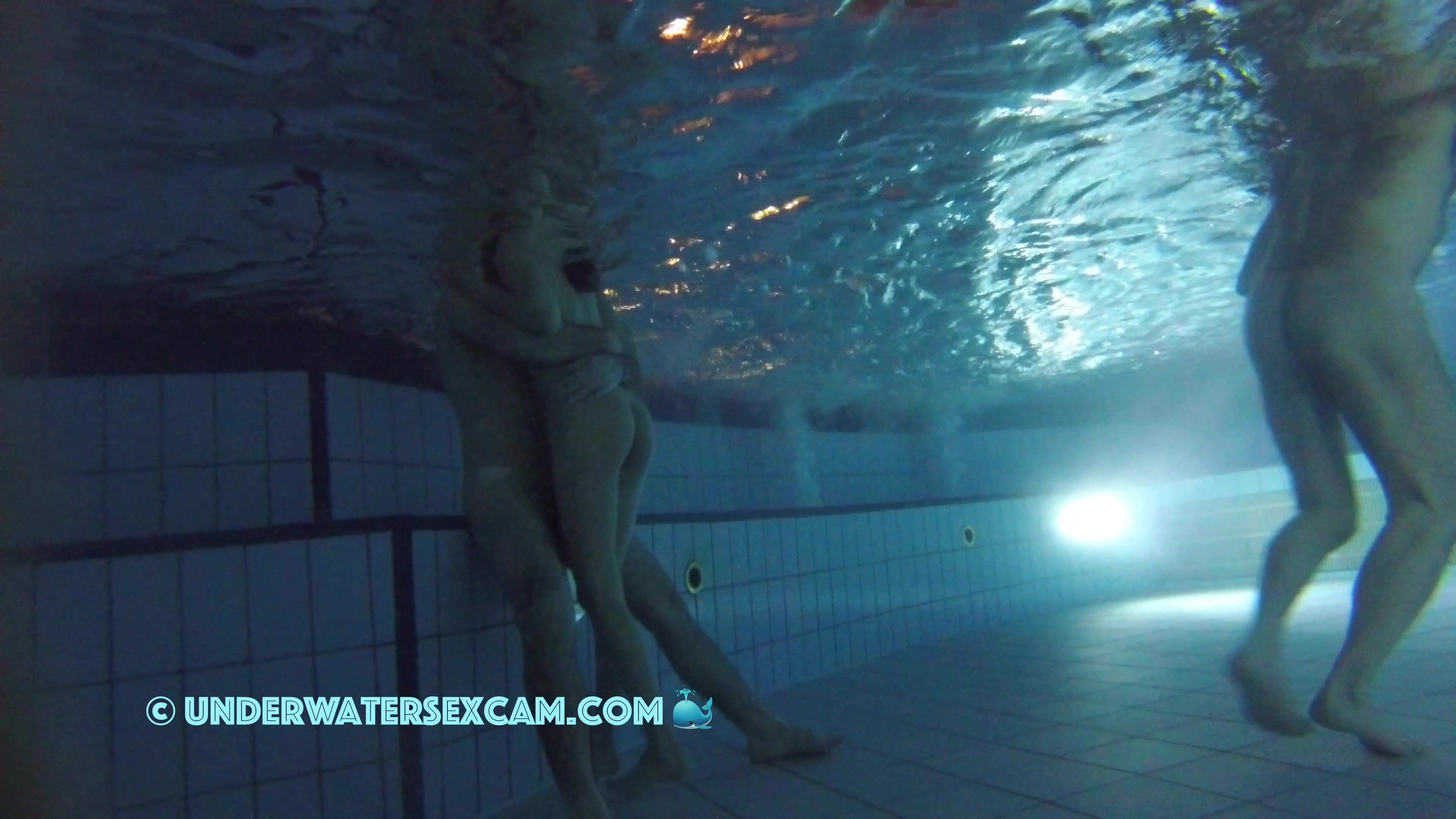 He holds her and wants to fuck her but she is still a virgin and you can see them taped with an underwater cam in a public pool.