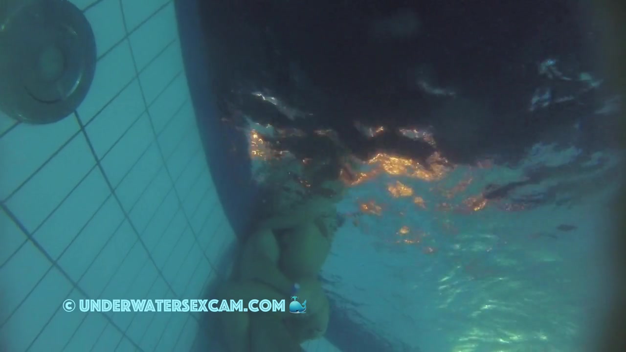 Late night sex underwater in a public pool with a hot girl and the hidden surveillance camera is recording it.