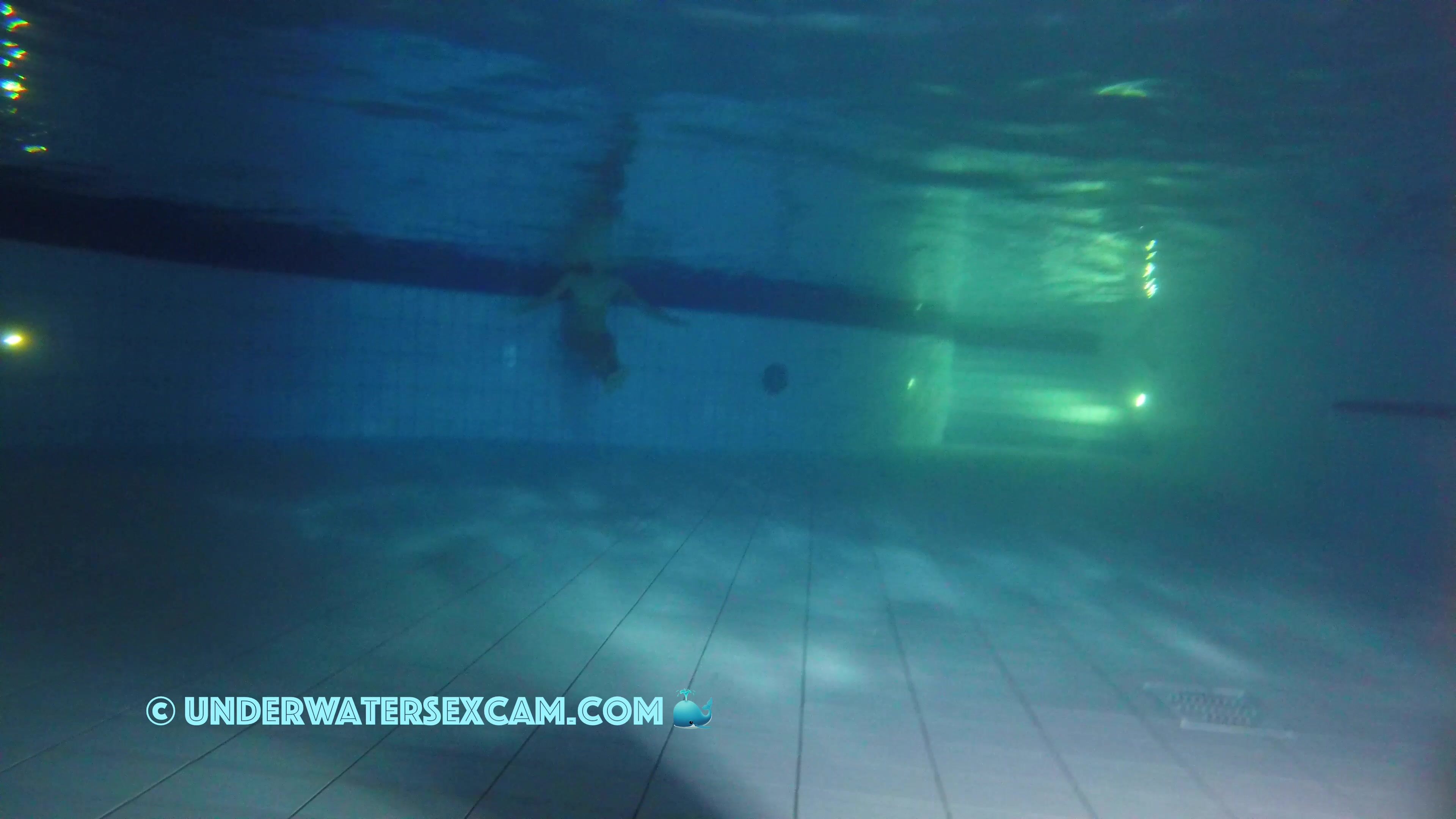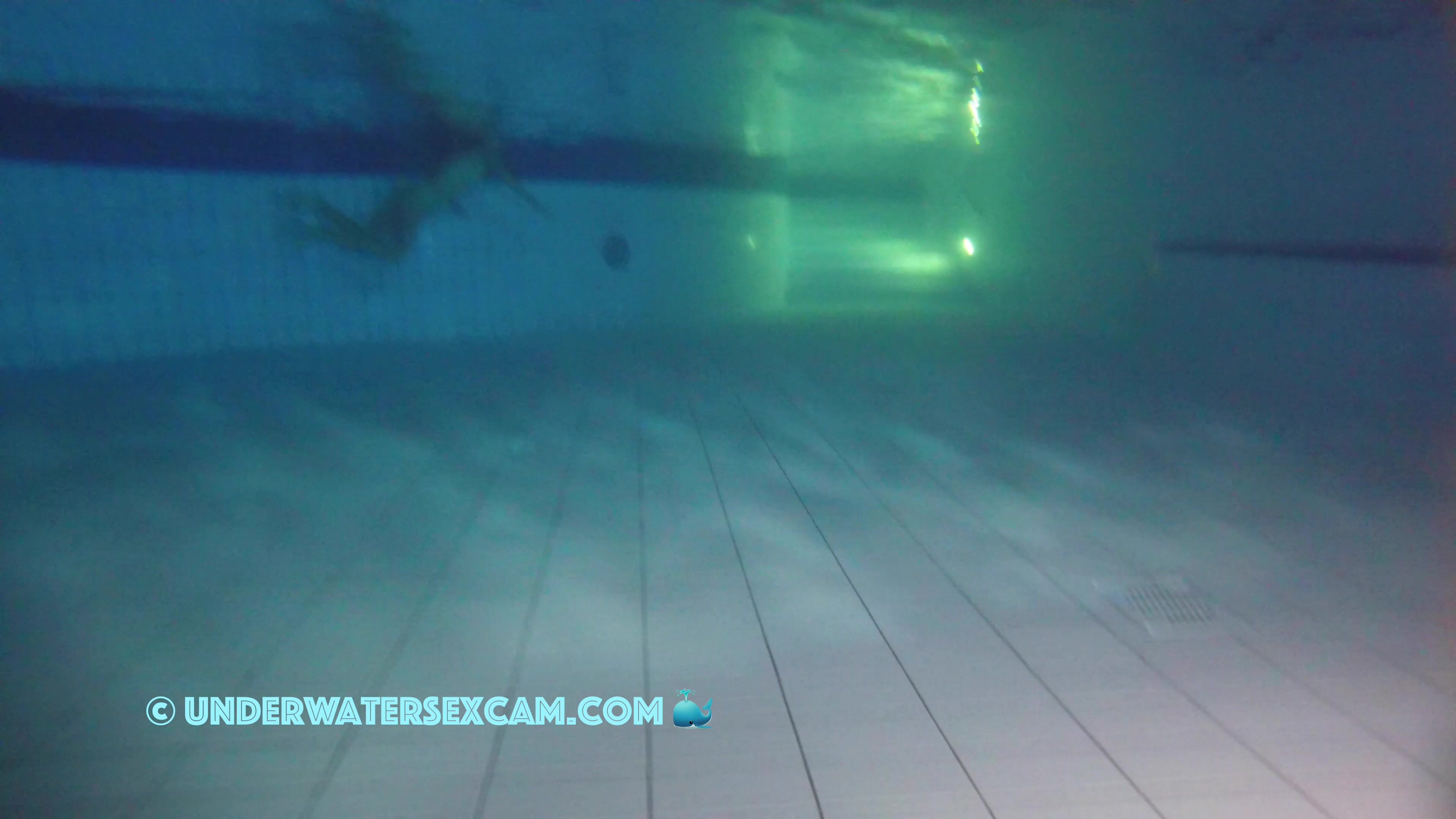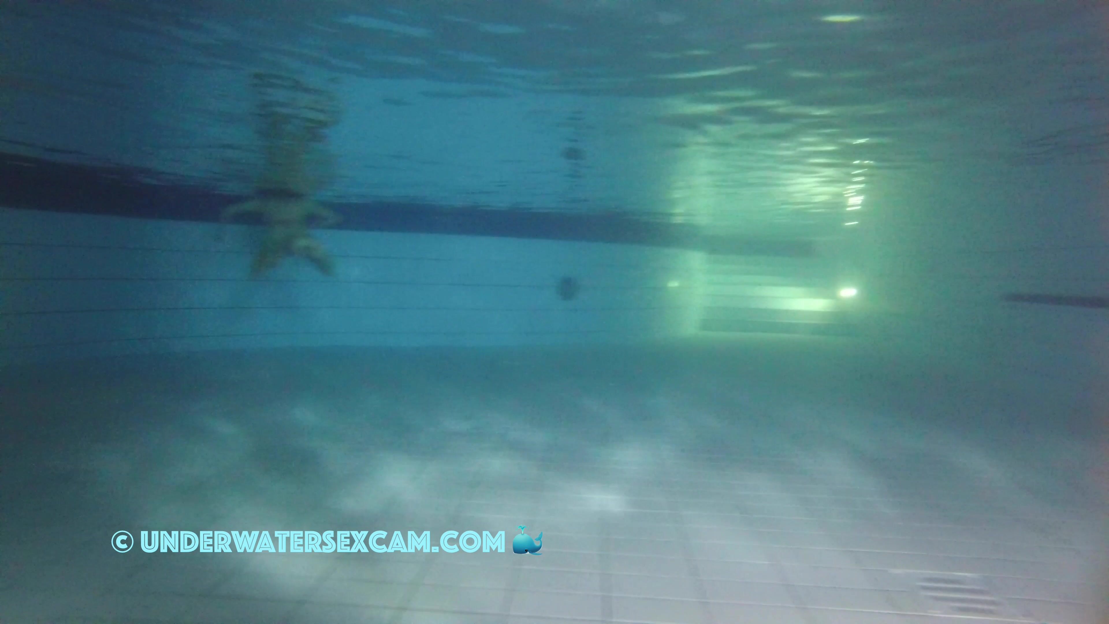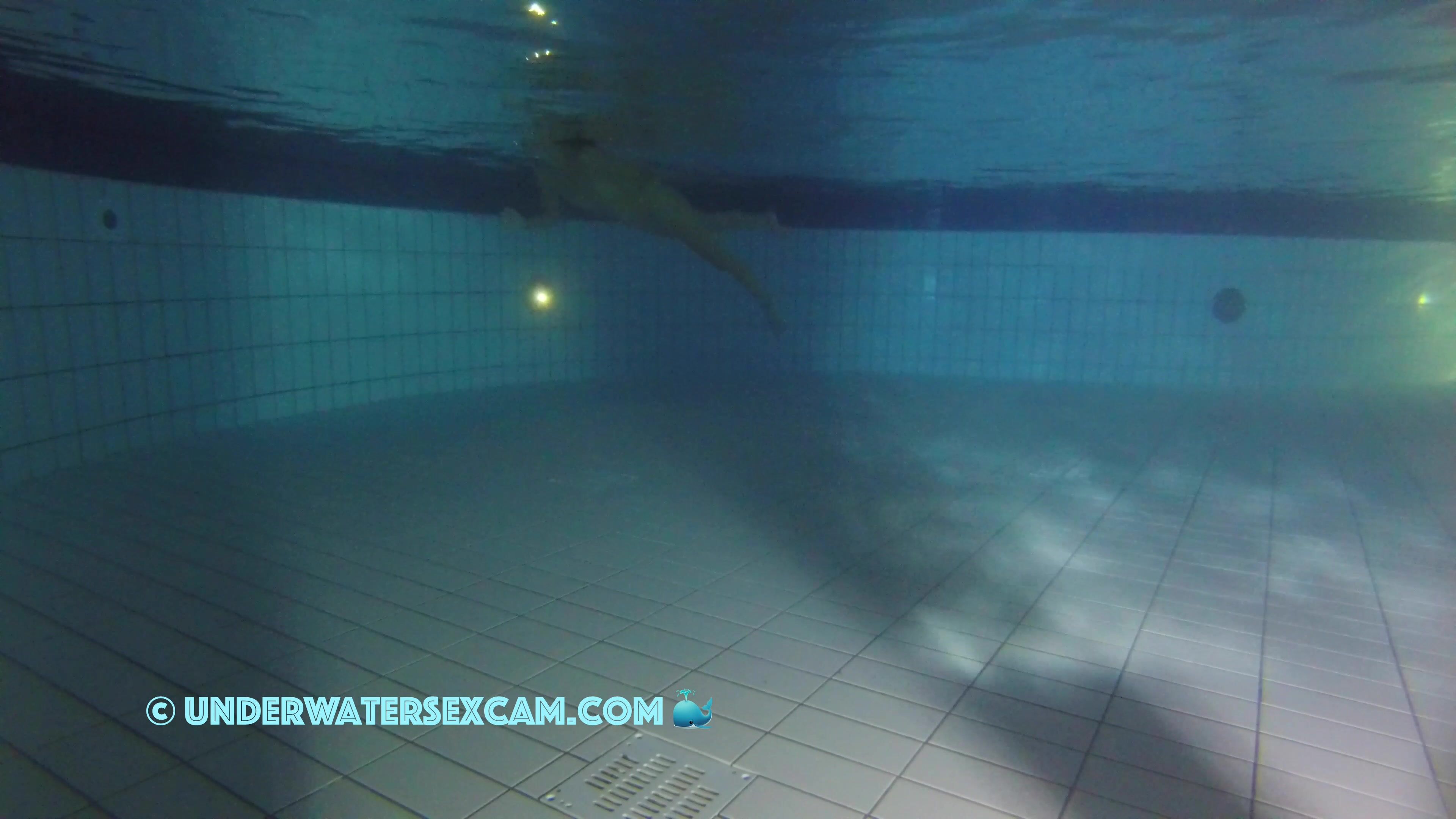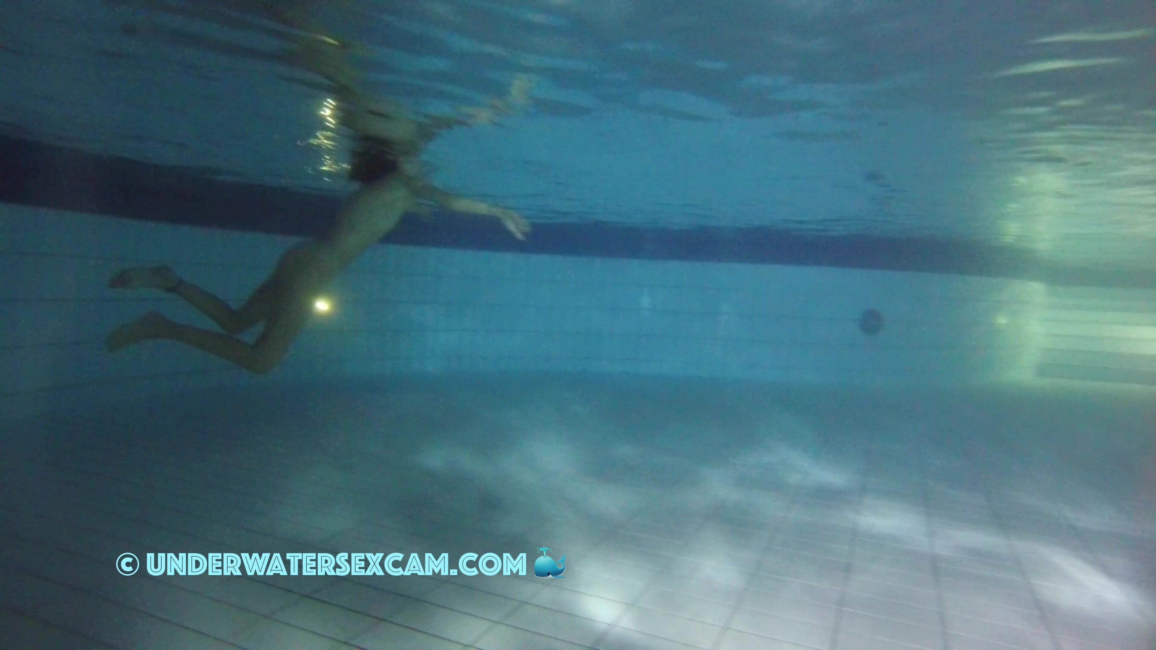 Nice girl is swimming nude in a public pool while the hidden underwater cam is recording.