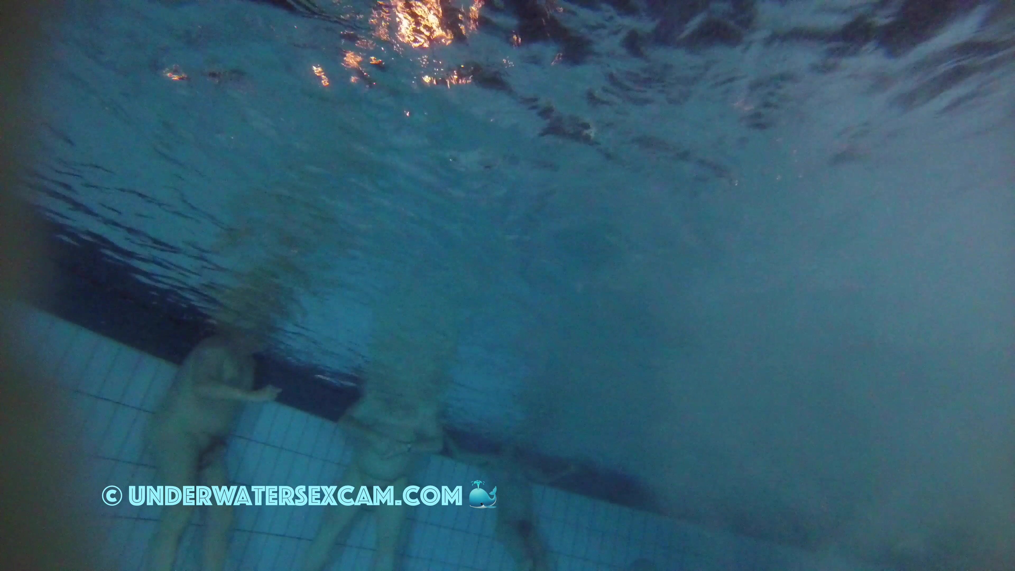 Horny couple enjoys to be nude in the public pool and the hidden cam is shooting them