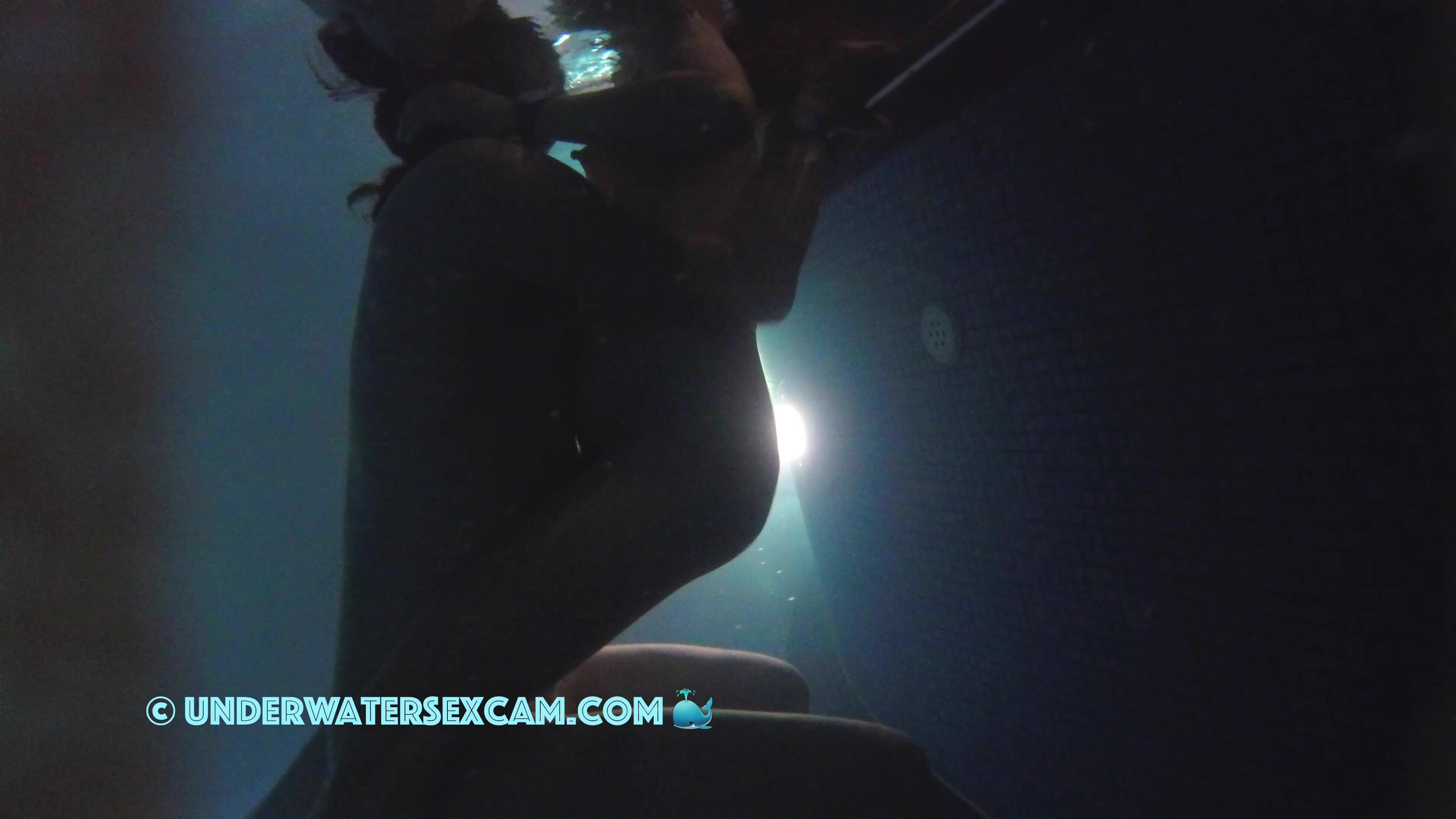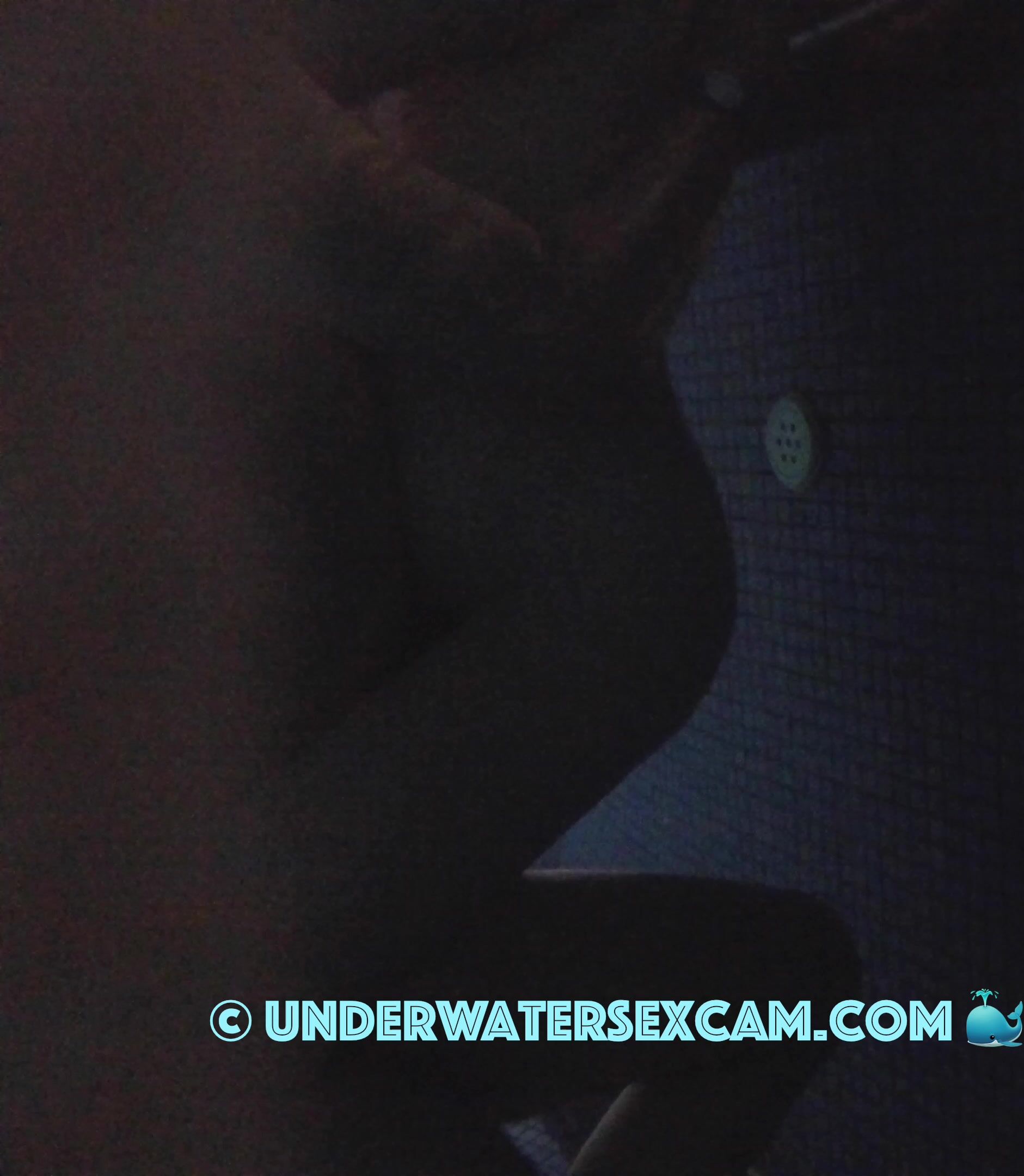 Man holding his wife for underwater massage in a public pool while the hidden spy cam is watching.