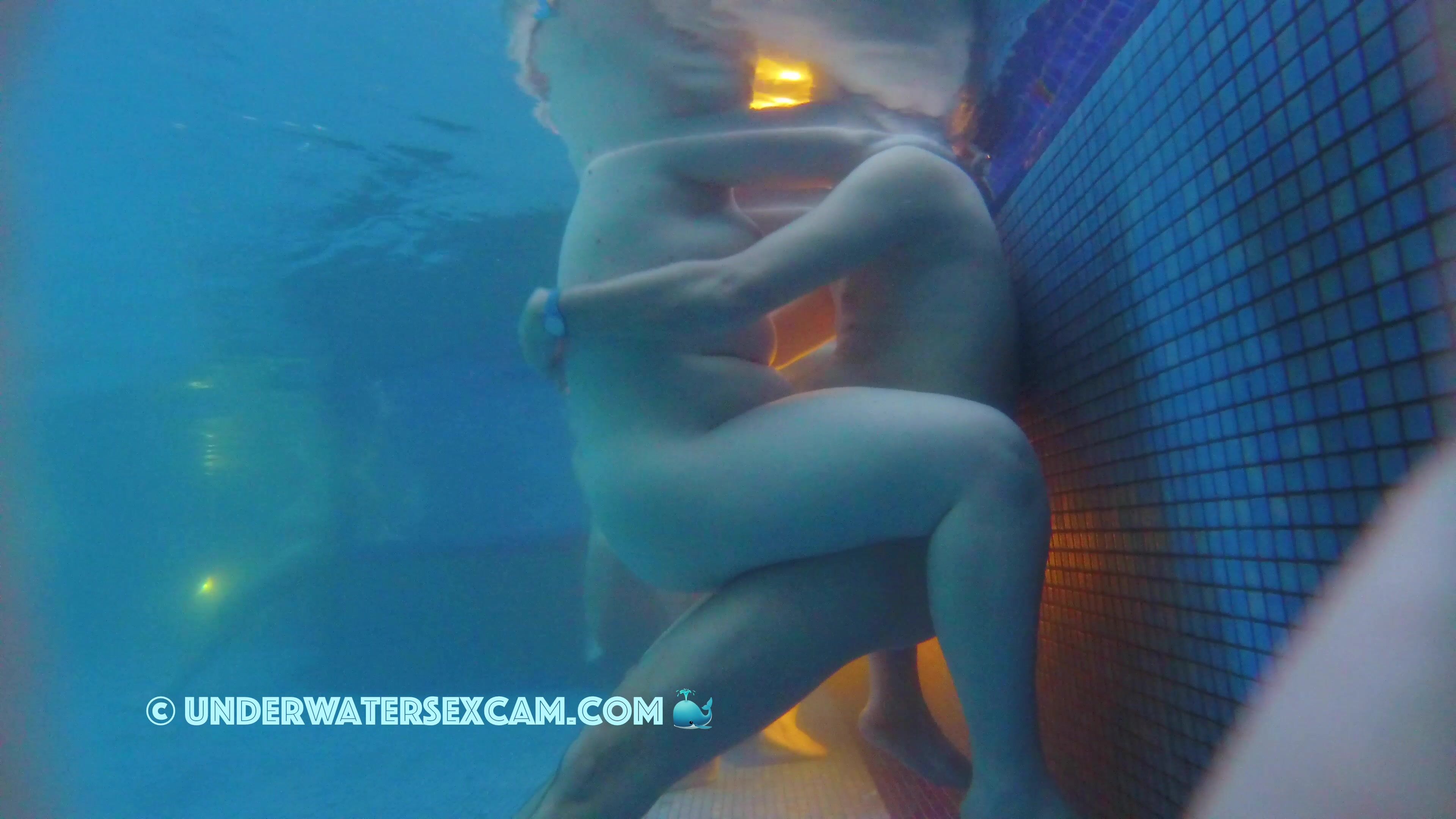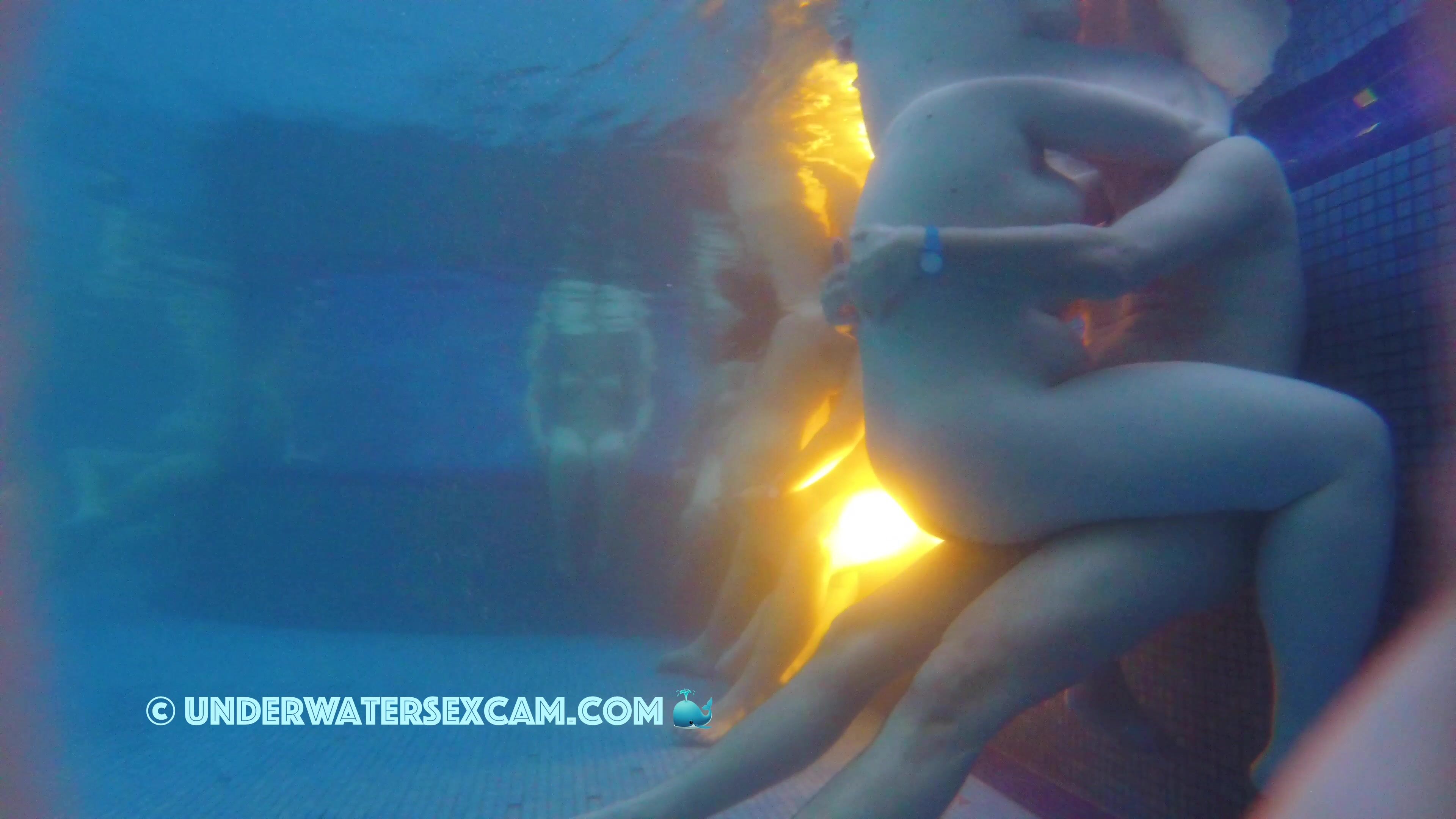 Milf Couple is in position to start fucking underwater in a public pool while the voyeurs hidden camera is recording.