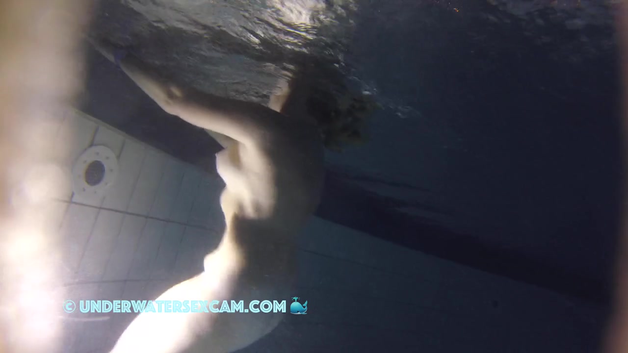 Sweet milf is using the jet stream for underwater massage while the voyeur is filming with his hidden spy camera.