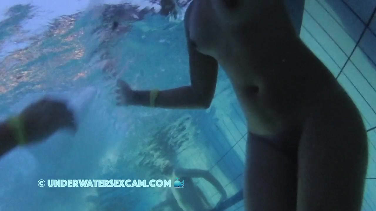 Hot black girl with black nipples underwater in a public pool while the voyeurs spy camera is running.