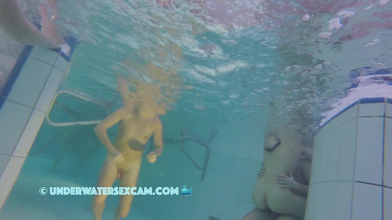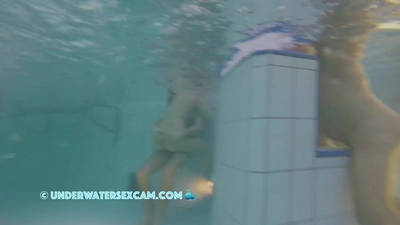 This young horny teen couple is fucking the whole day in the public pool while the peeper is using his underwater camera.