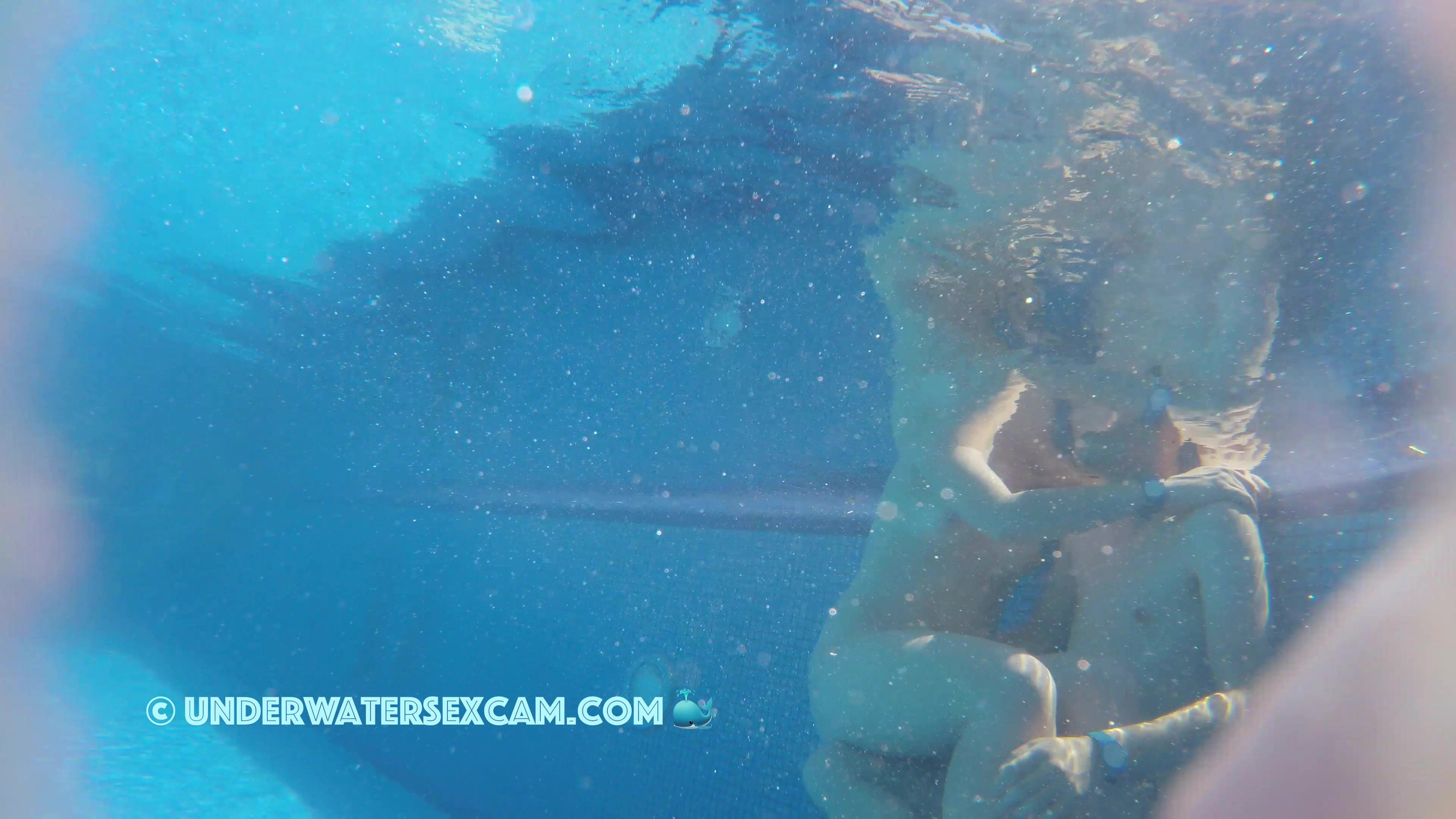 Young couple loves to be nude in a public pool while the voyeur is filming them with his hidden underwater camera.