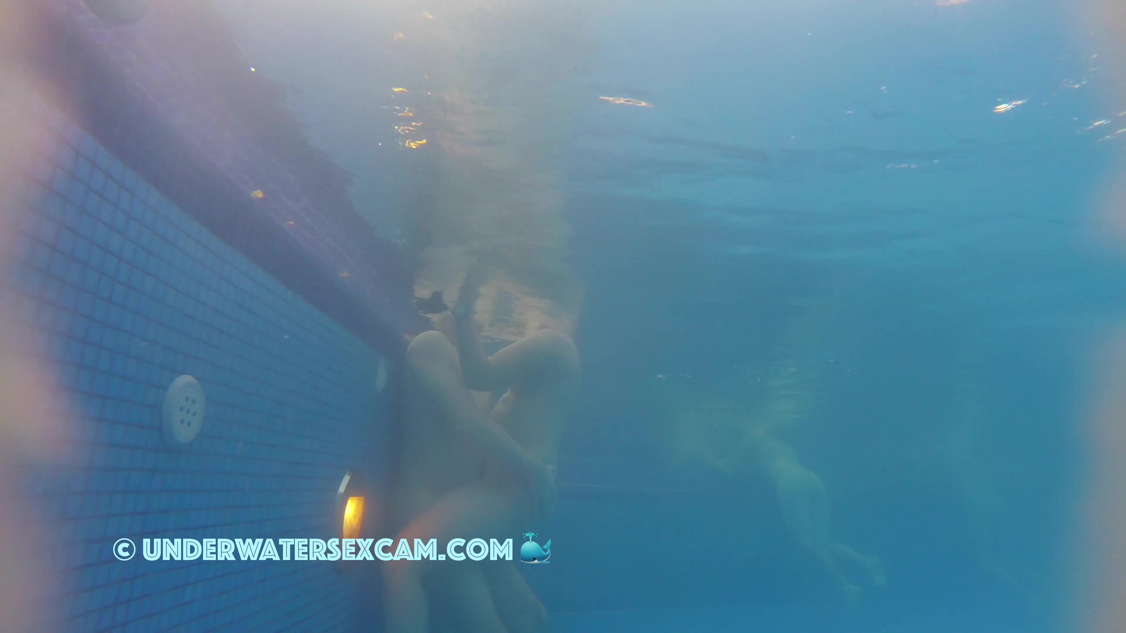 Being nude in warm water makes horny while the voyeur is filming with his hidden underwater camera in a public pool.