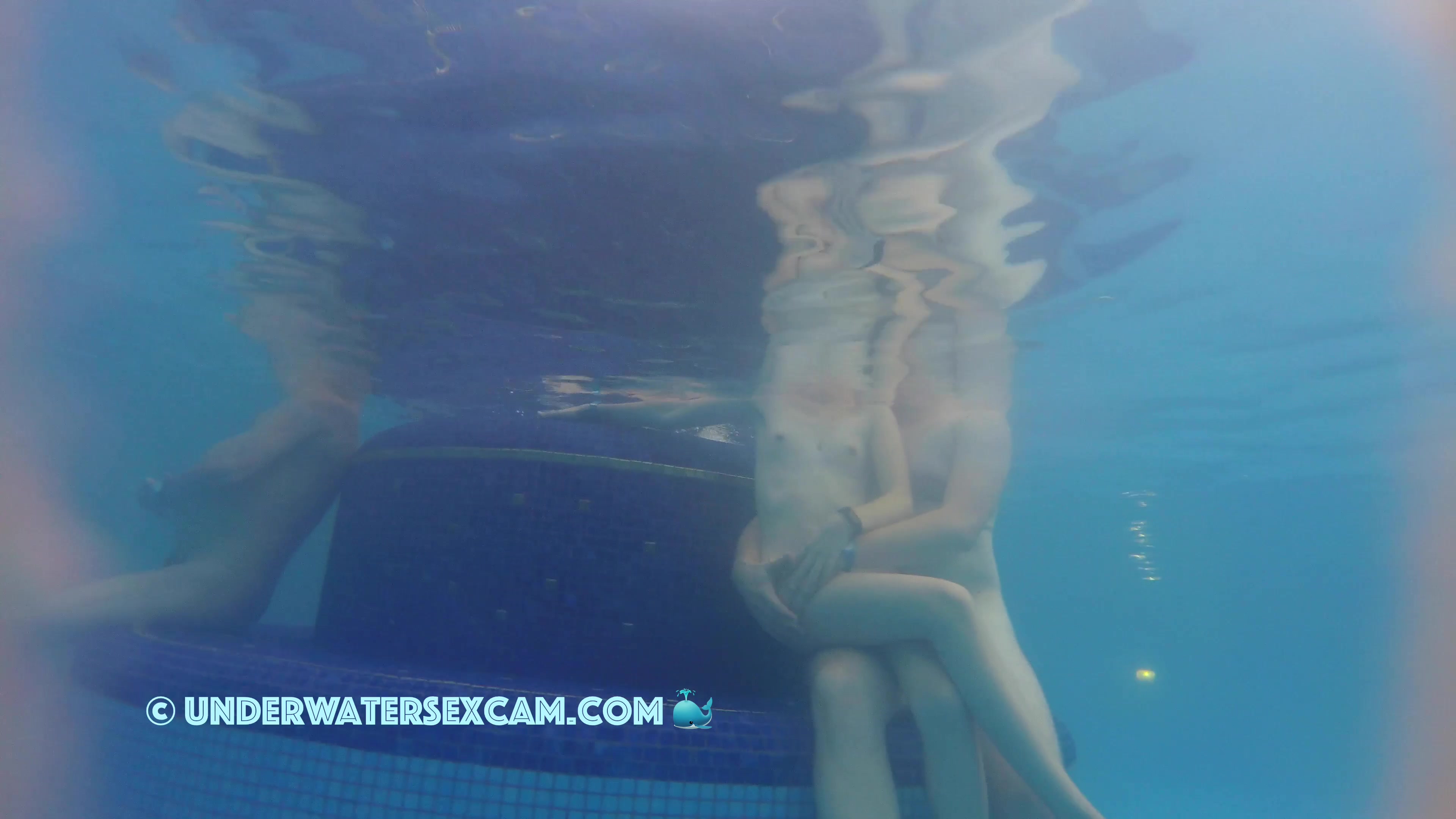 Little teen in the arms of her lover and the voyeur is running around with his hidden underwater camera.