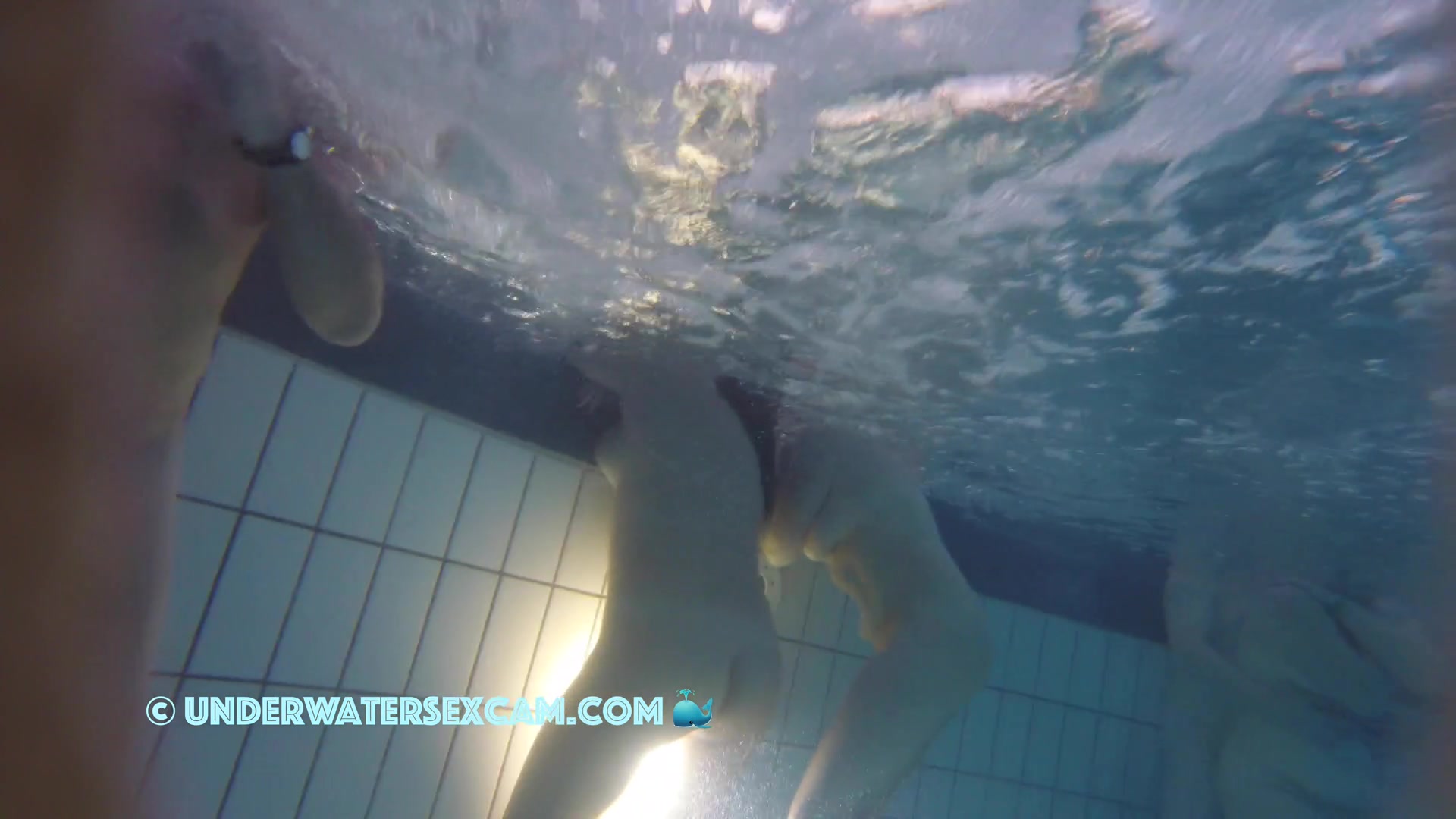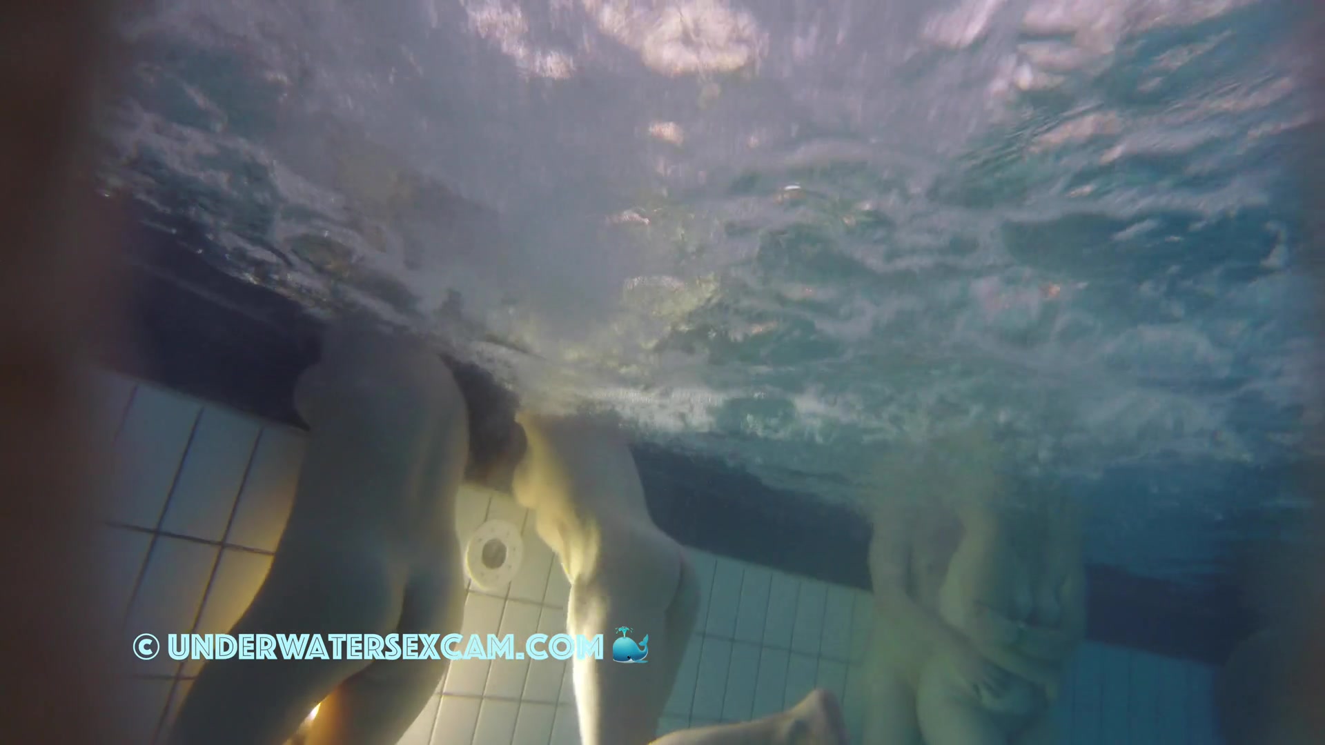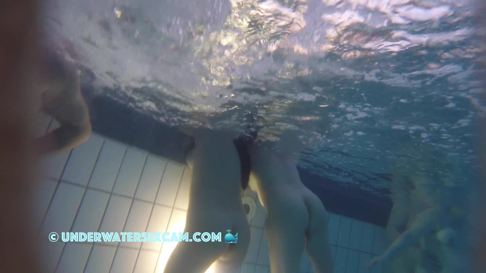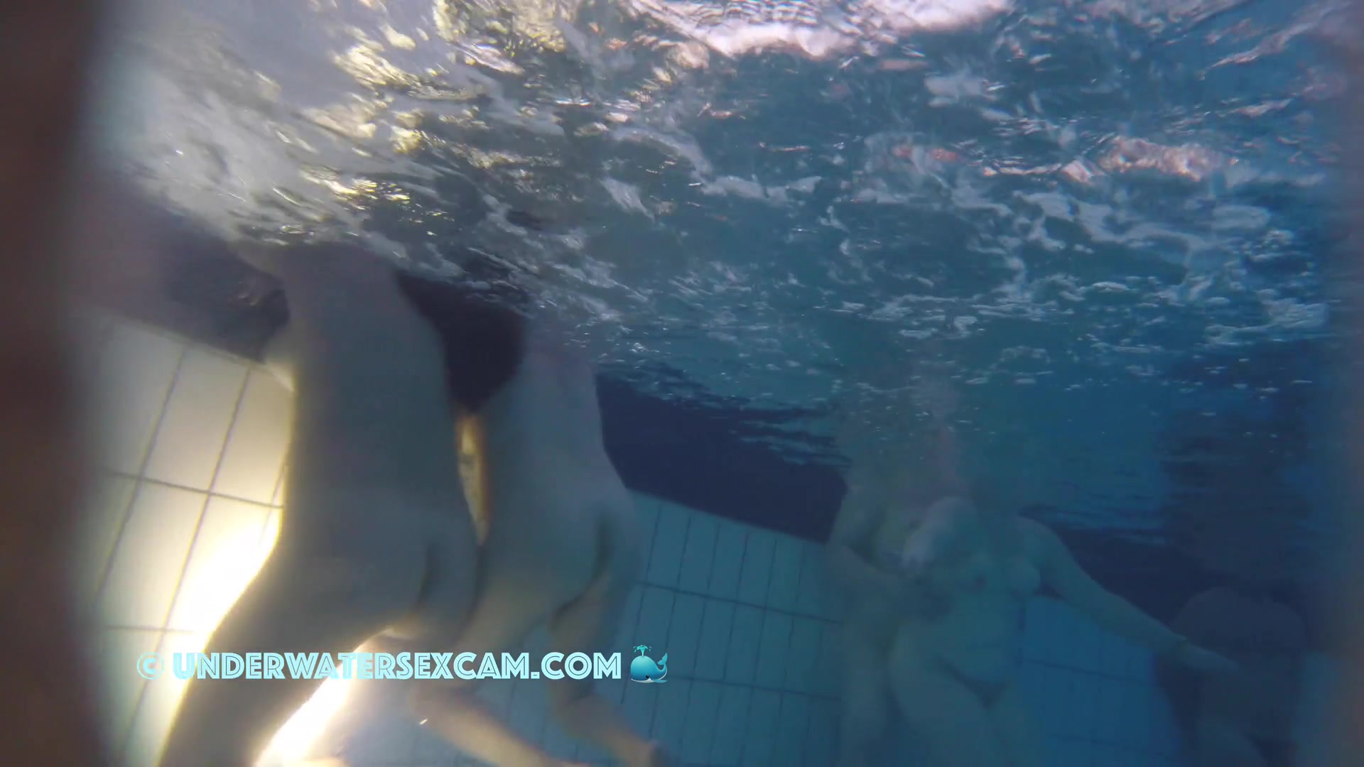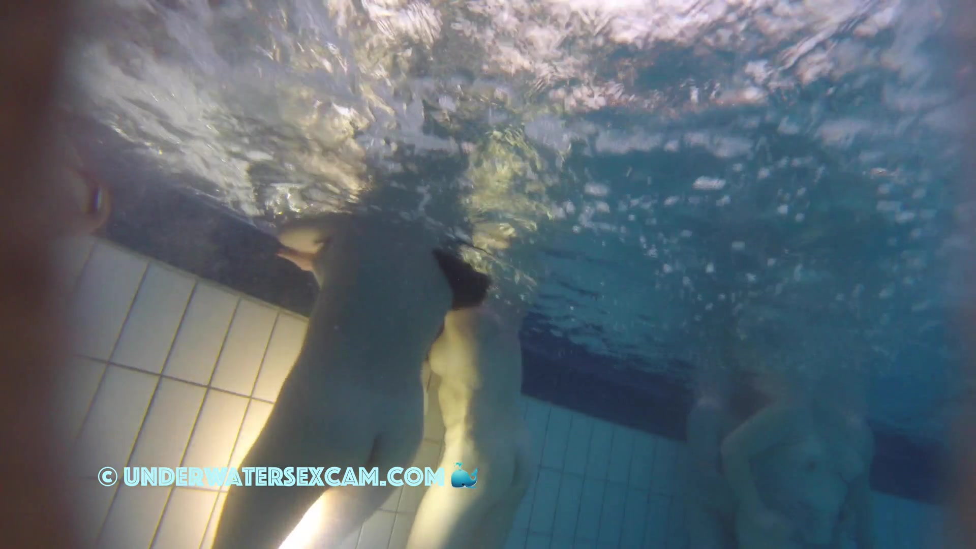 Description: A younger and and elder lady underwater in public pool while the hidden camera is running.