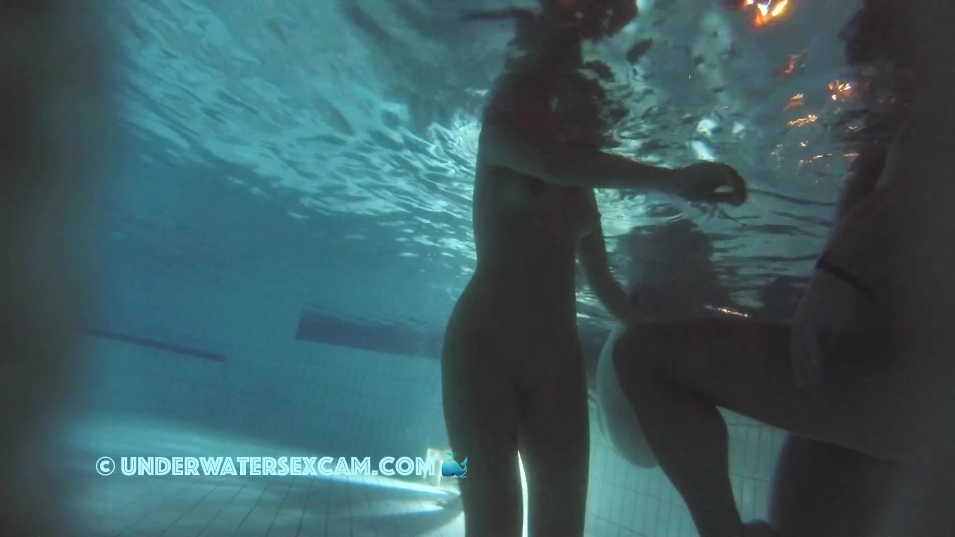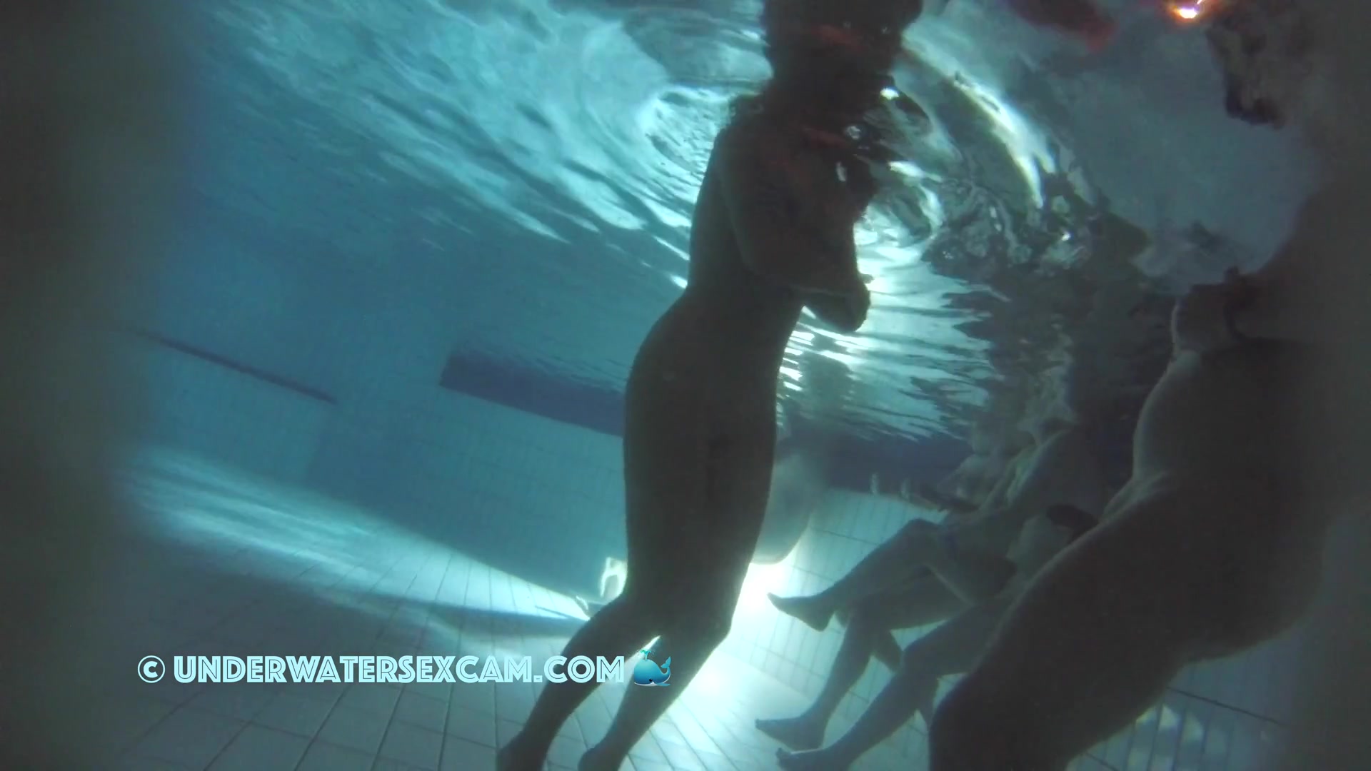 Special night dance in front of her lover underwater in a public pool while the peeping tom is filming with his hidden camera.