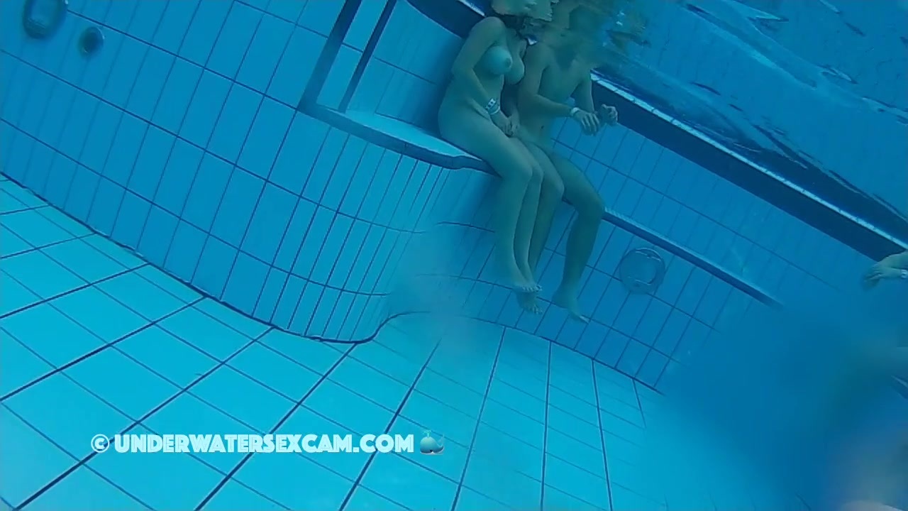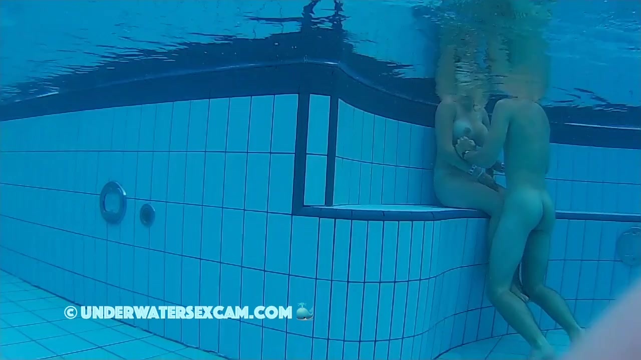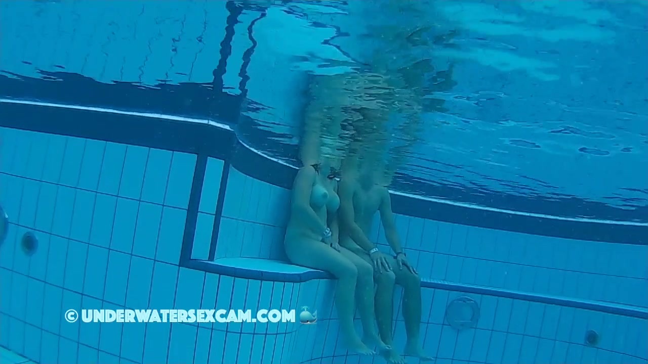 Sweet teen girl with big tits and a horny boyfriend in a public pool while the voyeurs hidden underwater camera is running.