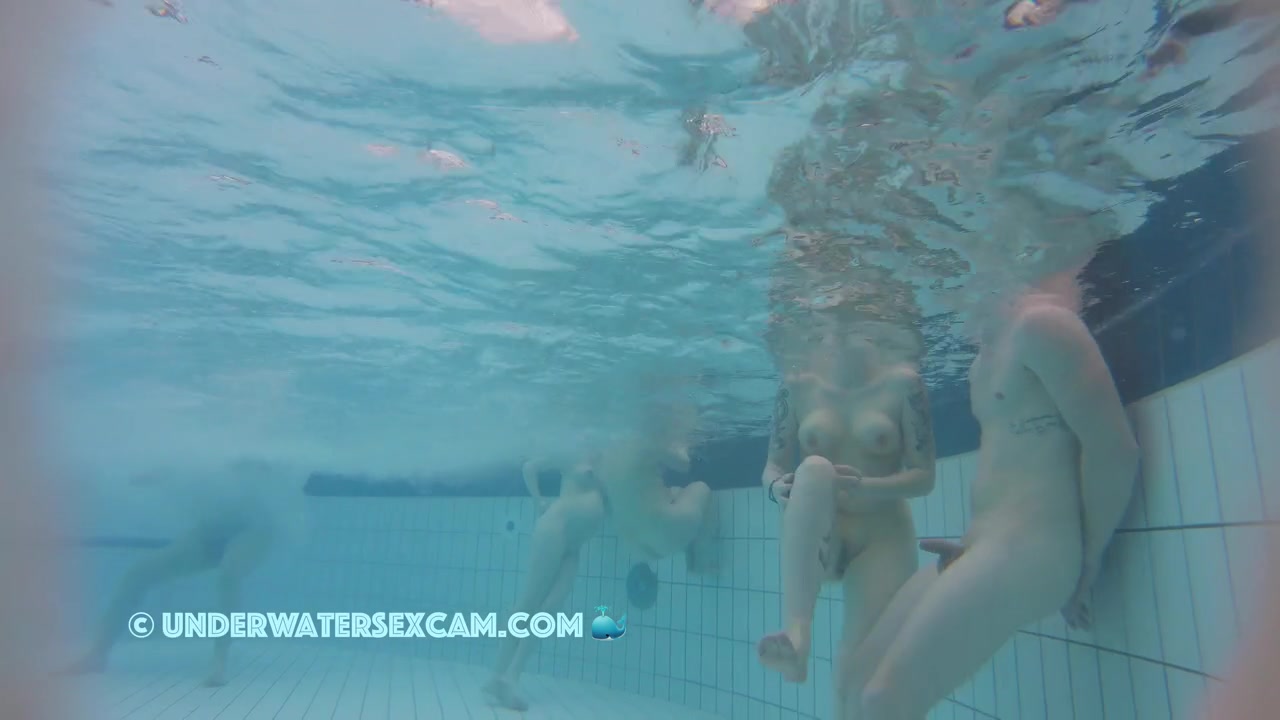 Hot girl with erected nipples and some tattoos underwater in a public sauna pool while the hidden spy cam is working fine.
