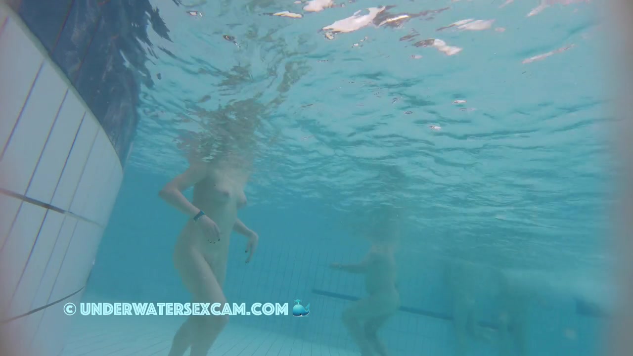 Sweetie explores the public pool while the voyeur is filming her with his hidden underwater camera.