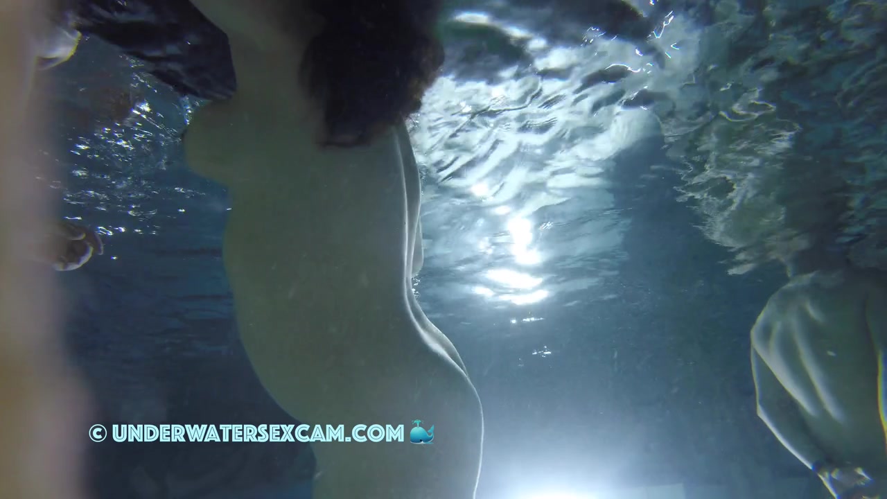 Sexy lady opens her legs underwater in a public spa pool and the voyeur is filming her with his hidden underwater camera.