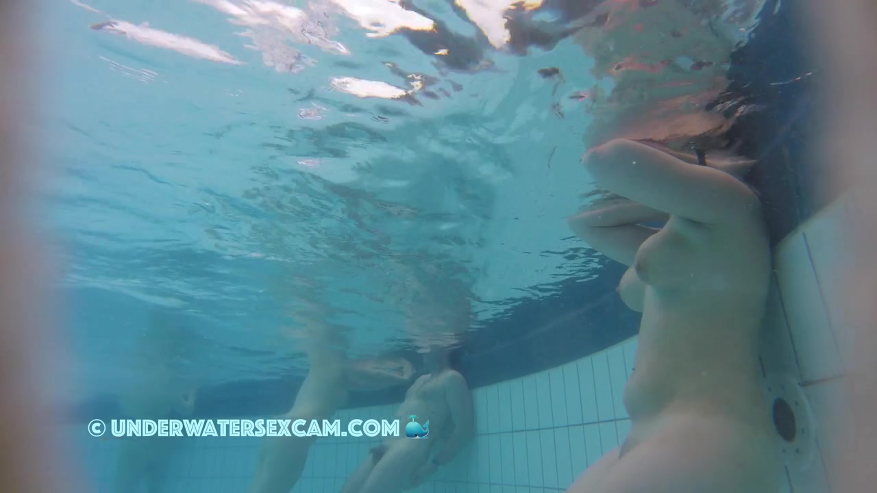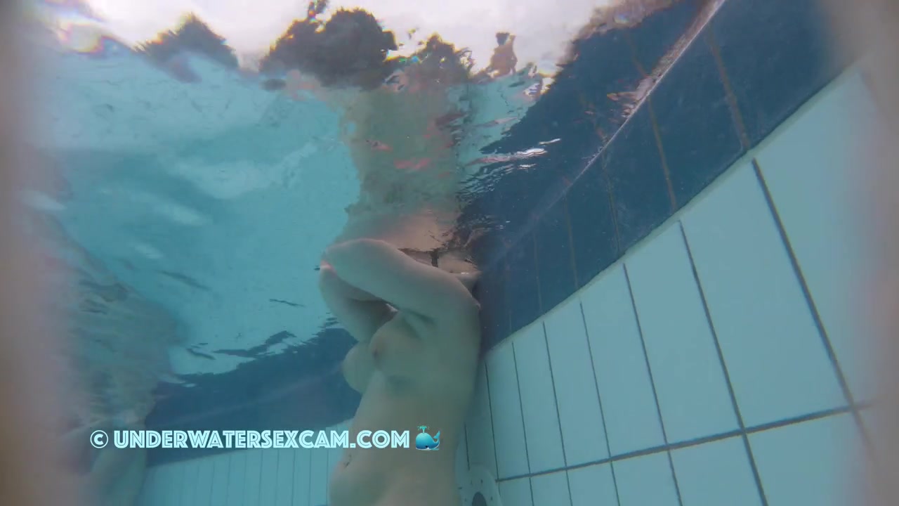 She has these cute boobs and the voyeur is filming her with his hidden underwater camera in a public pool.