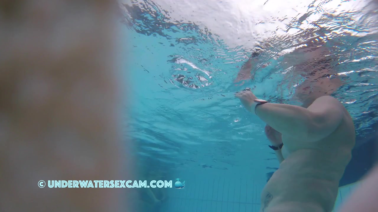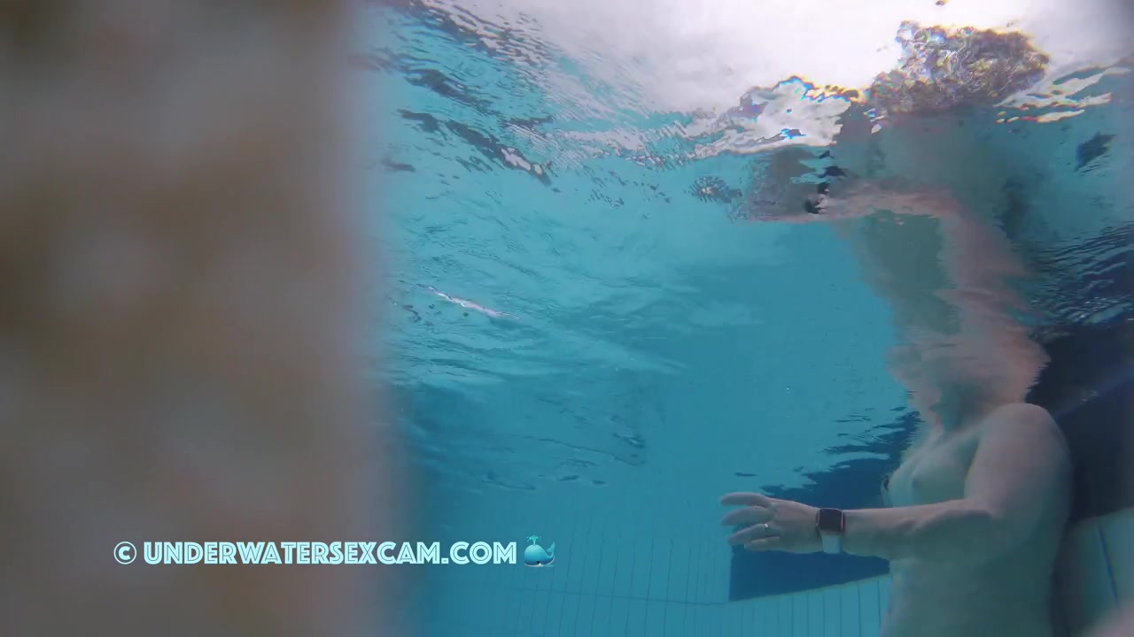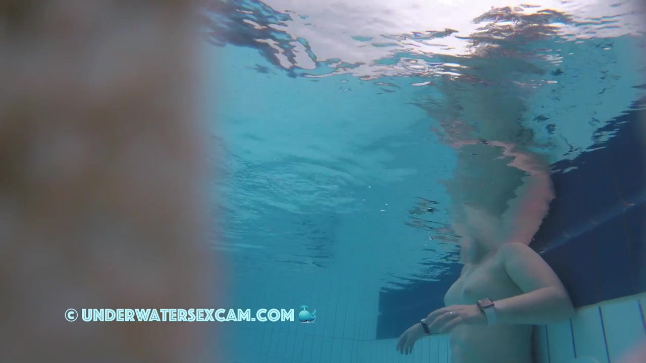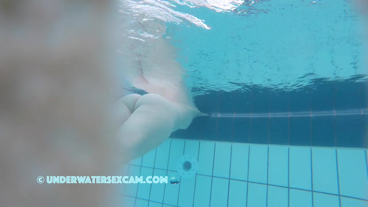Milf loves underwater massage in a public pool while the hidden security camera is filming her.