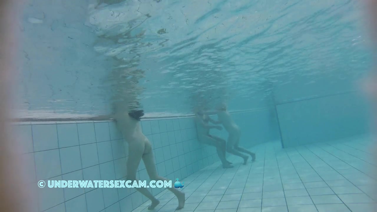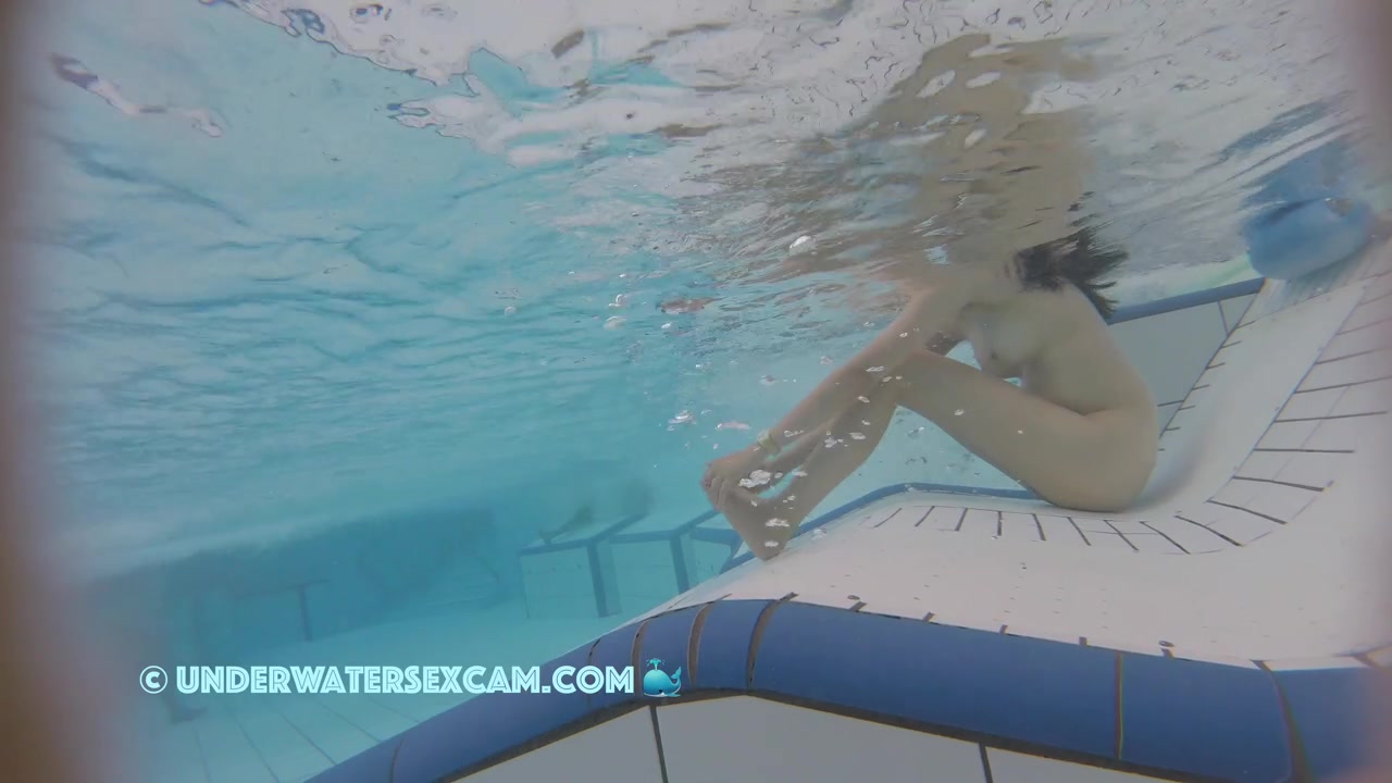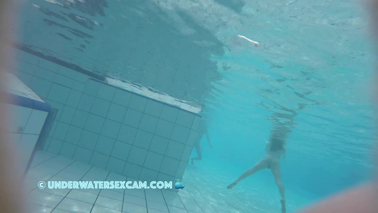 Sweet Asian teen enjoys the other nudists in a public pool while the voyeur is filming her with his hidden underwater camera.