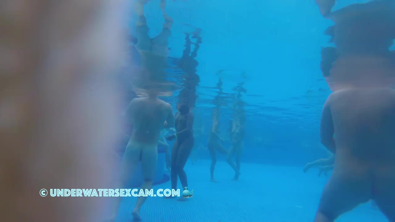 Many naked girls make his dick hard underwater in a public pool while the hidden security camera is running.