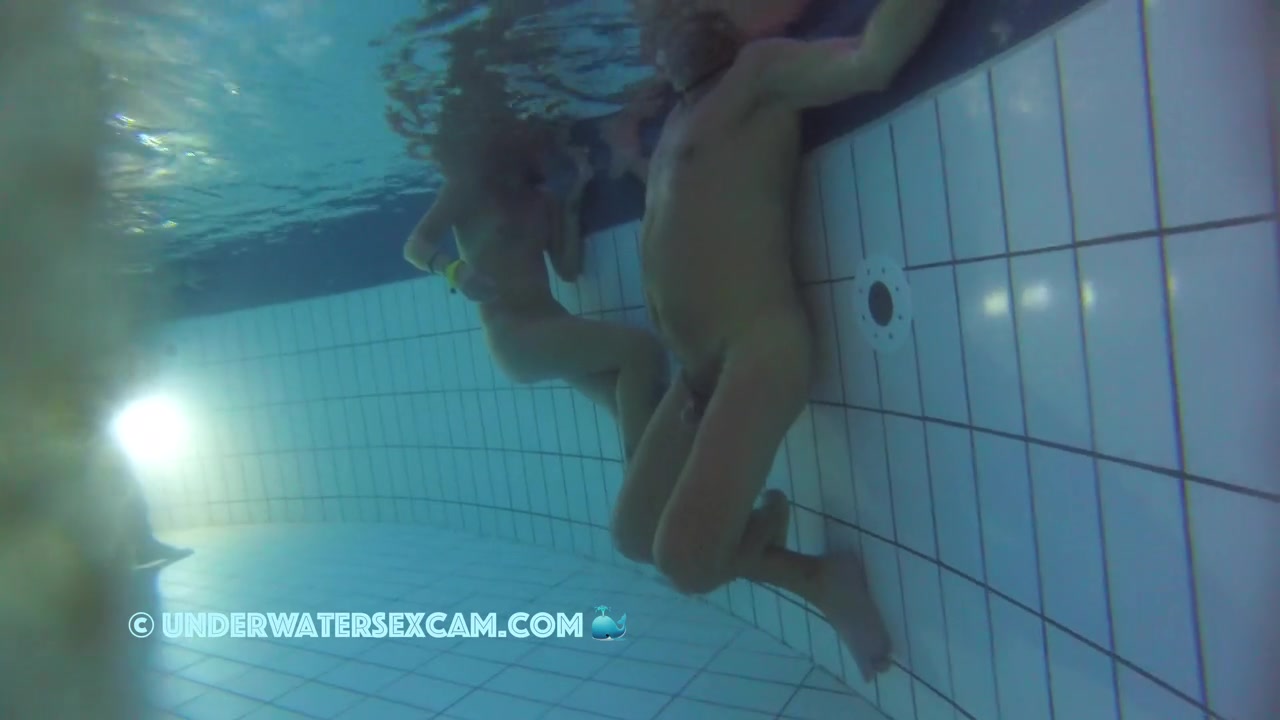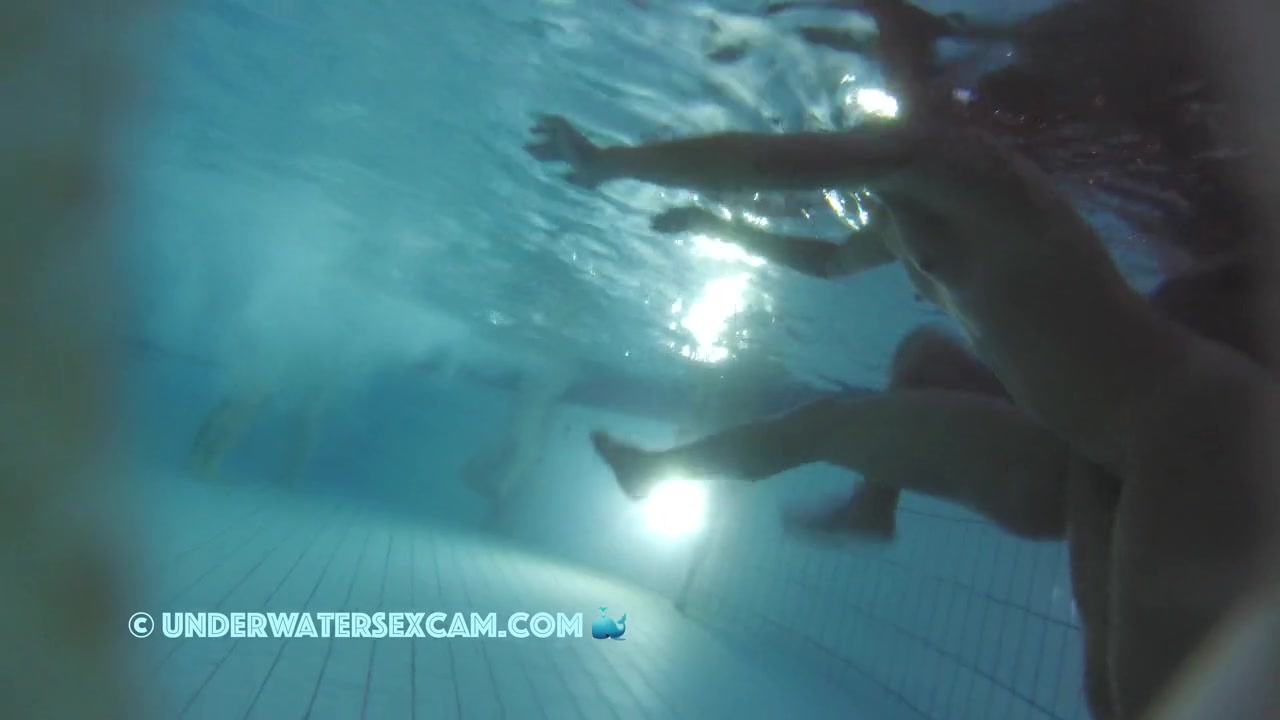 Beautiful woman with small boobs in a public pool while the hidden underwater security camera is running.