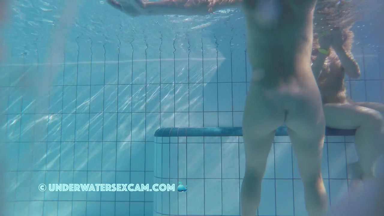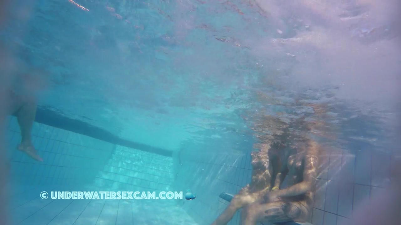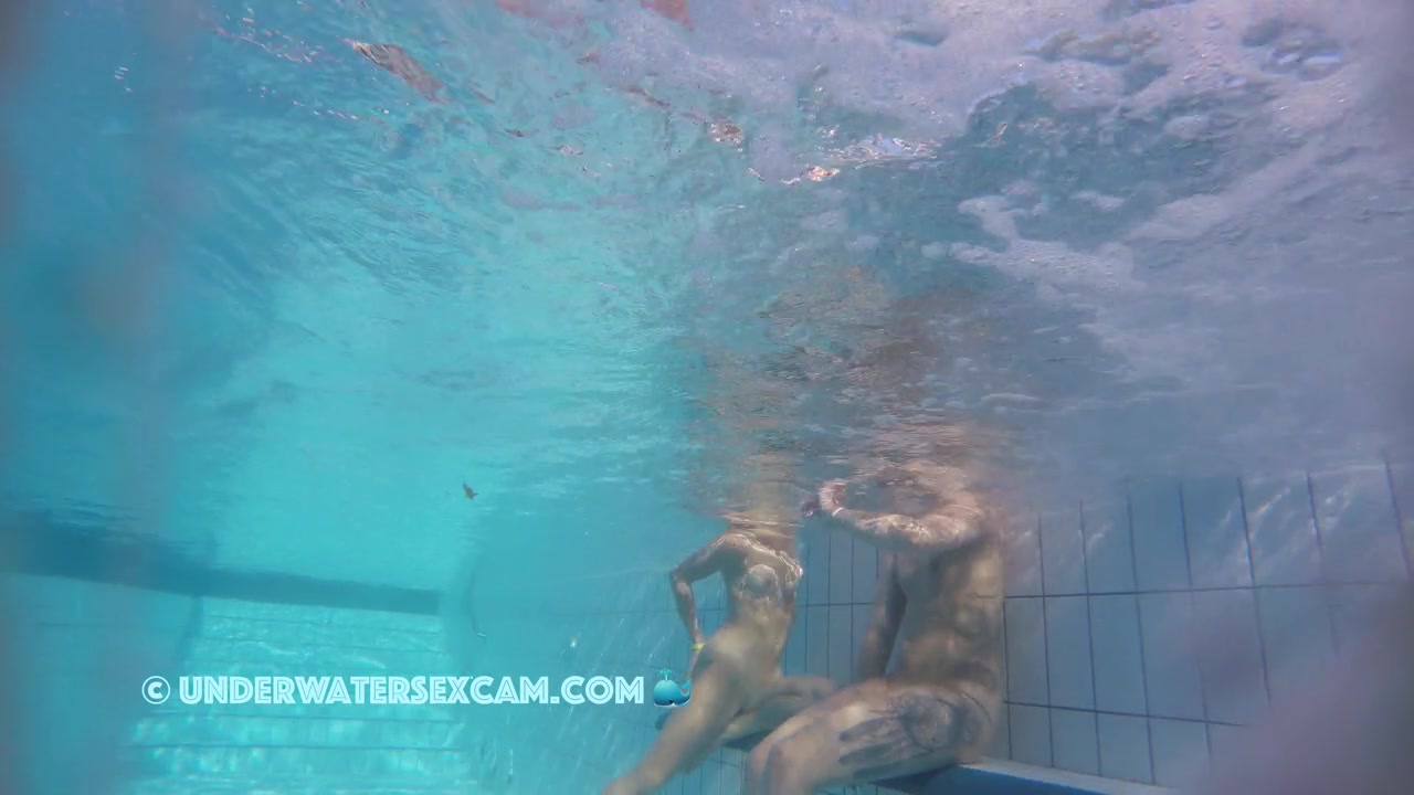 Two tattooed girls with small tits underwater in a public pool while the voyeur is shooting them with his hidden cam.