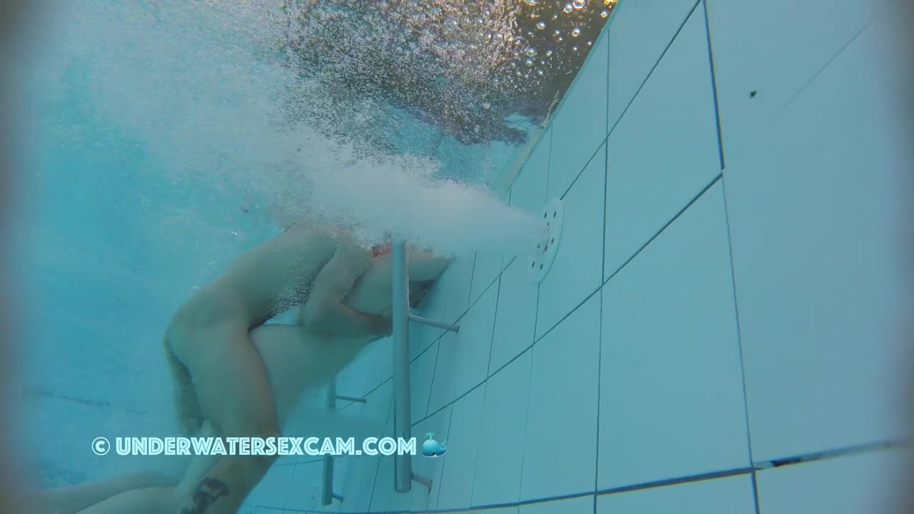 Jet stream masturbation with help from behind in a public pool while the voyeur is filming with his hidden underwater cam.
