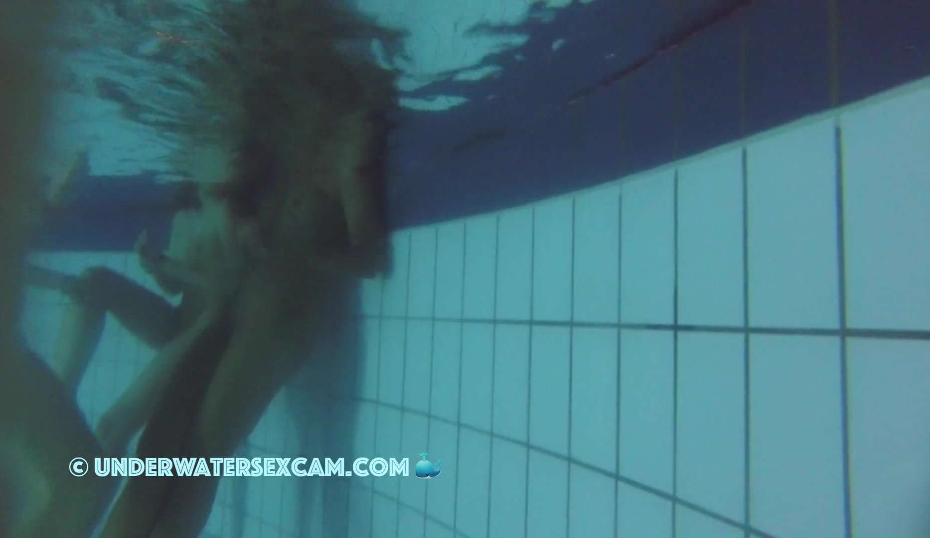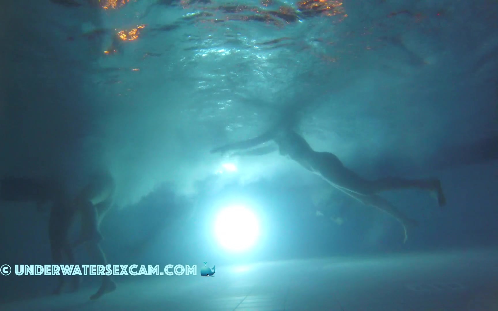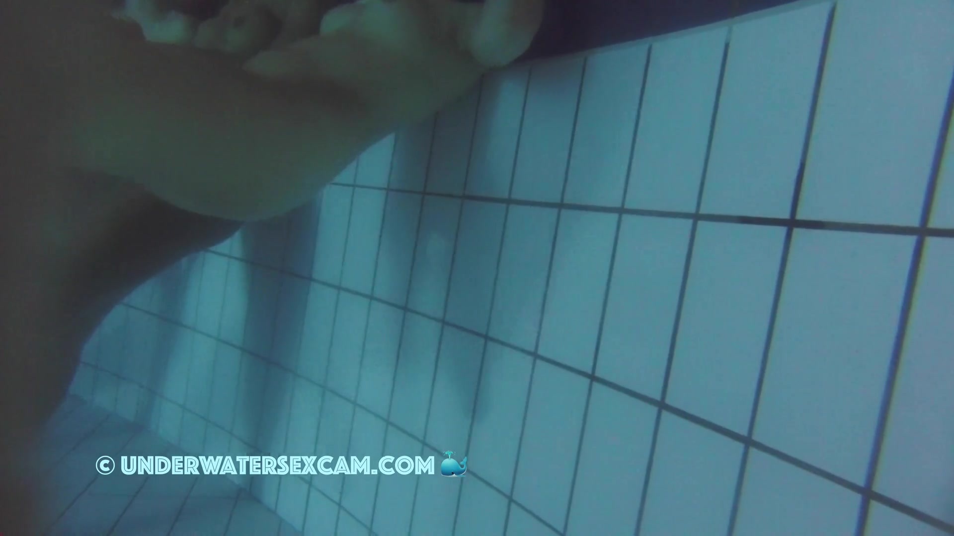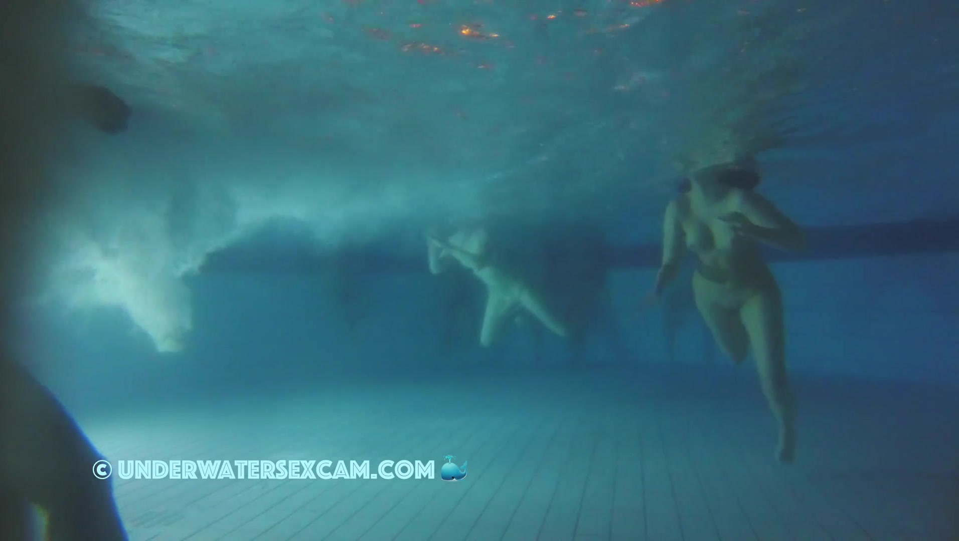 Hot black teen girl with very well shaved girlfriends in a public pool at night and the voyeur is filming with his hidden underwater camera.