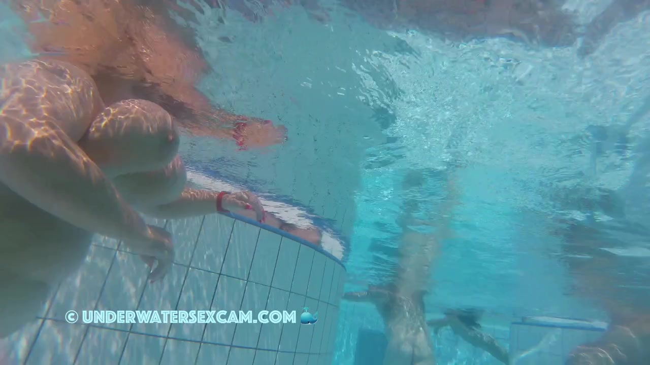 These huge tits are scaring me underwater in a public pool while the voyeur's hidden camera is taping her.