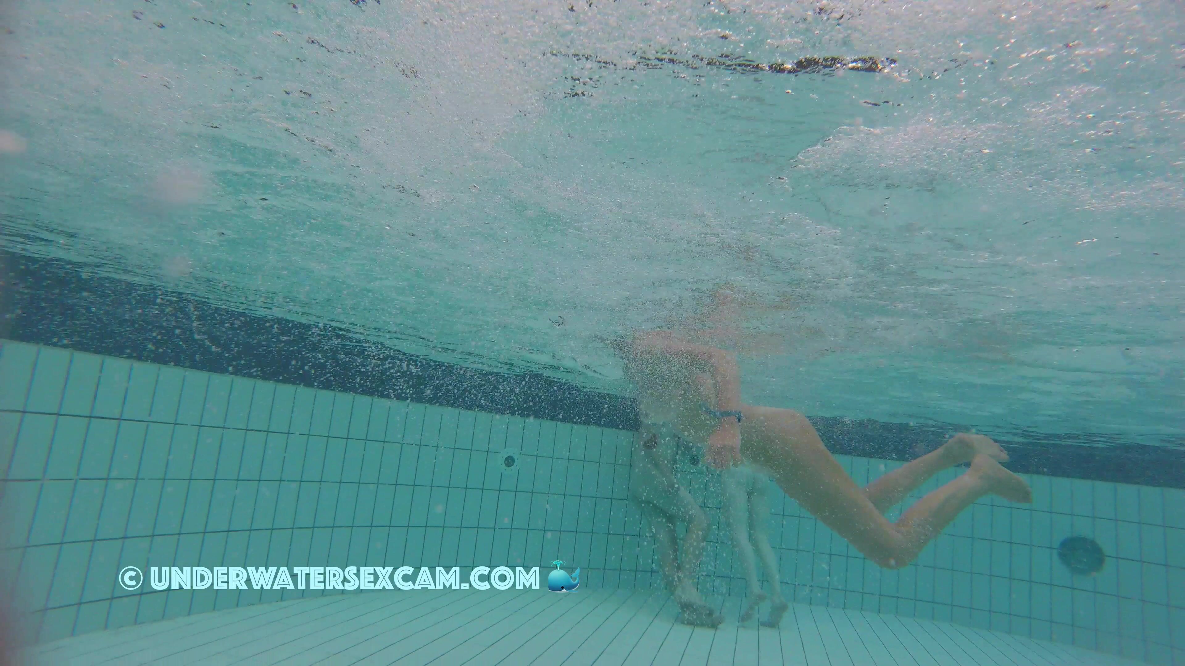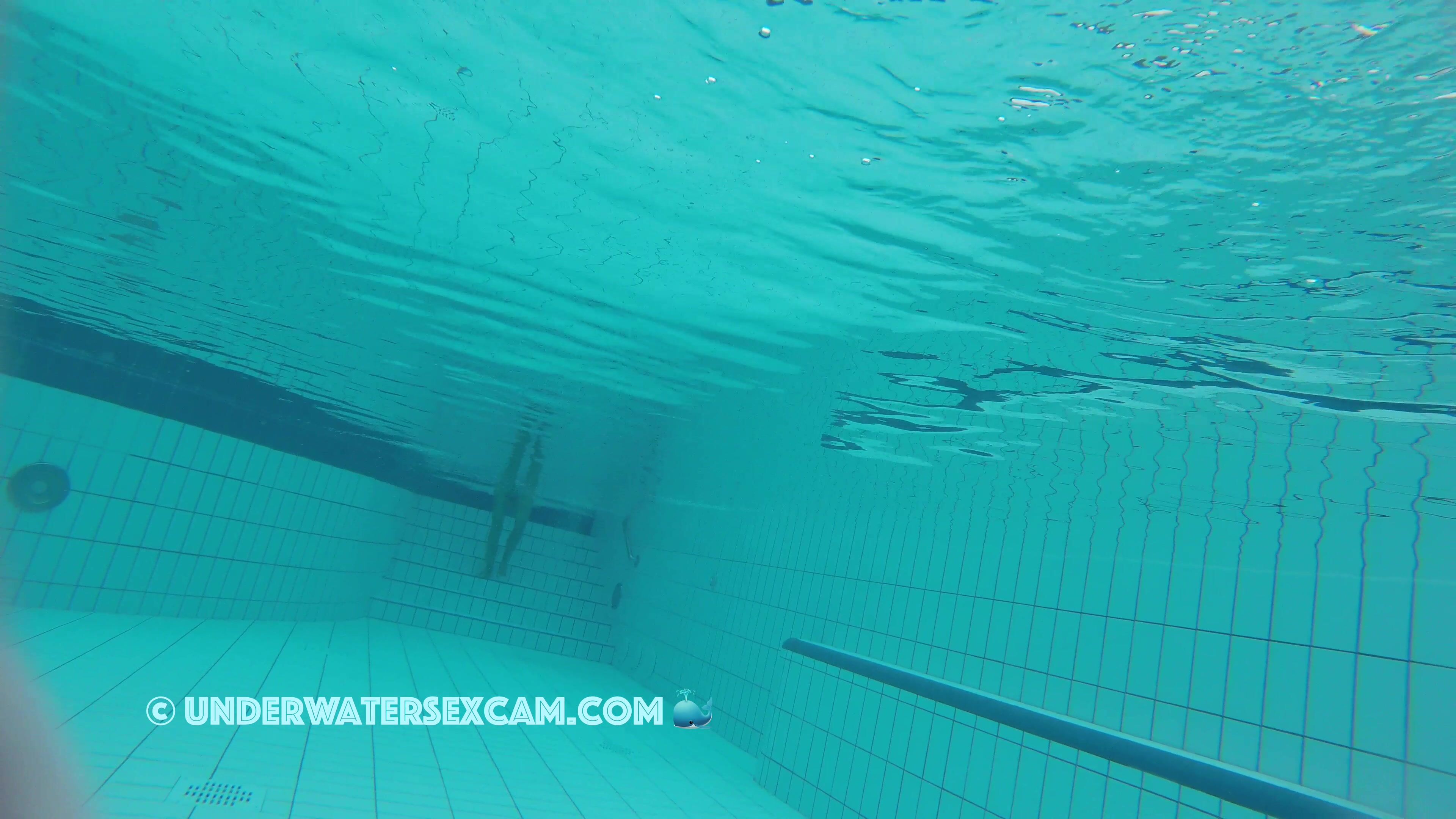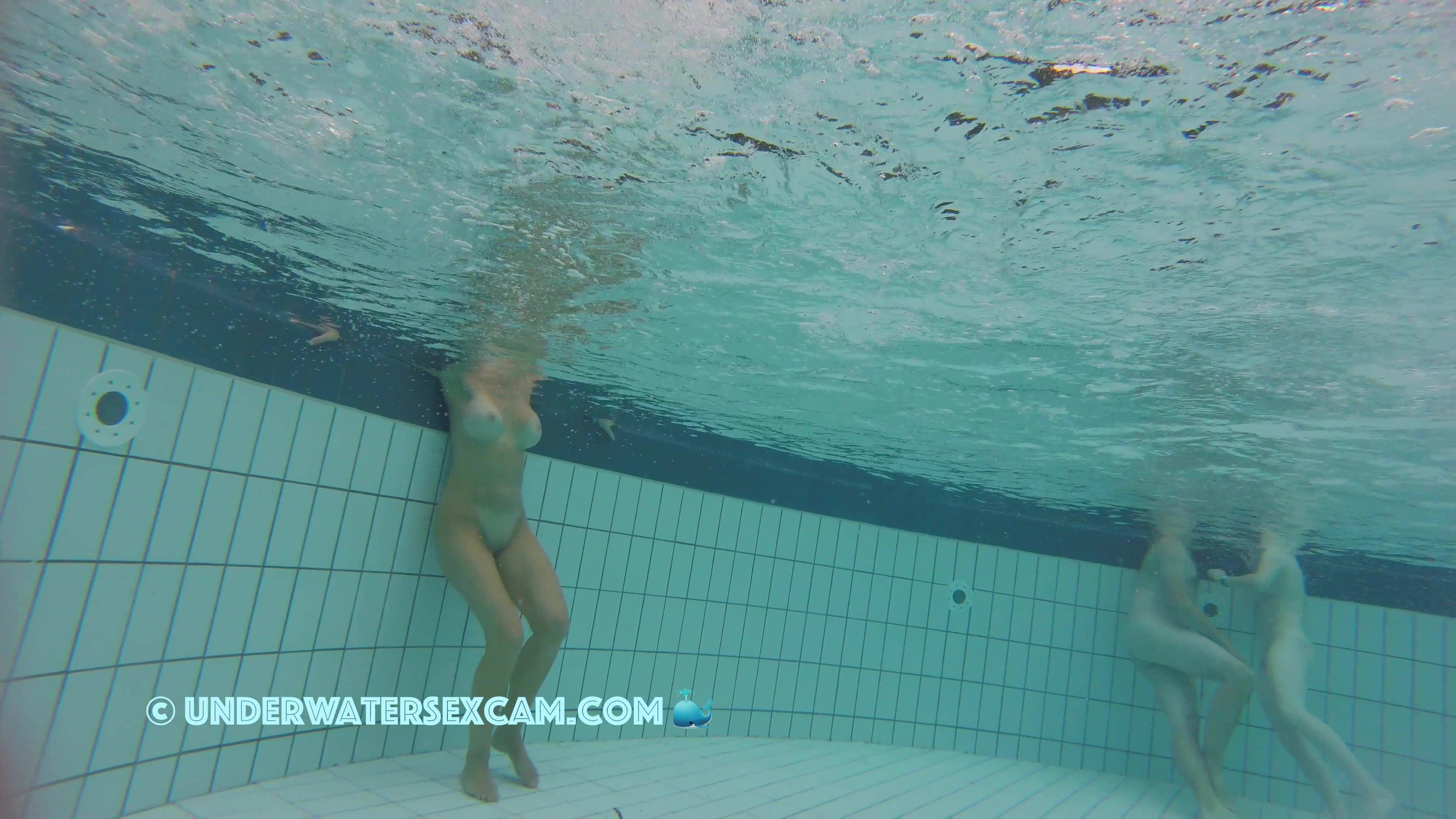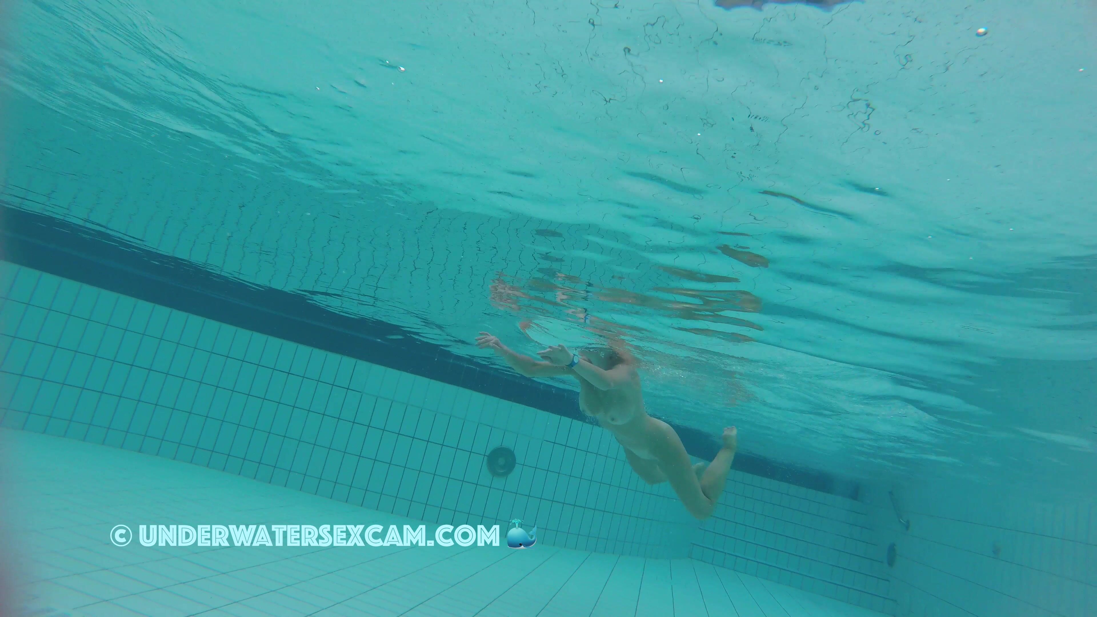 A very beautiful naked woman swims through my lagoon while the hidden underwater camera is following her.