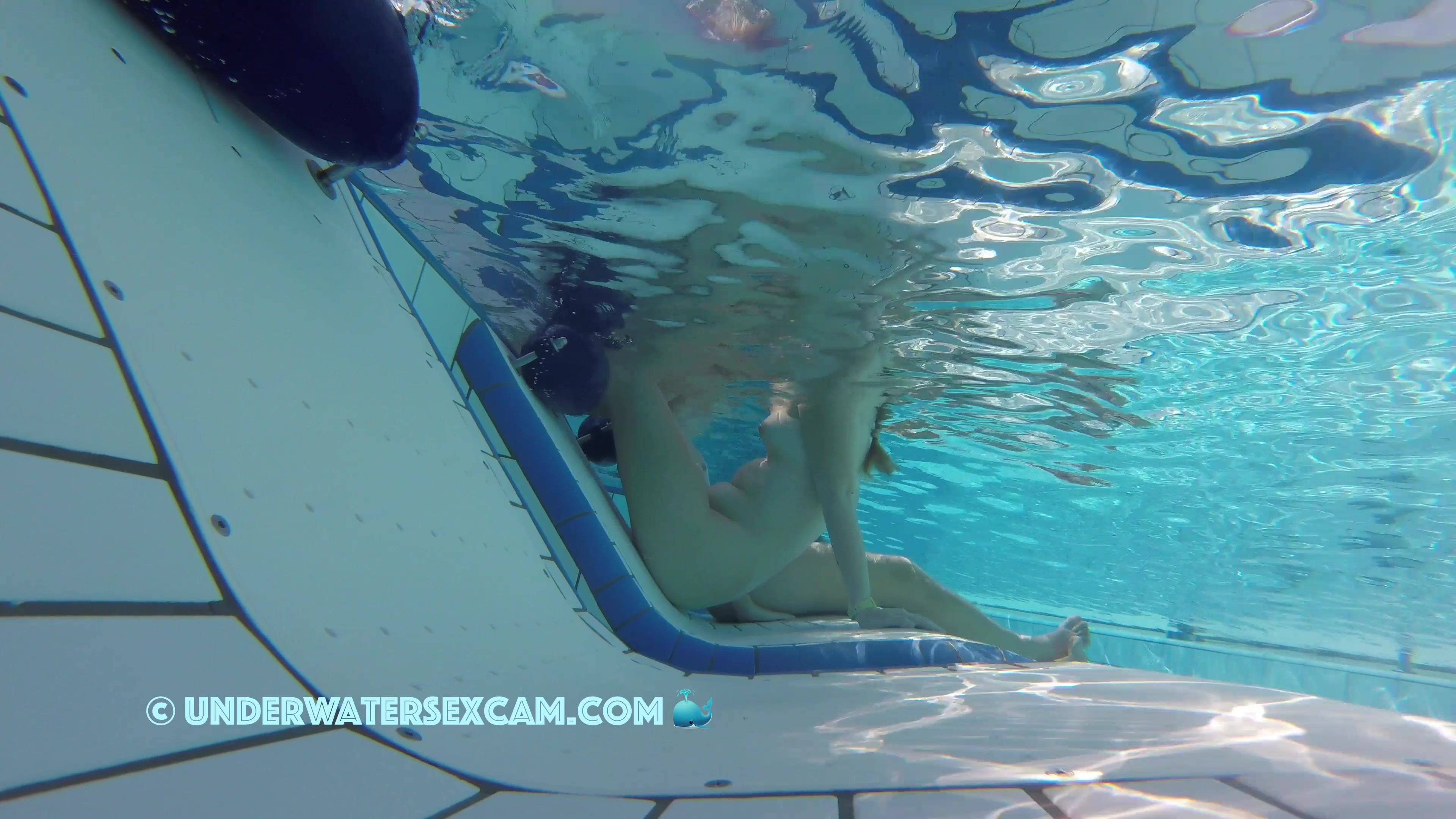 This girl loves to sit everywhere underwater in a public pool while the voyeur is shooting her with his hidden spy camera.