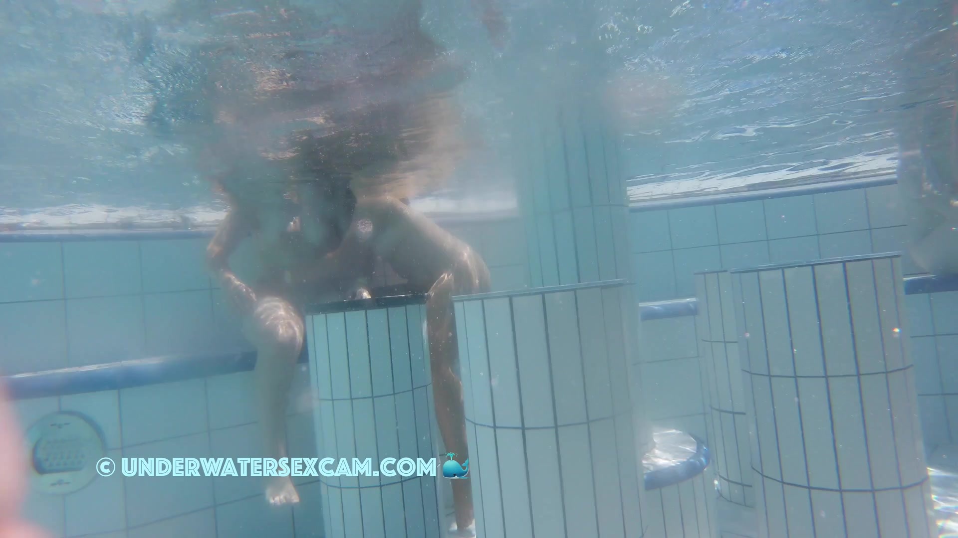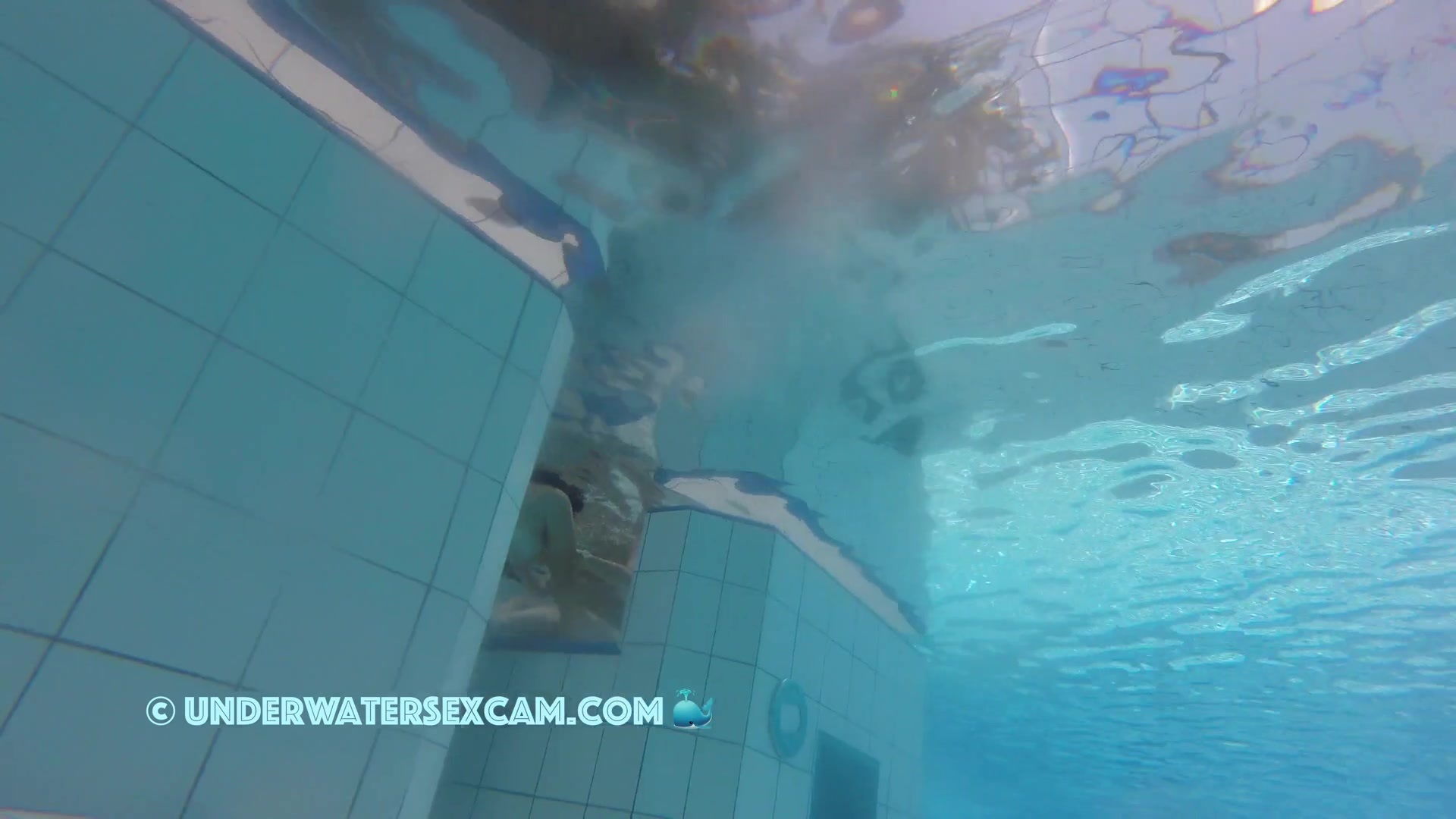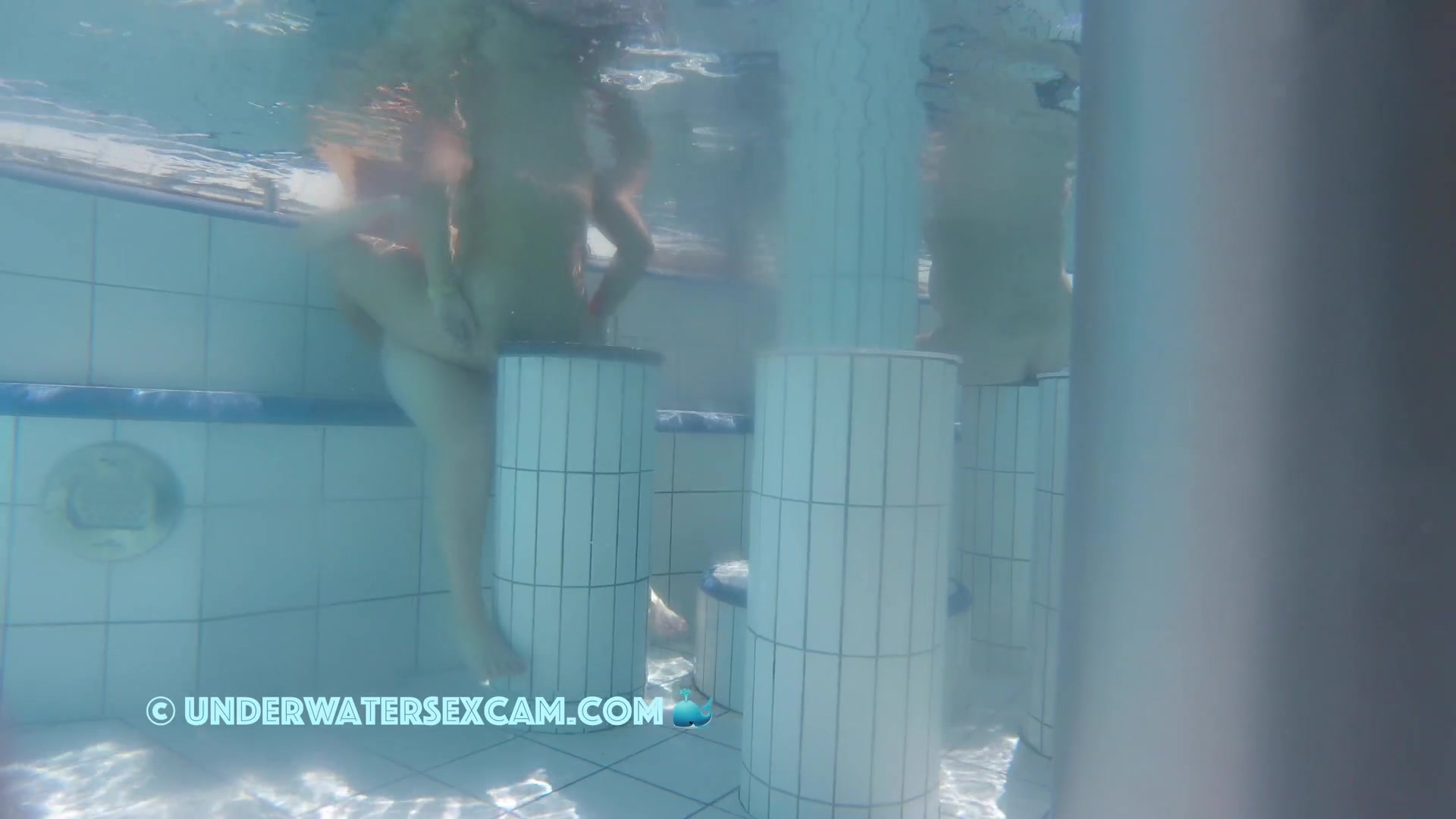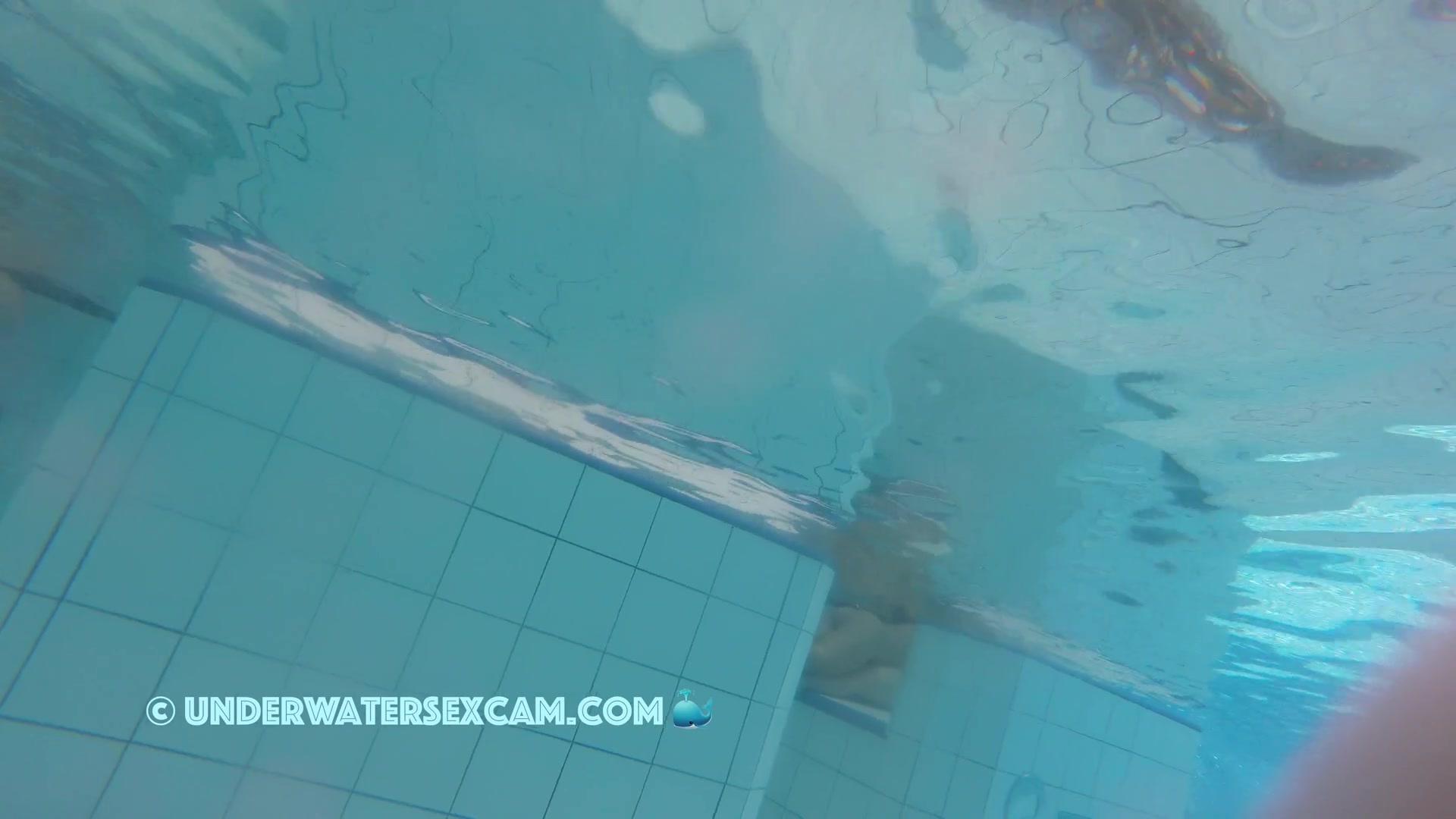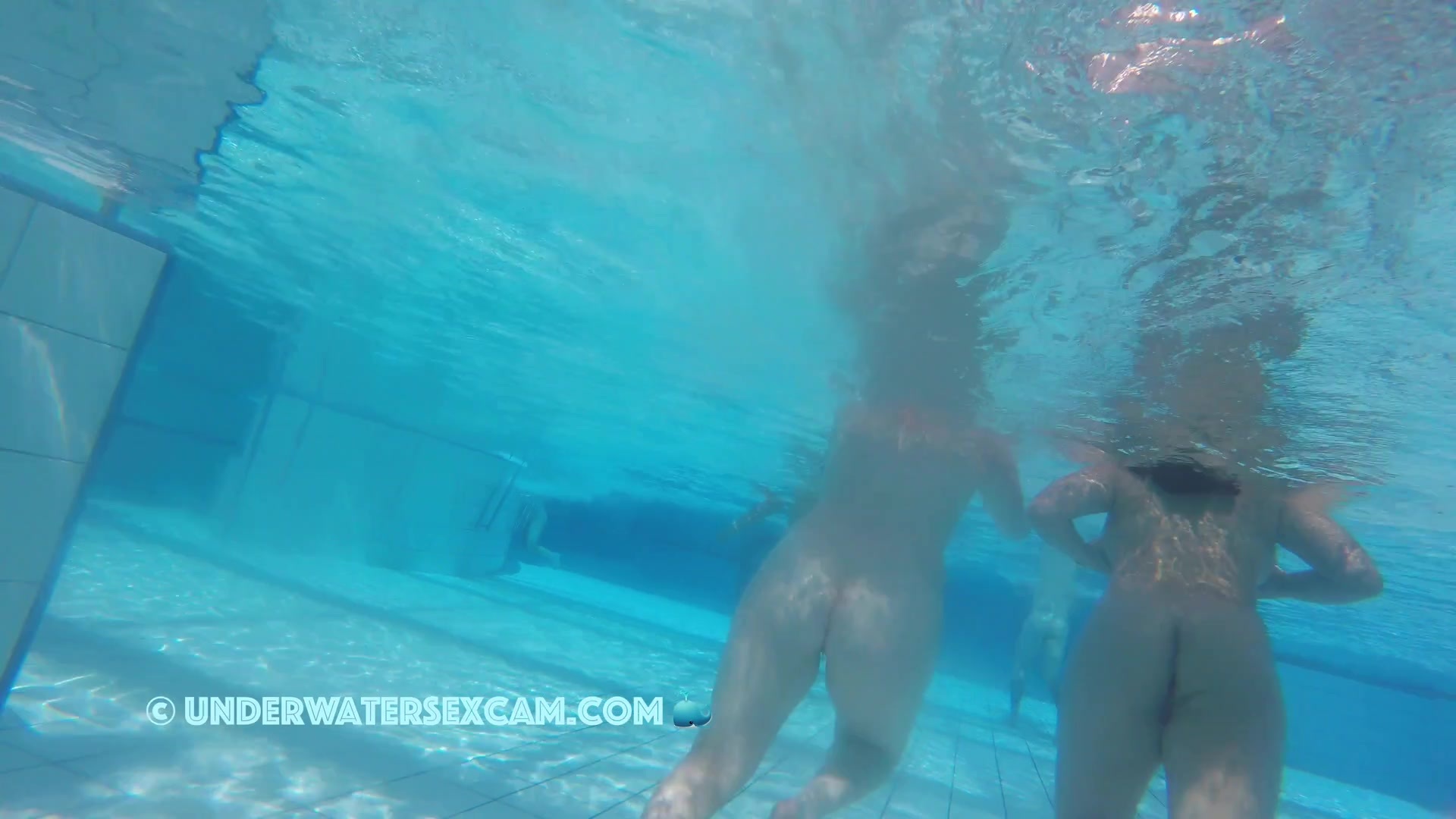 Cute lesbian teen couple shows their love underwater in a public pool while the voyeur is filming them with his hidden spy camera.