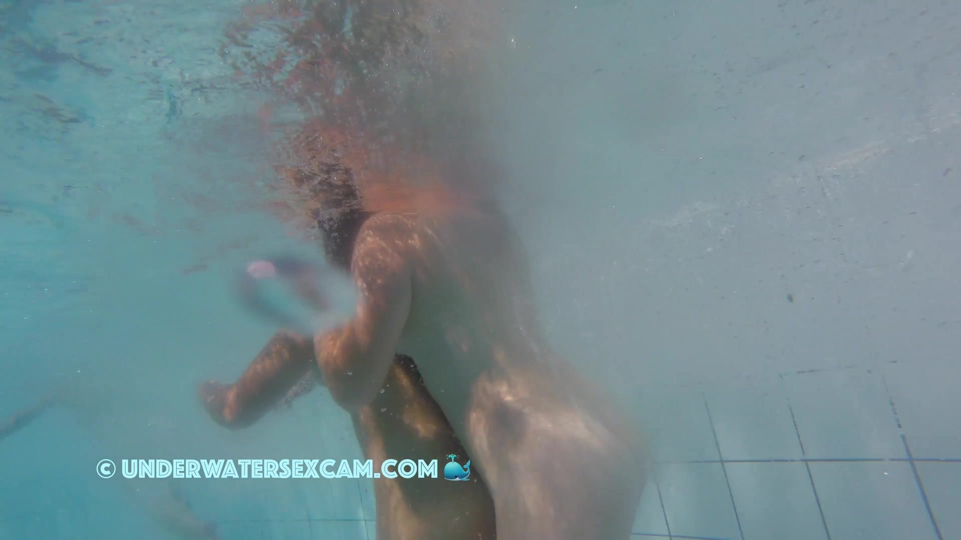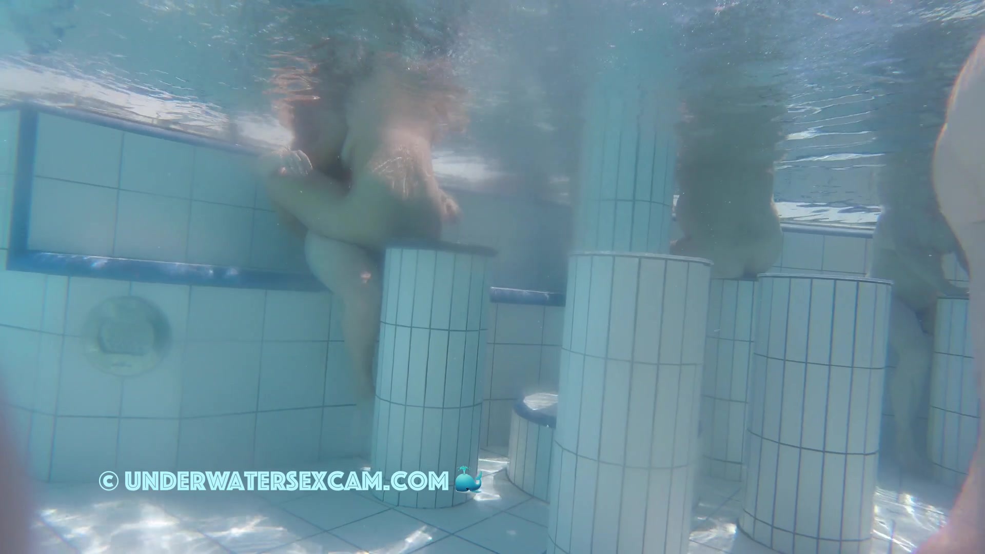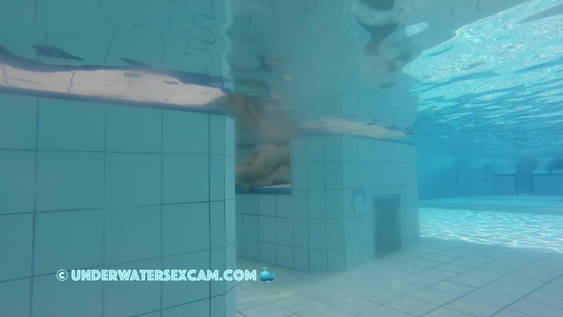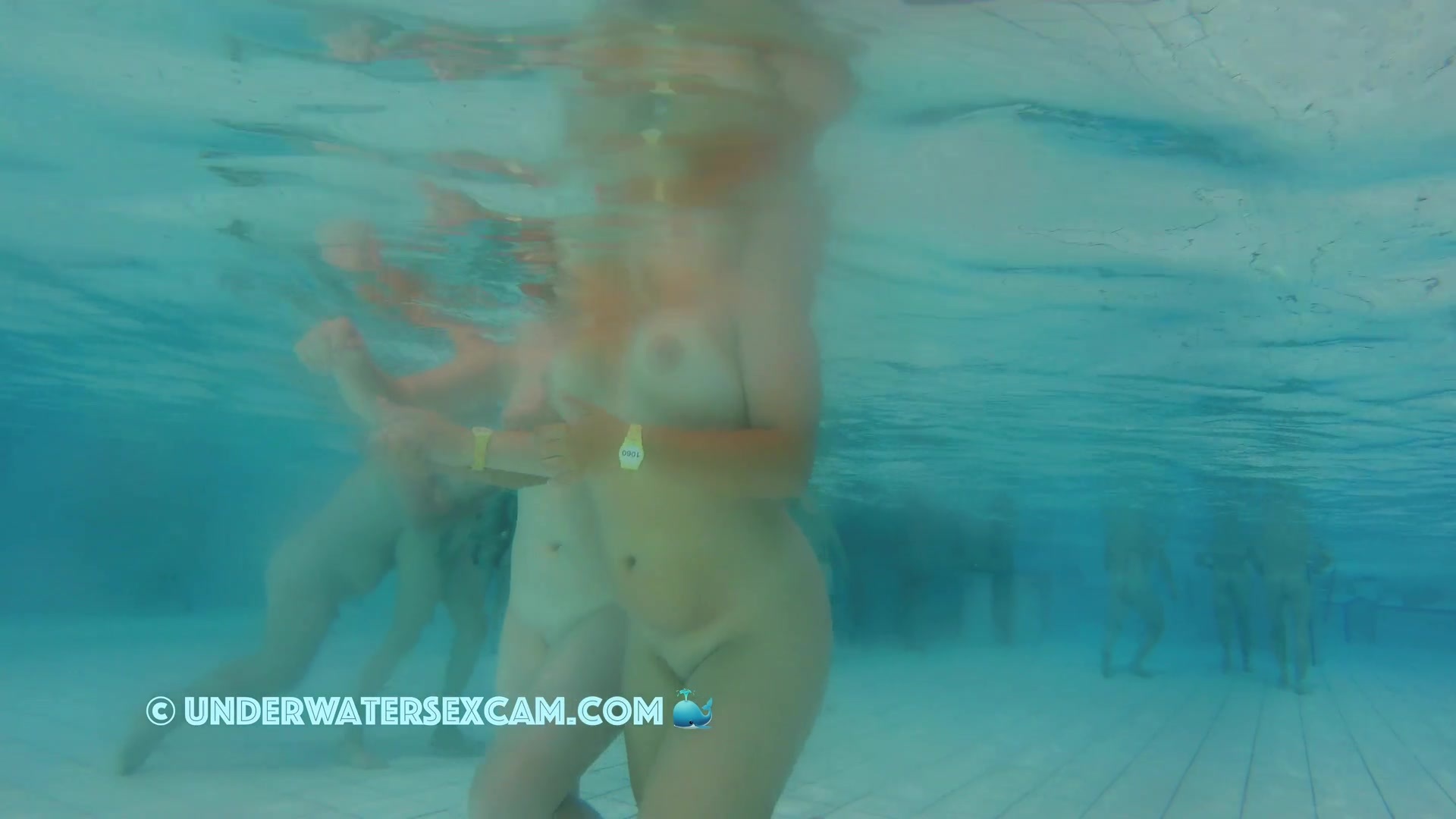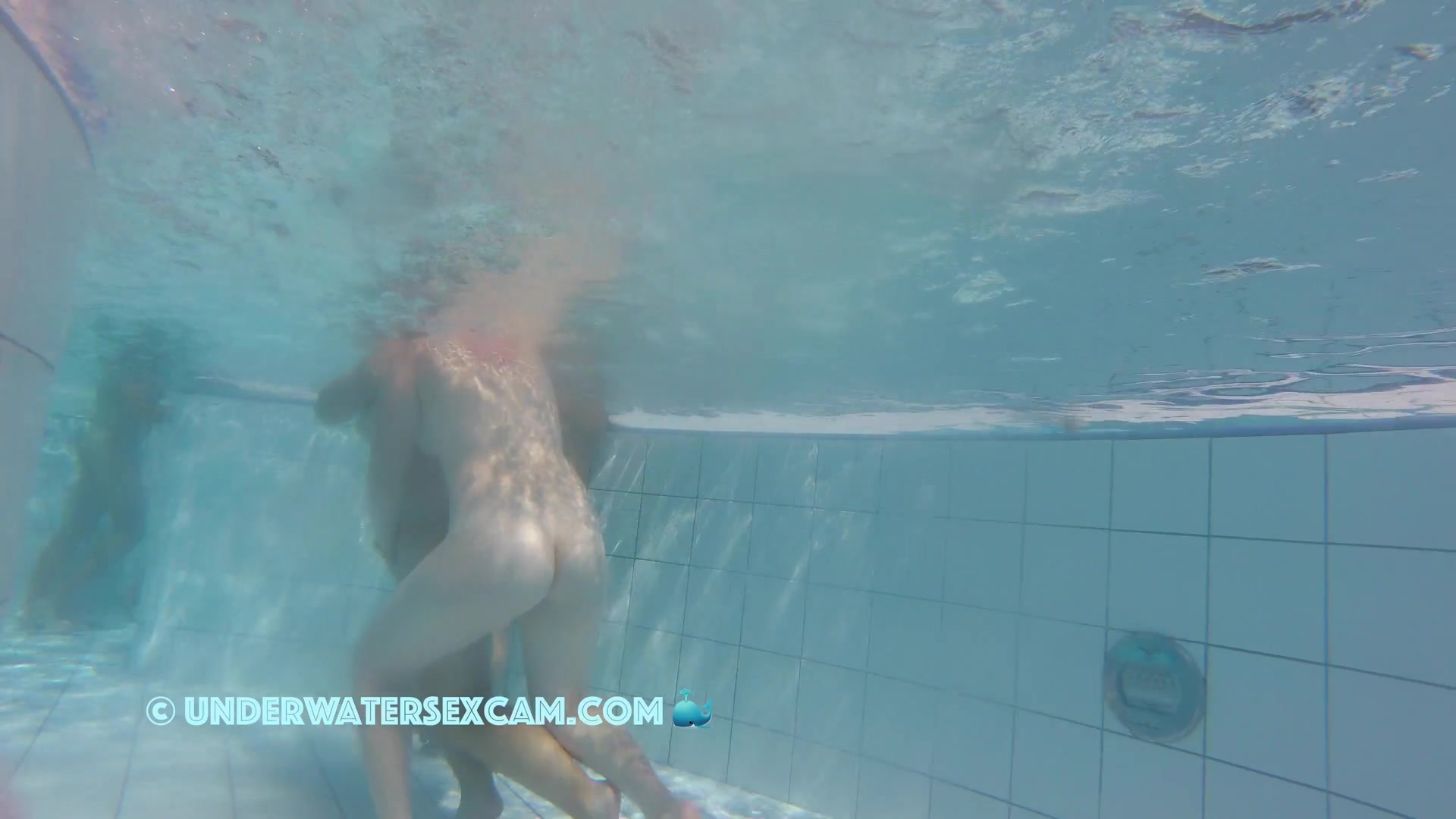 Cute lesbian teen couple shows their love underwater in a public pool while the voyeur is filming them with his hidden spy camera.