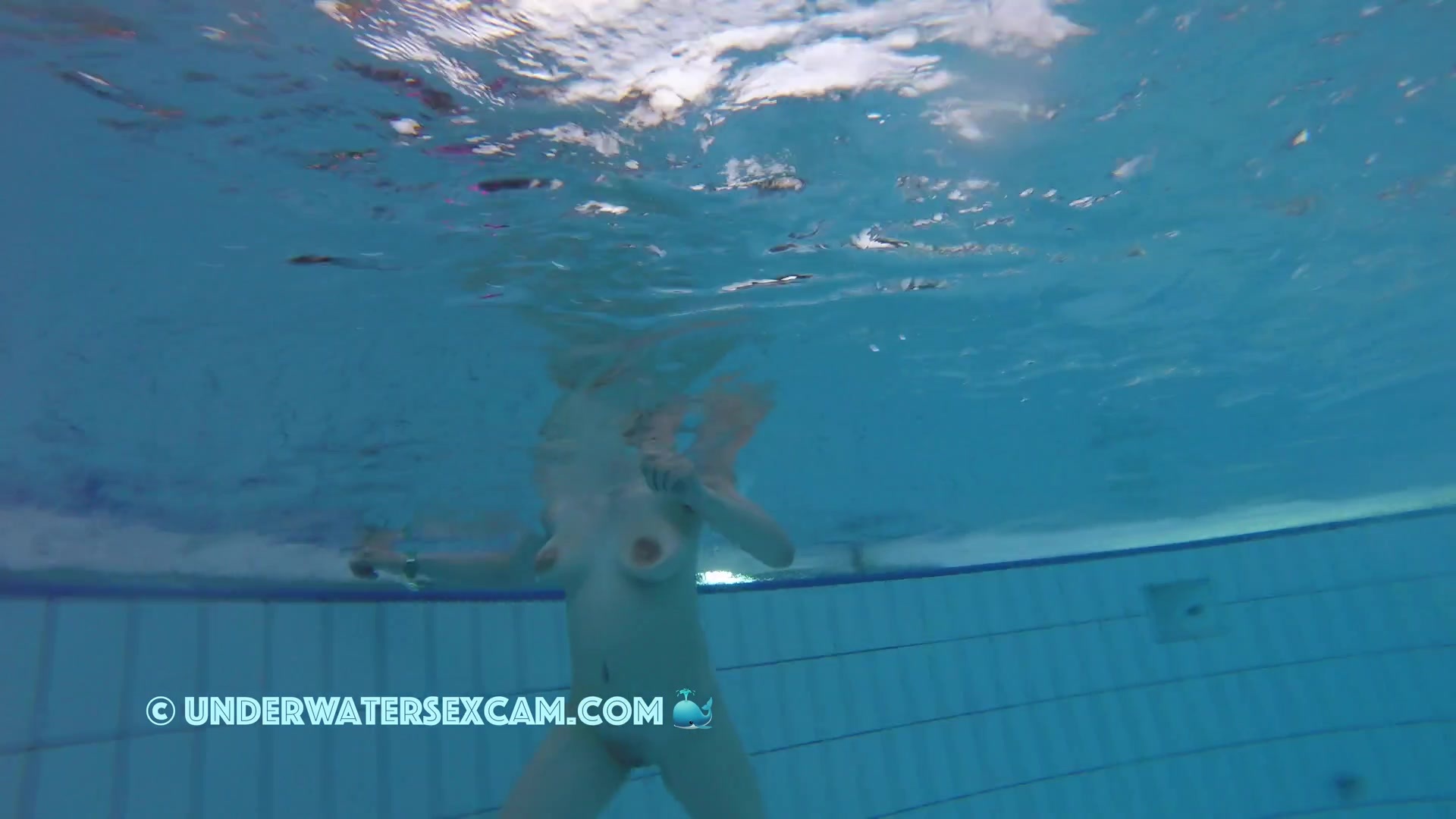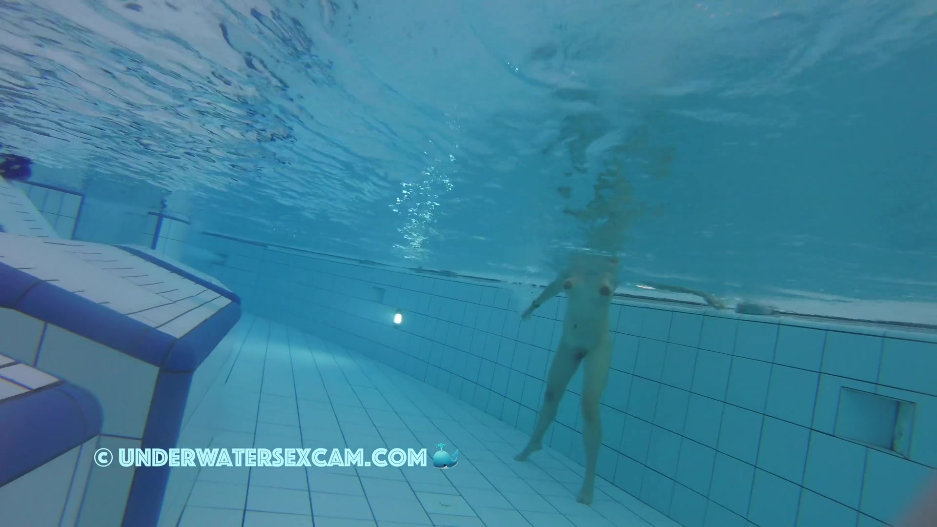 The sucker does not hold her, so she gets lost in a public pool while the hidden security camera is taping her.