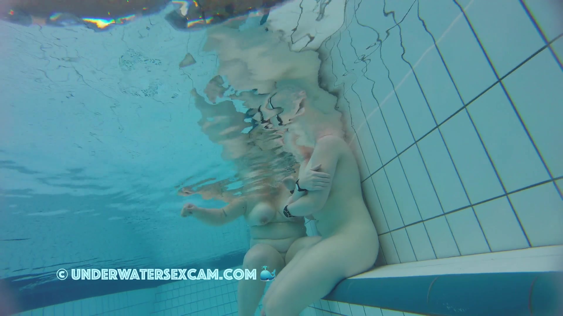 One of them has two nipple piercings and shows them to the voyeur underwater camera in a public pool.