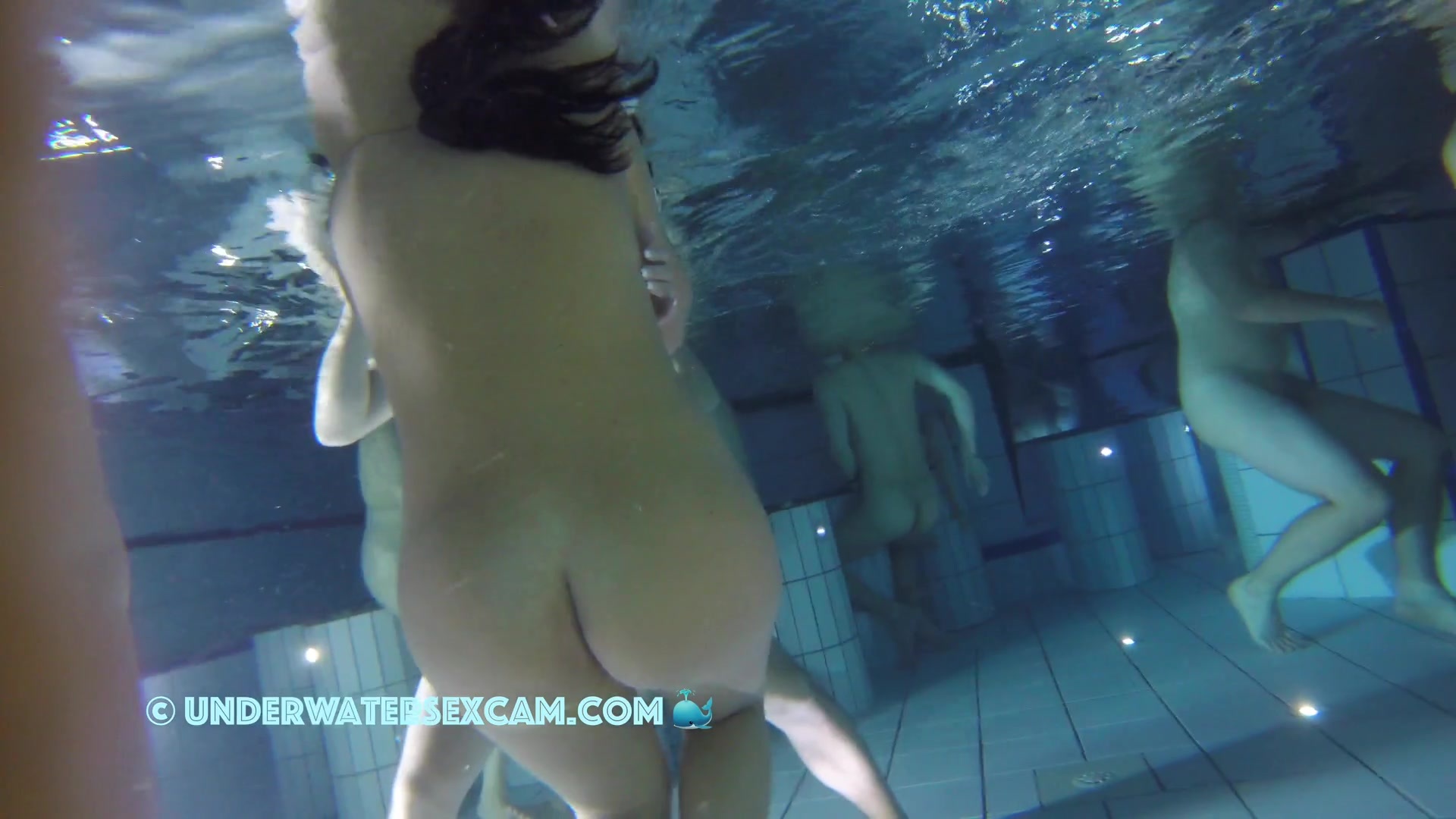 Naked women everywhere and a pervert massaging his dick with the underwater jet stream in a public pool while the hidden spy cam is running.