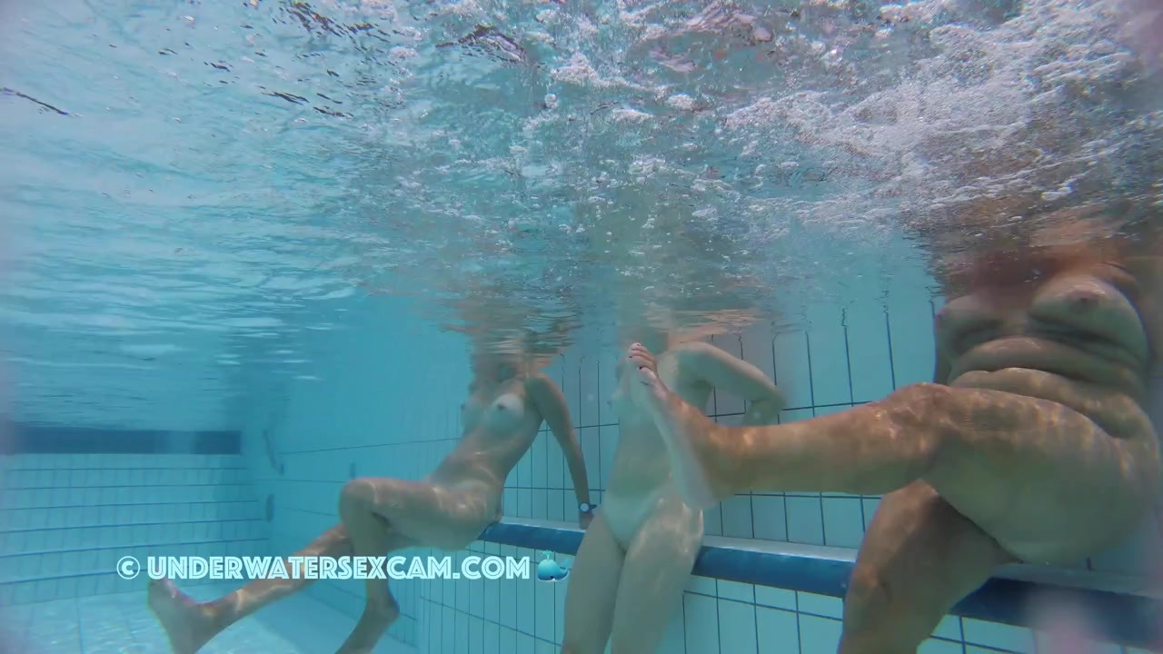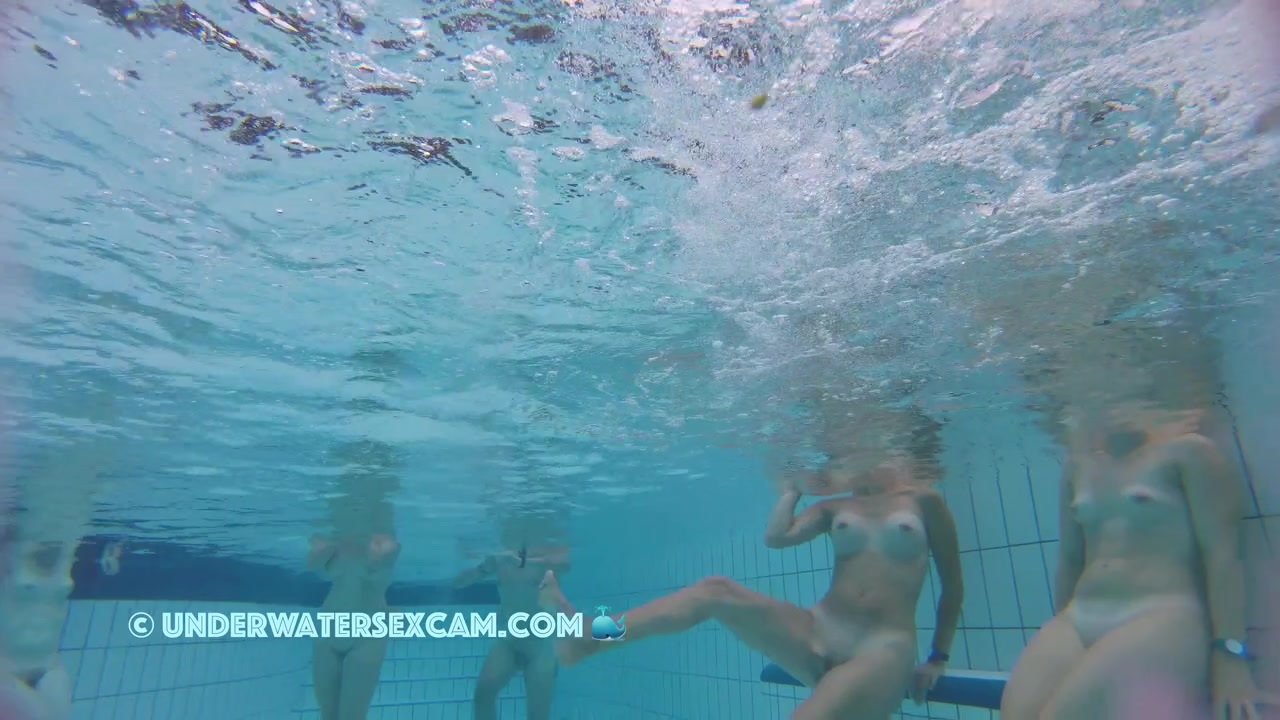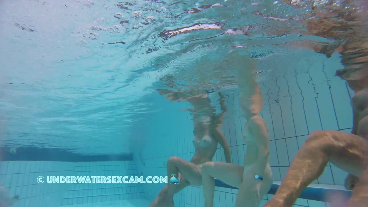 Two nice teens with sweet tits like to be naked underwater in a public pool while the hidden security cam is running.