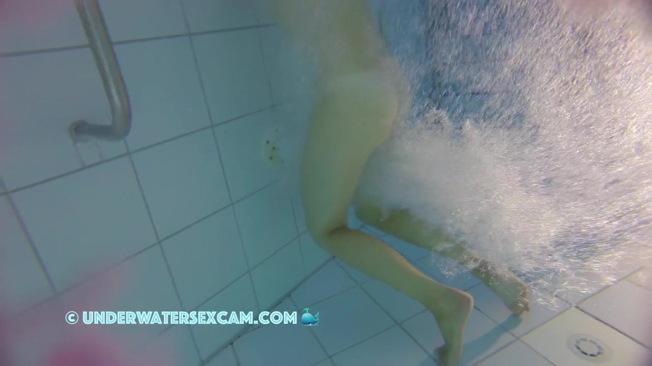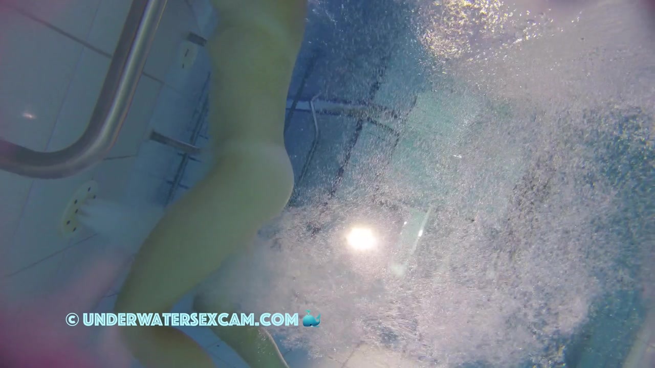 This hot teen girl starts masturbating next to me in a public pool but my hidden underwater camera was working.