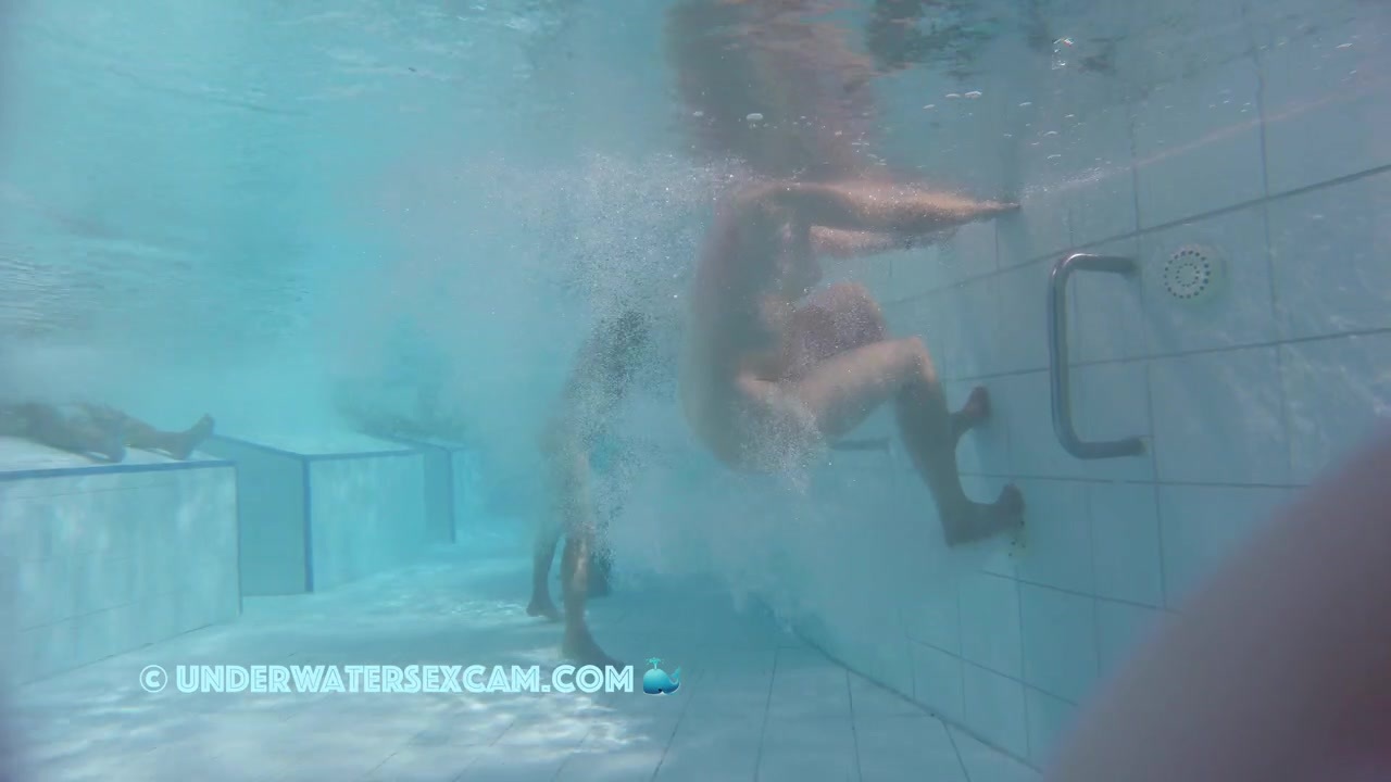 This lady produces a lot of underwater bubbles in a public pool while the hidden voyeur cam is running.