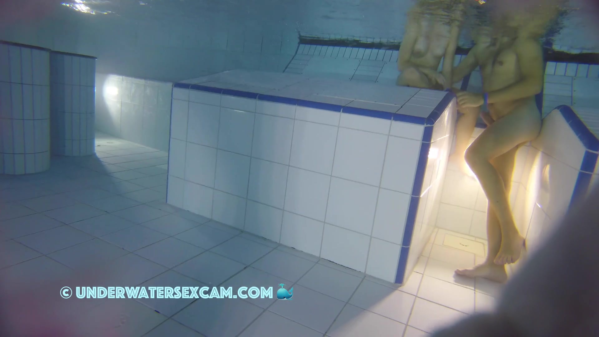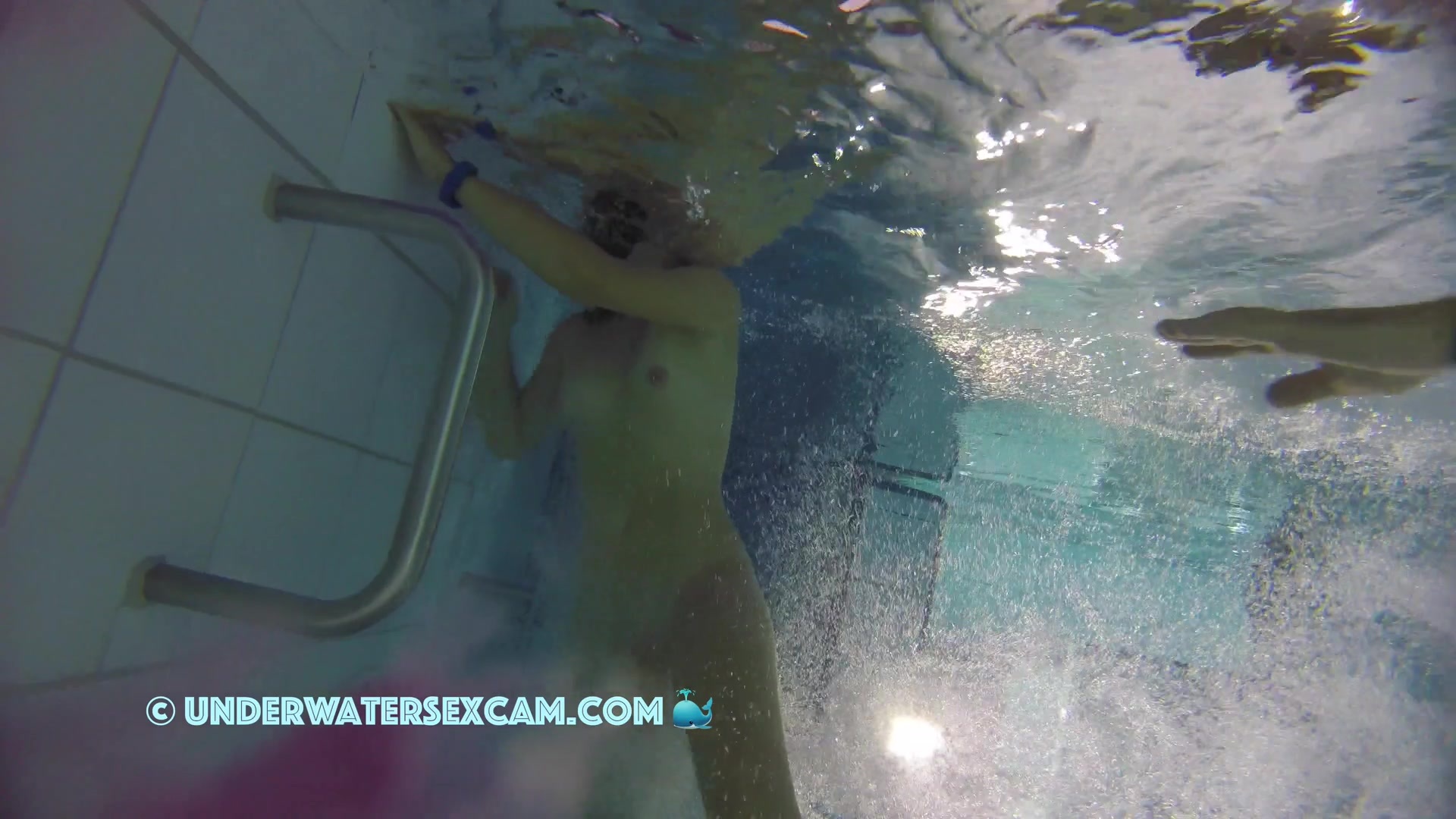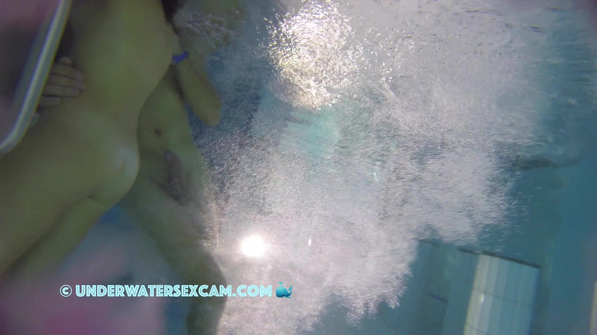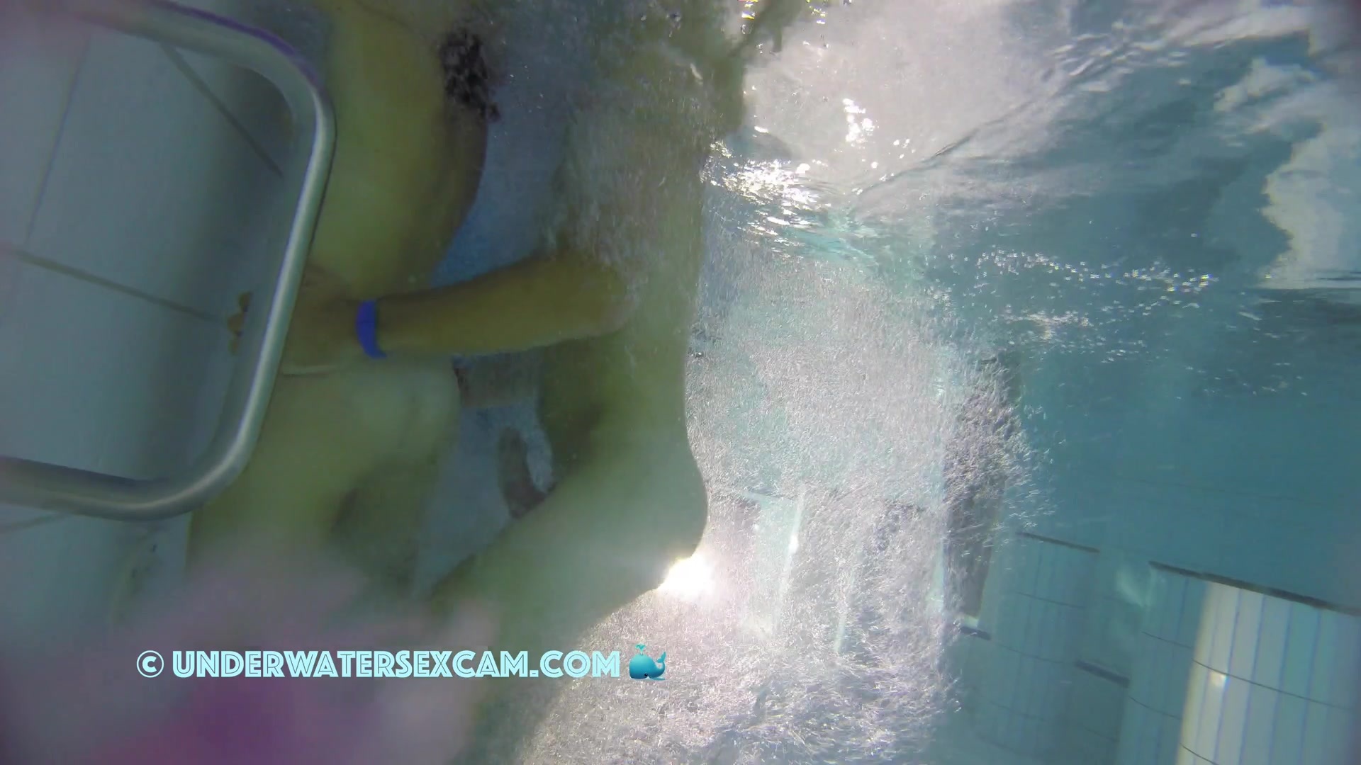 Kinky teen girl masturbates and wants his big dick underwater in a public pool while the voyeur is filming them with his hidden spy camera.