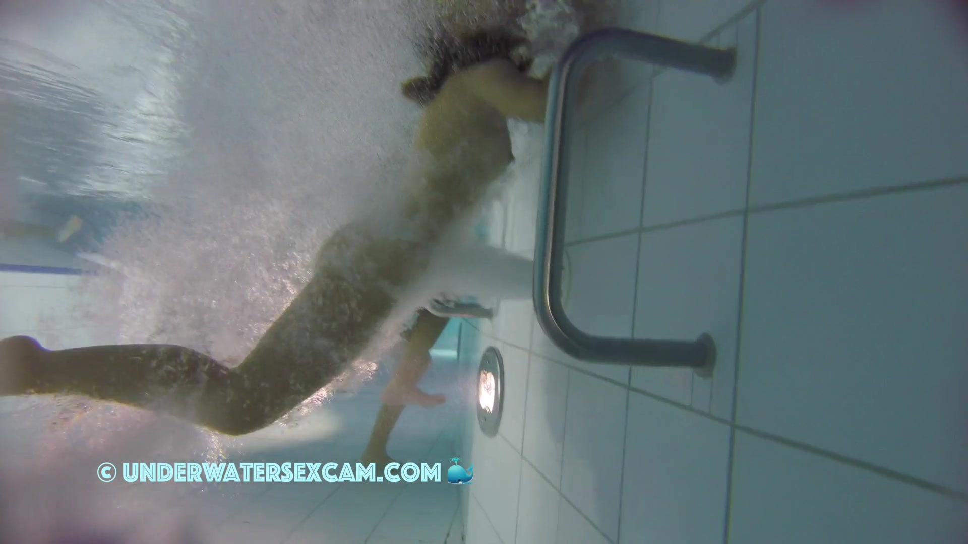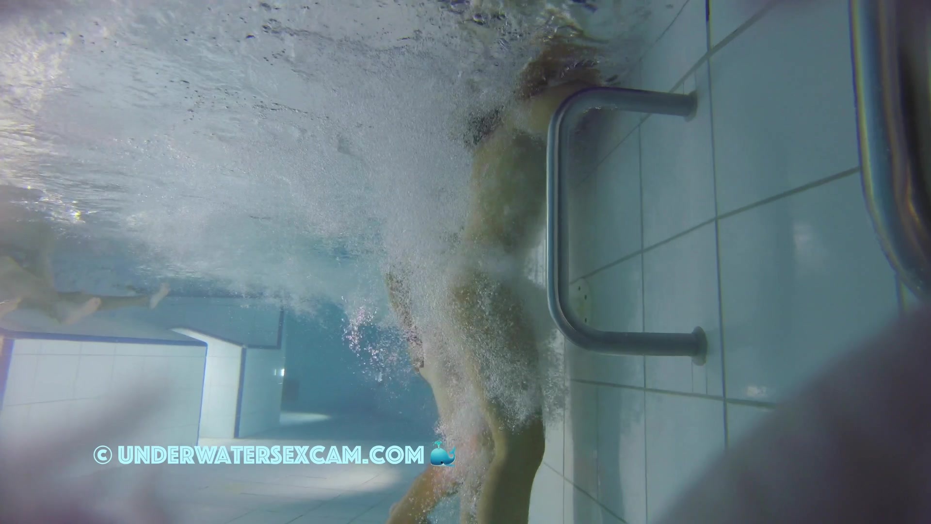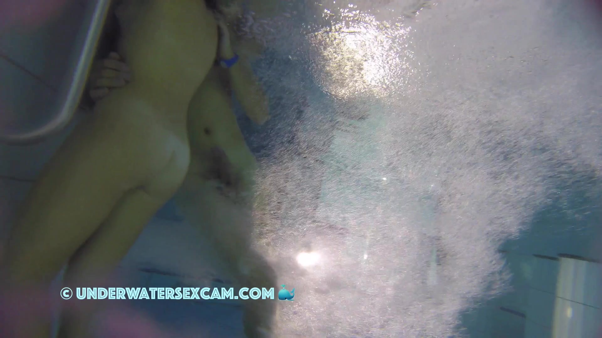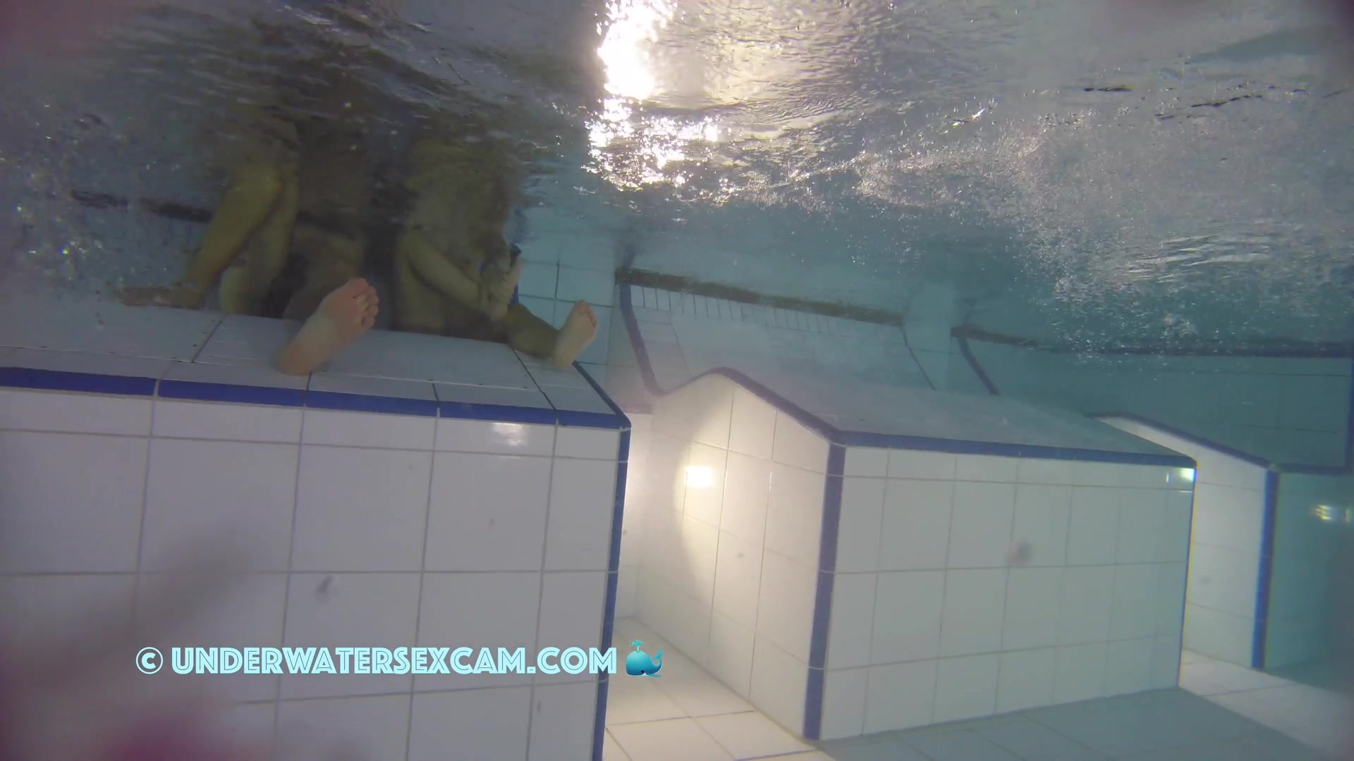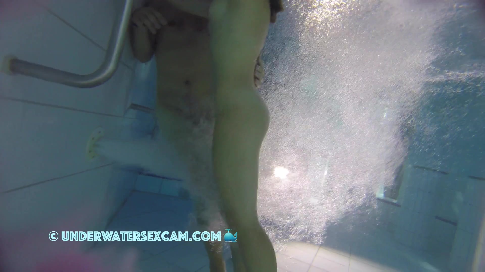Kinky teen girl masturbates and wants his big dick underwater in a public pool while the voyeur is filming them with his hidden spy camera.