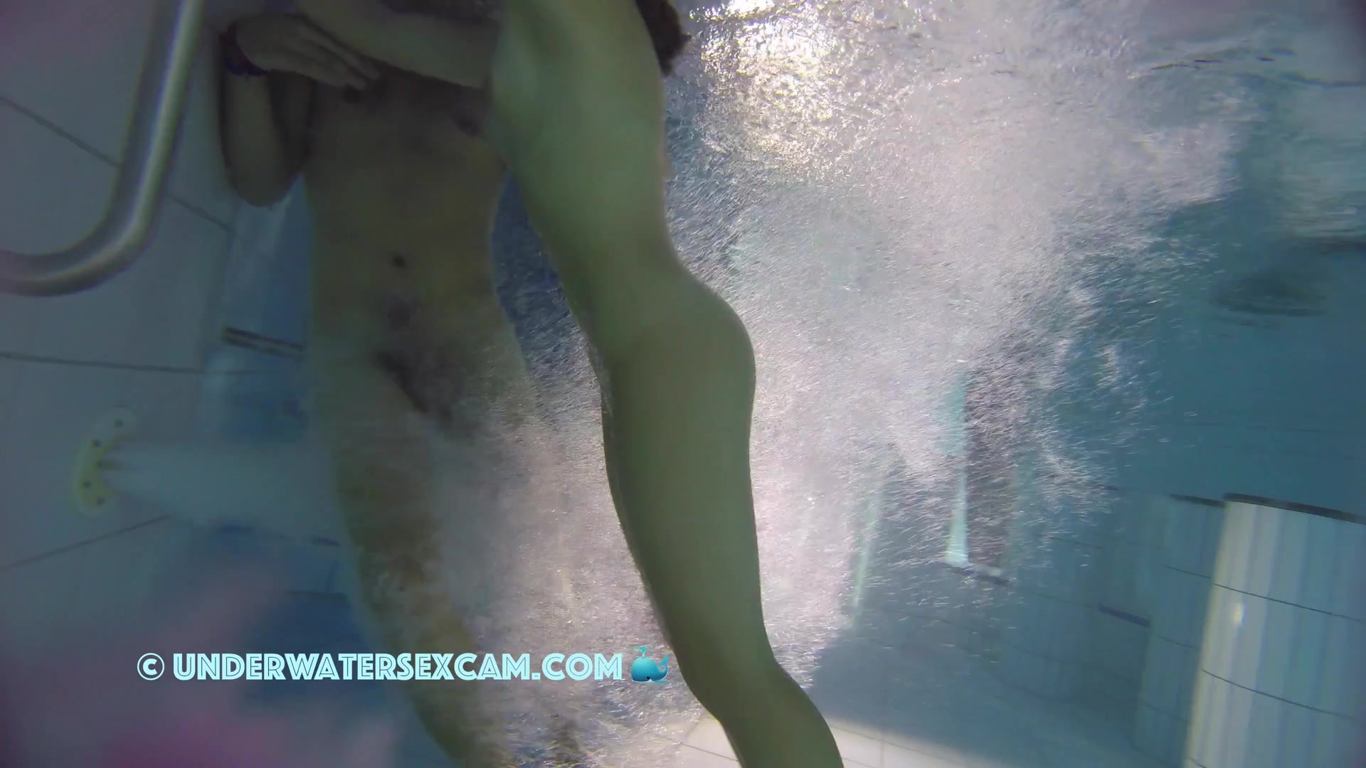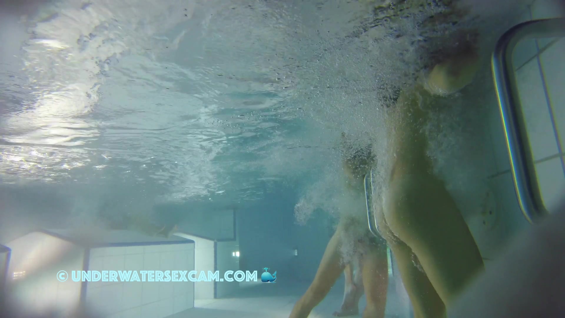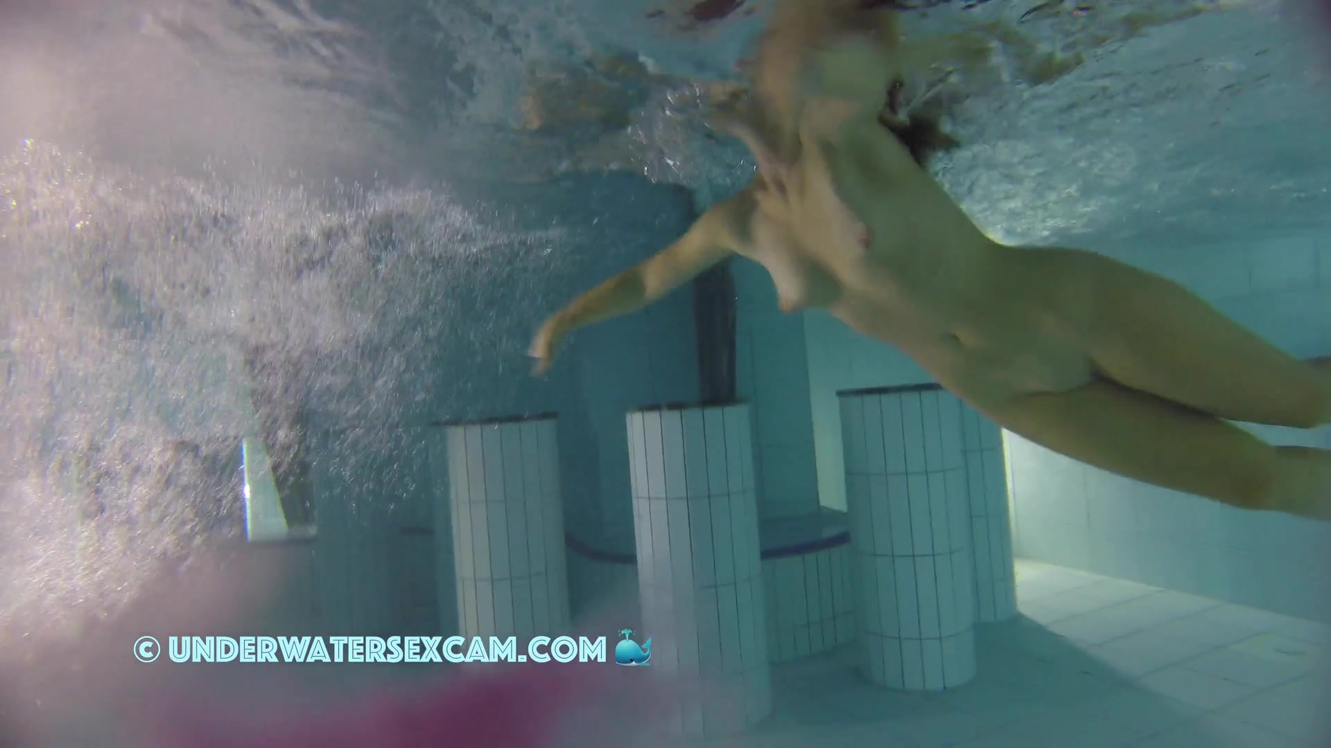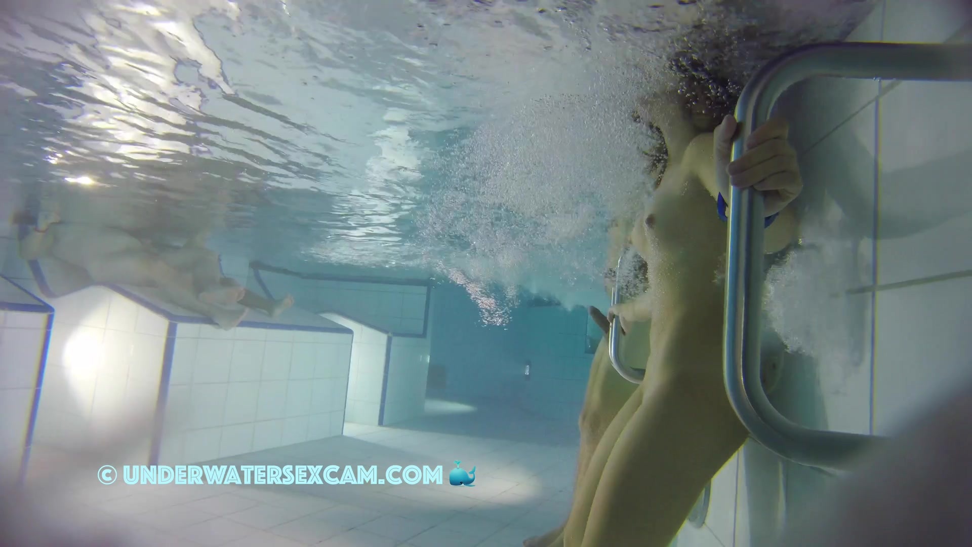 Kinky teen girl masturbates and wants his big dick underwater in a public pool while the voyeur is filming them with his hidden spy camera.