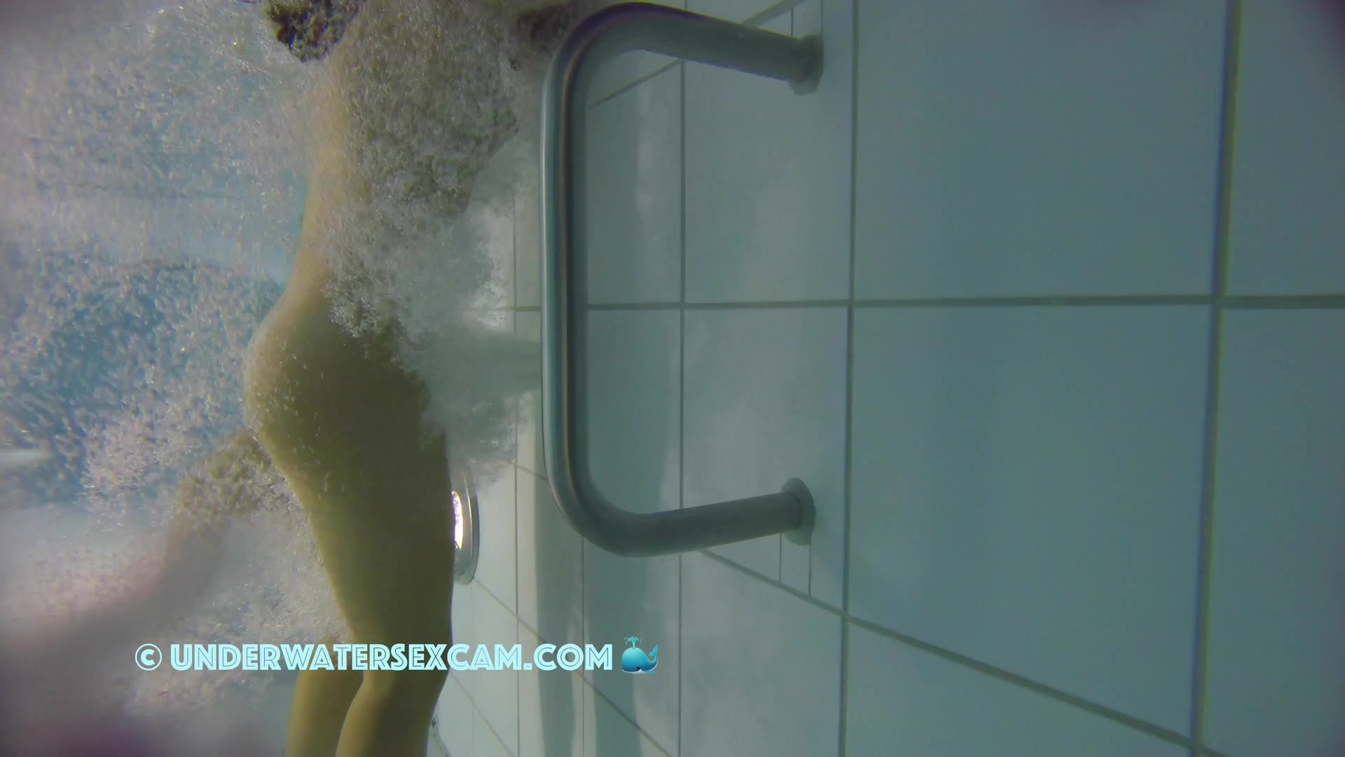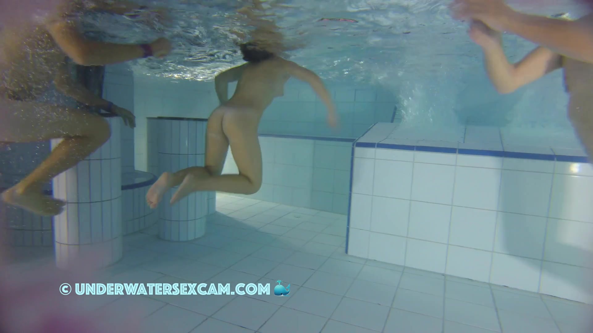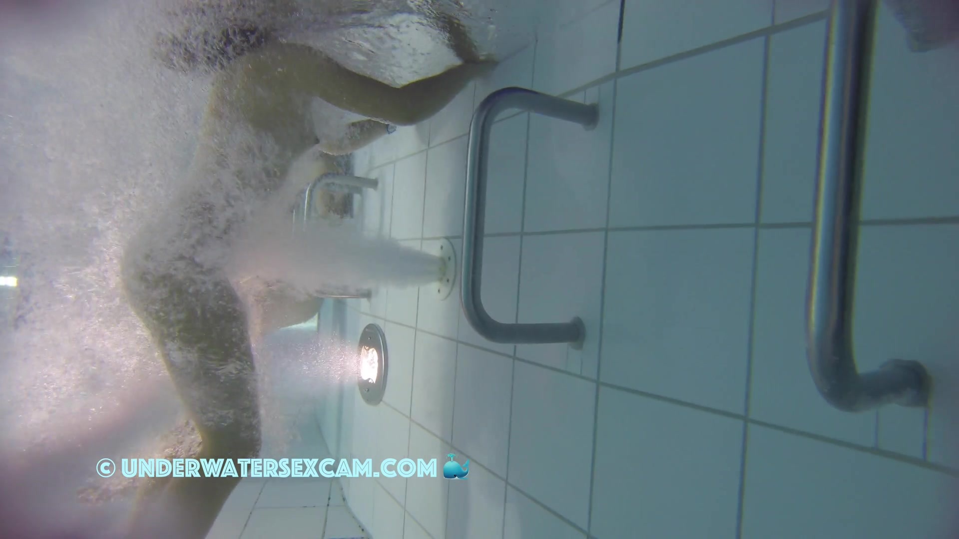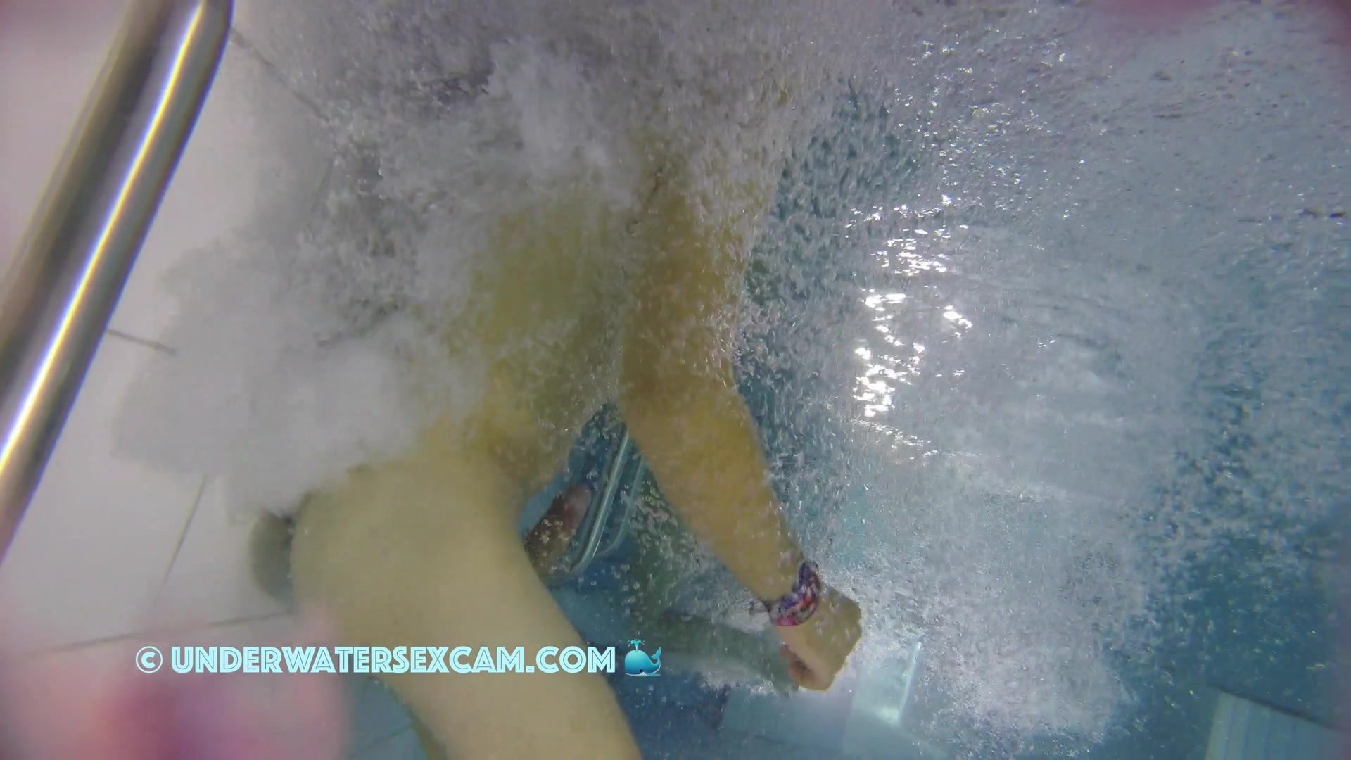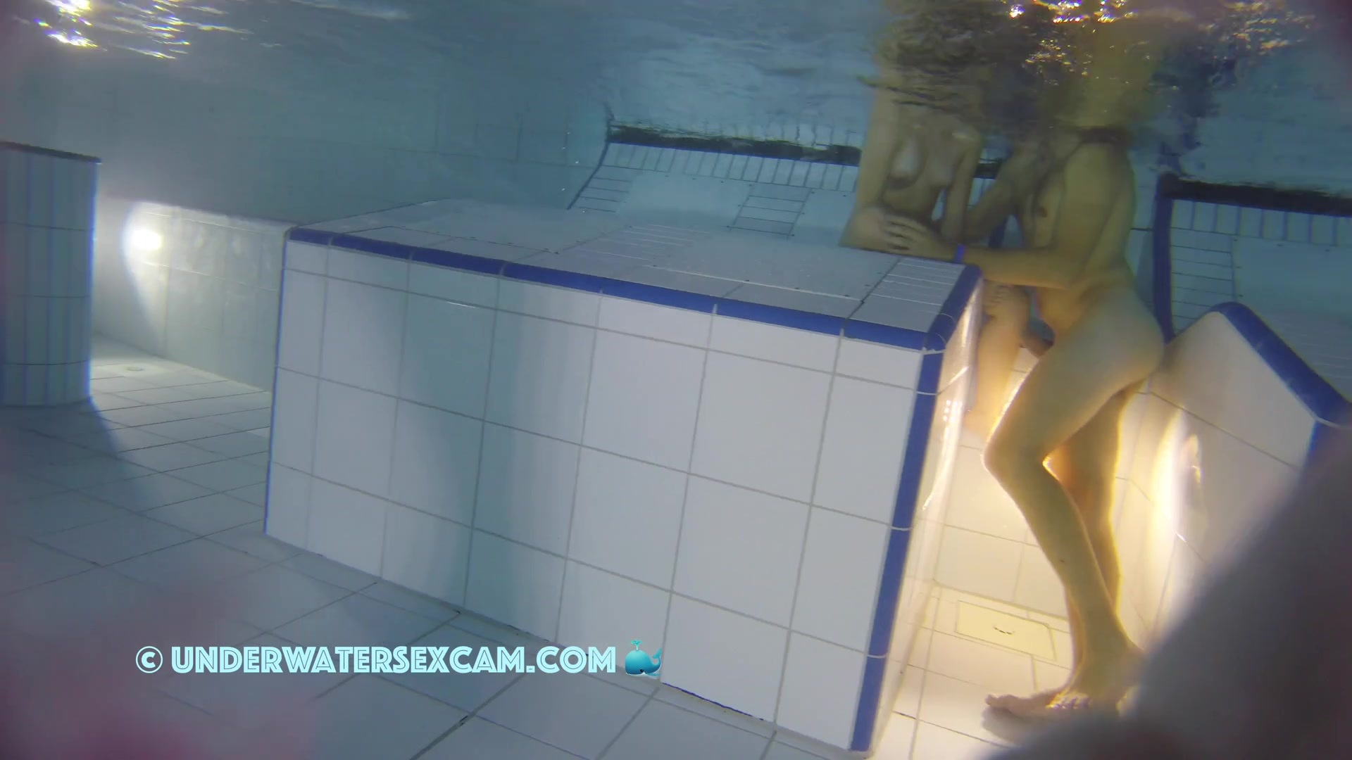 Kinky teen girl masturbates and wants his big dick underwater in a public pool while the voyeur is filming them with his hidden spy camera.