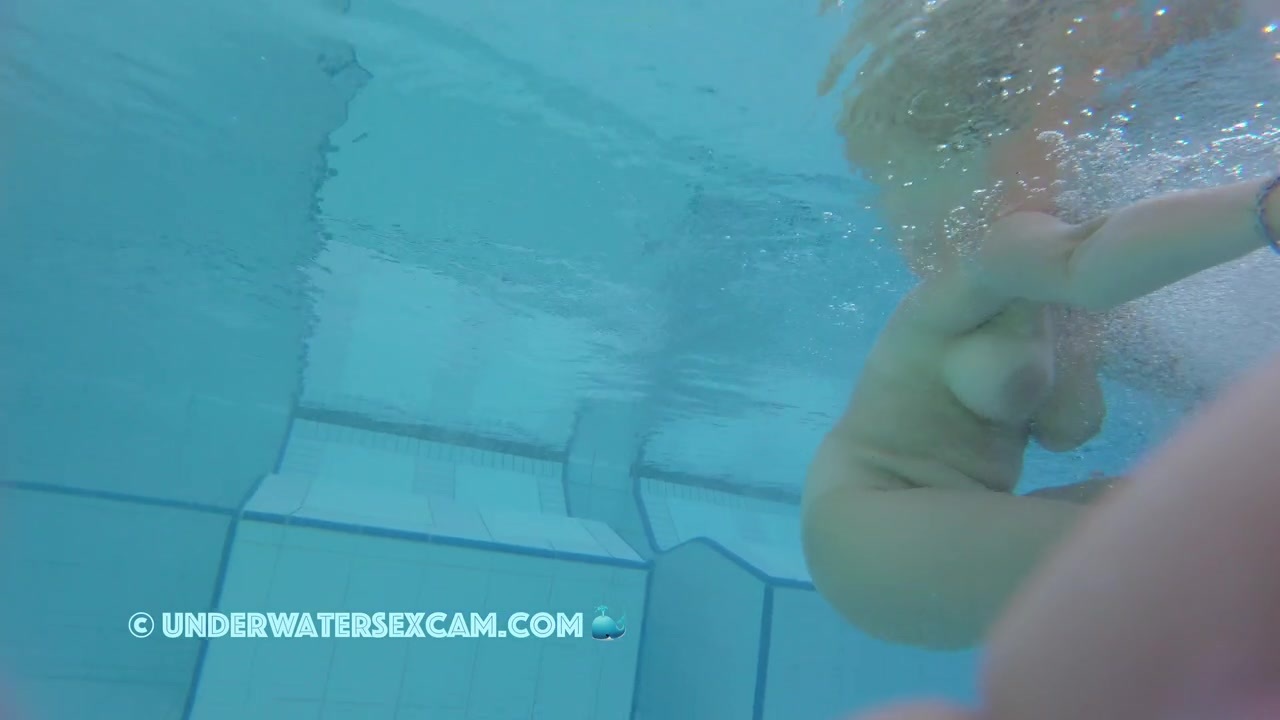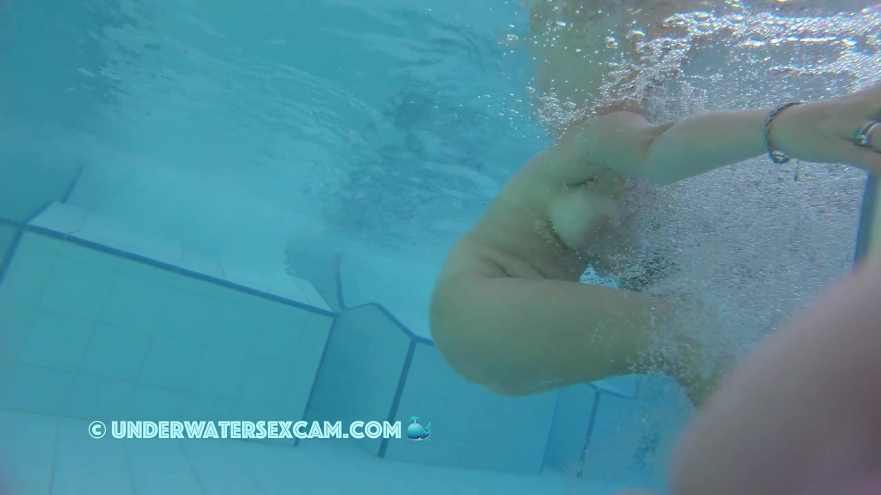 Milf with nice big boobs gets an underwater massage in a public pool while the voyeur's cam is taping her.