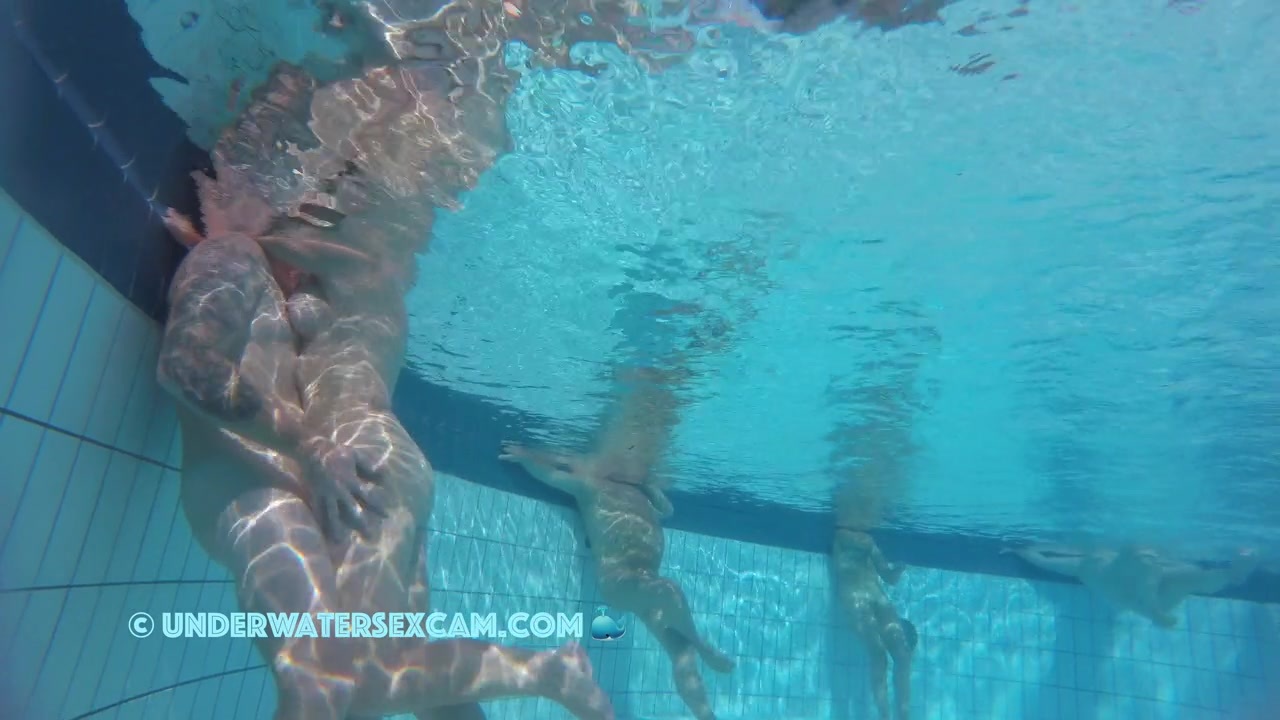 The sun plays on her hot body and her big nipples in a public pool while the voyeur is filming them with his hidden underwater cam.
