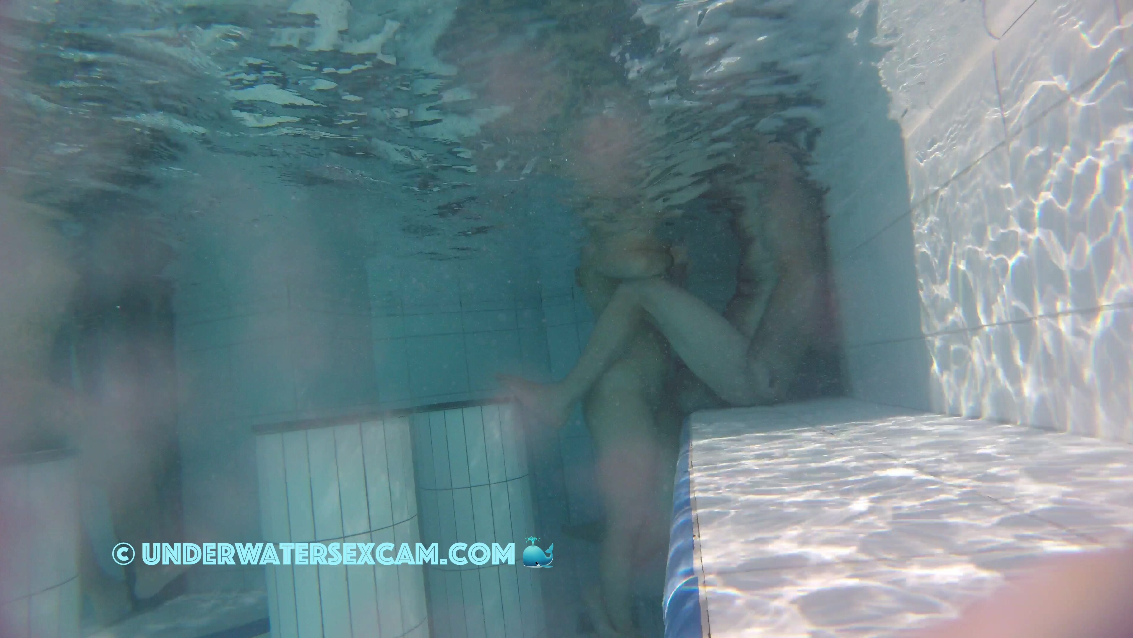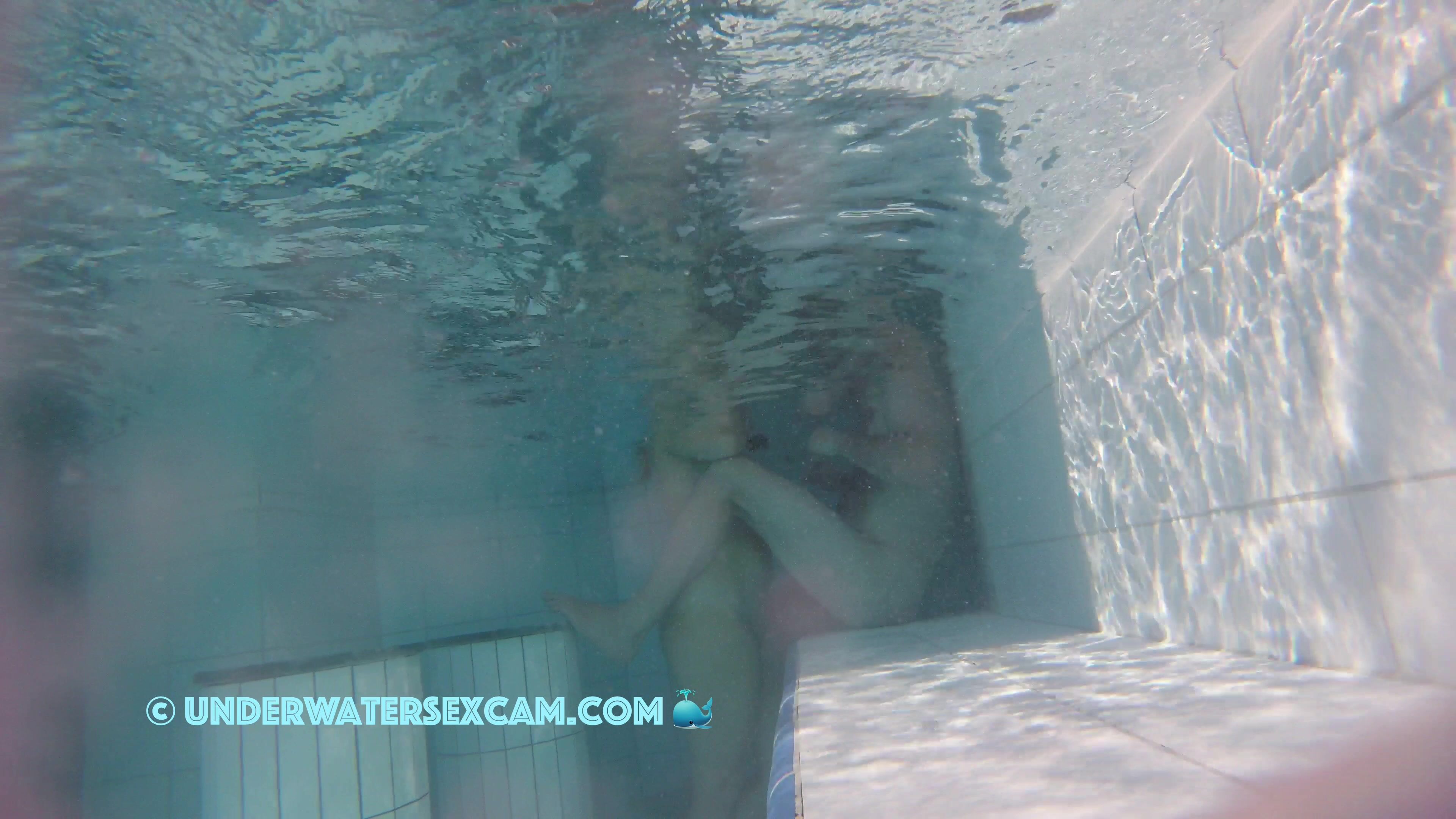 This milf couple seems to enjoy being naked underwater in a public pool while the voyeur cam is filming them.