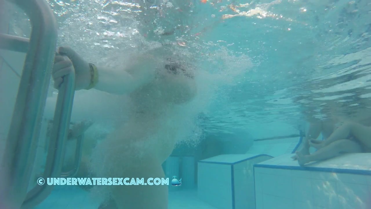 The young girl has real monster tits and shows them in a public pool while the voyeur is filming her with his hidden underwater camera.